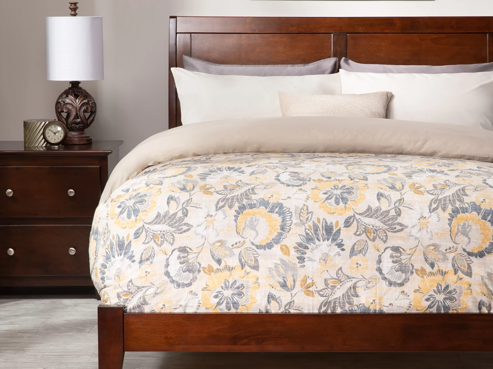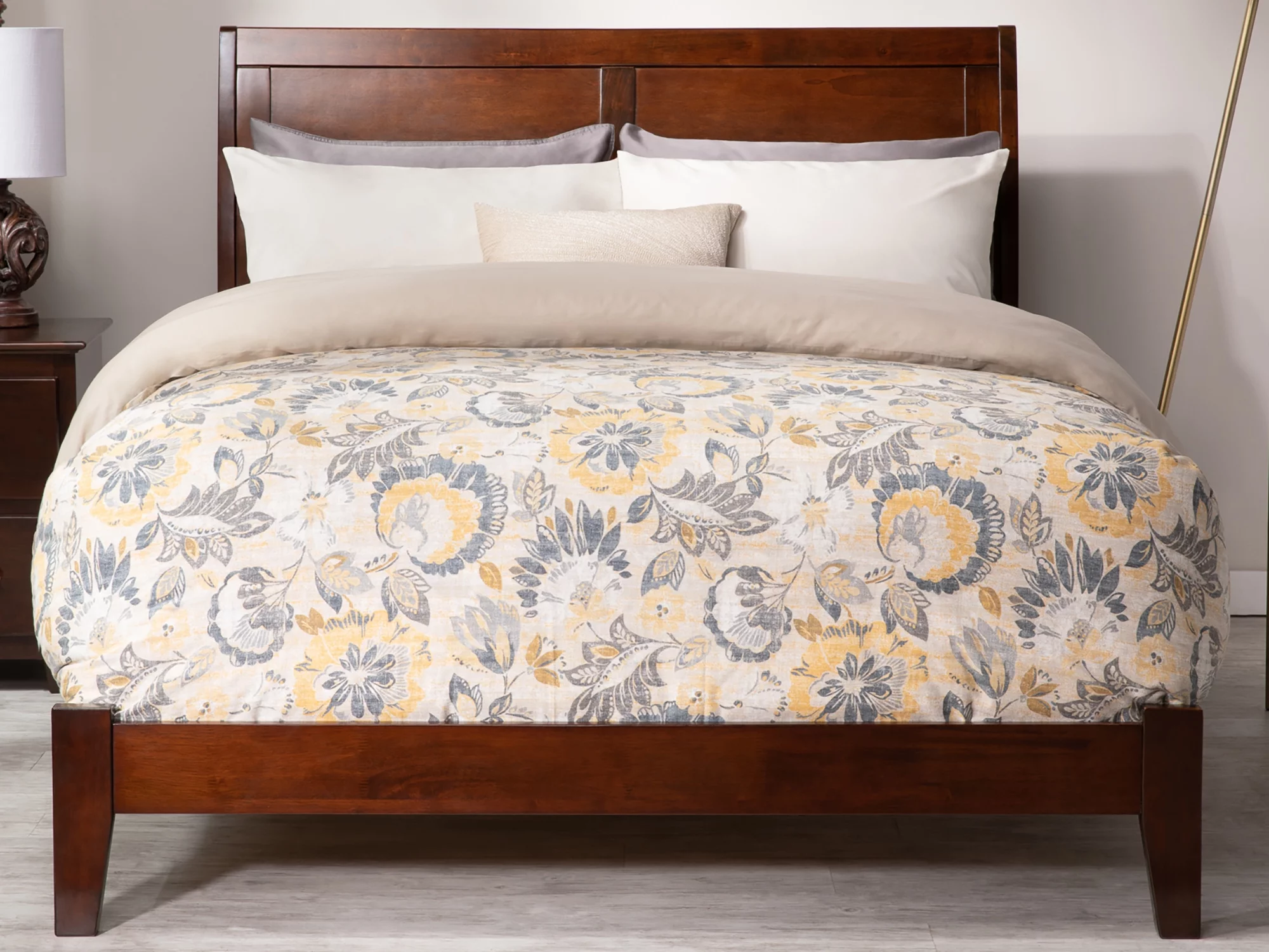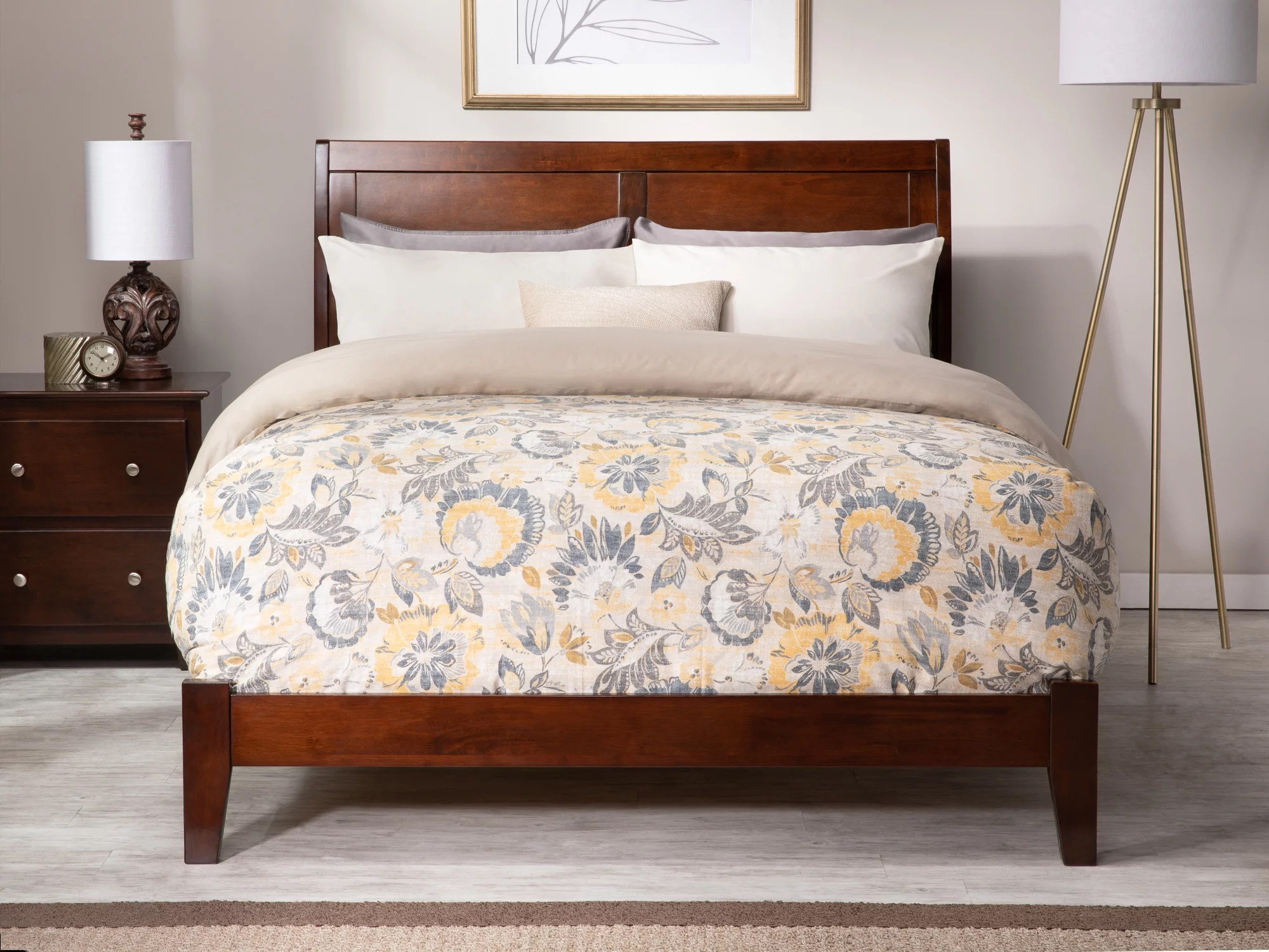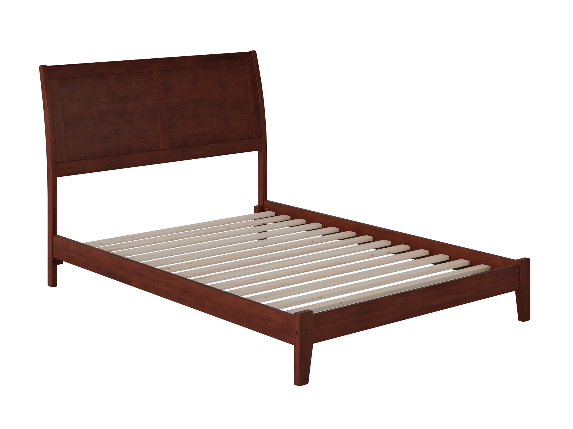 AFI Portland Full Low Profile Wood Platform Bed Frame with Sleigh Headboard, Walnut