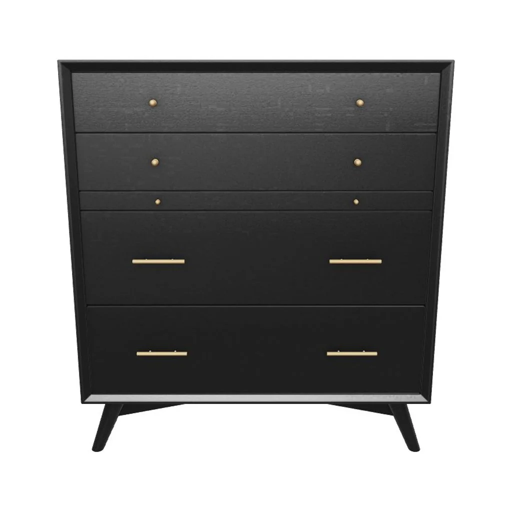 Alpine Furniture Flynn Mid Century Modern 4 Drawer Multifunction Chest in Black