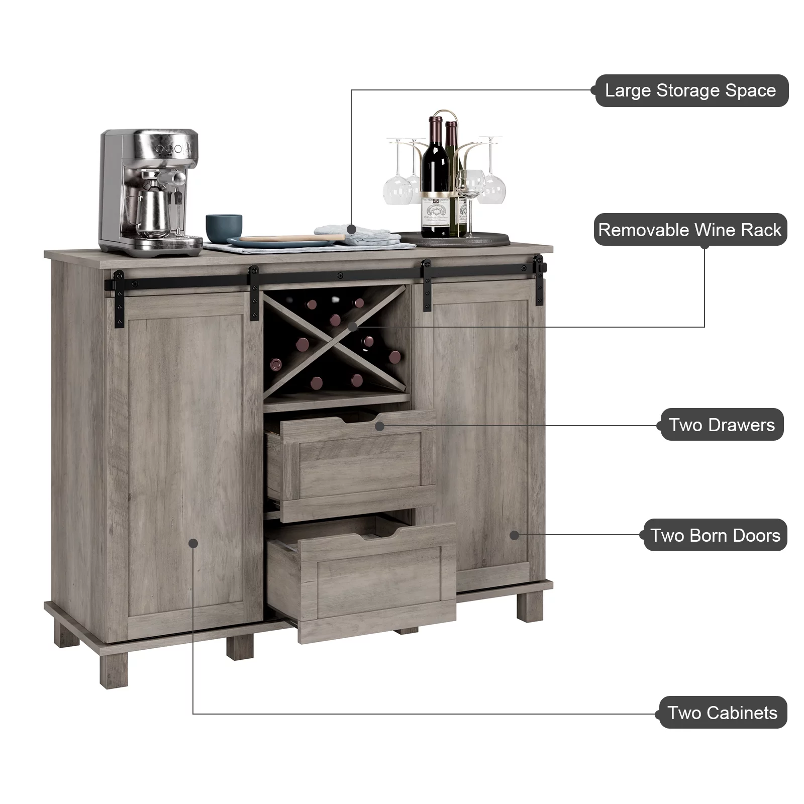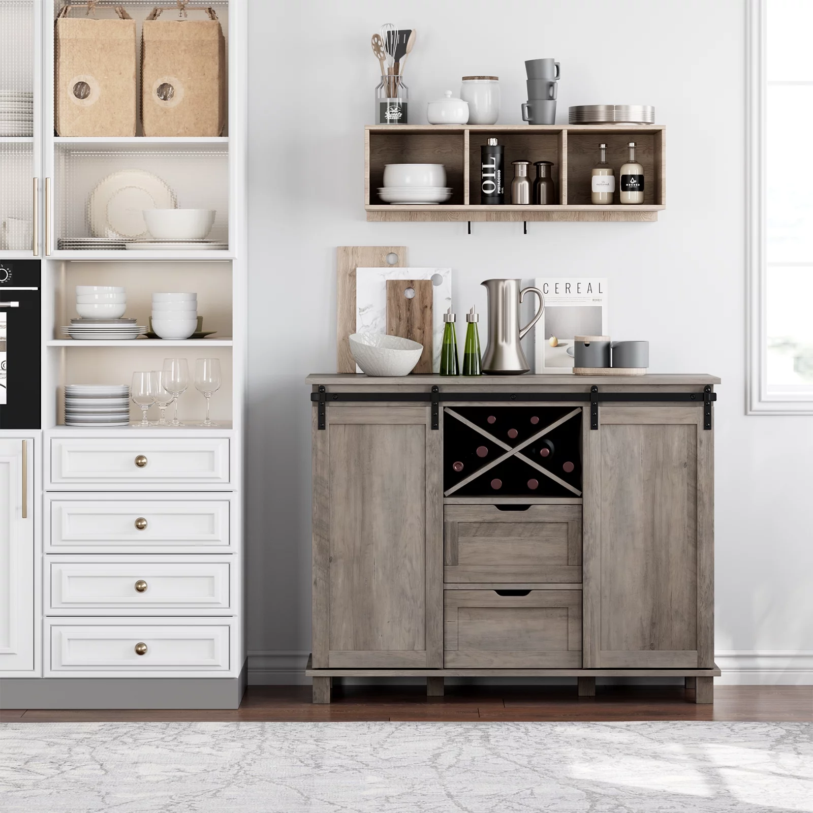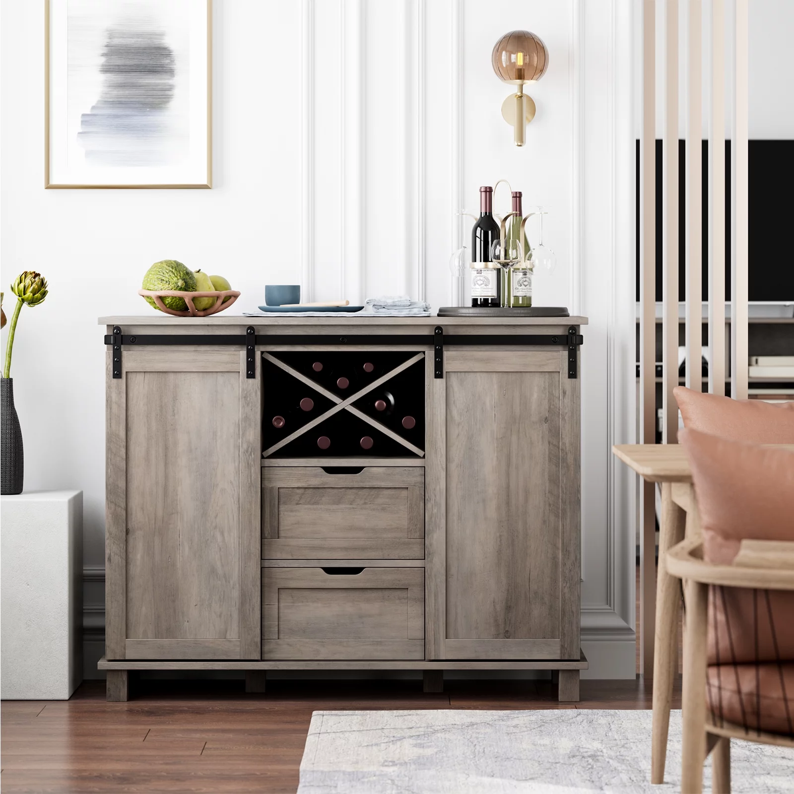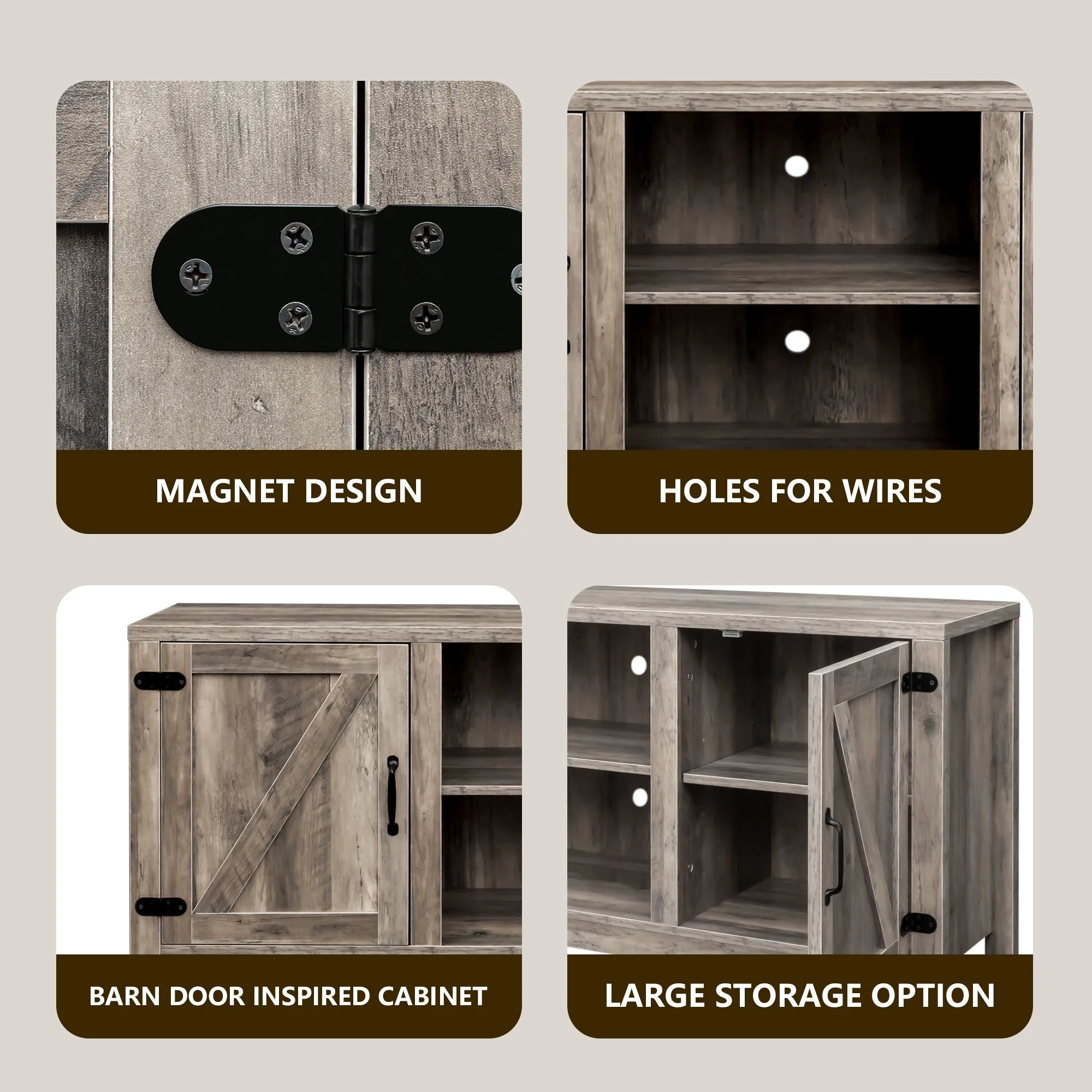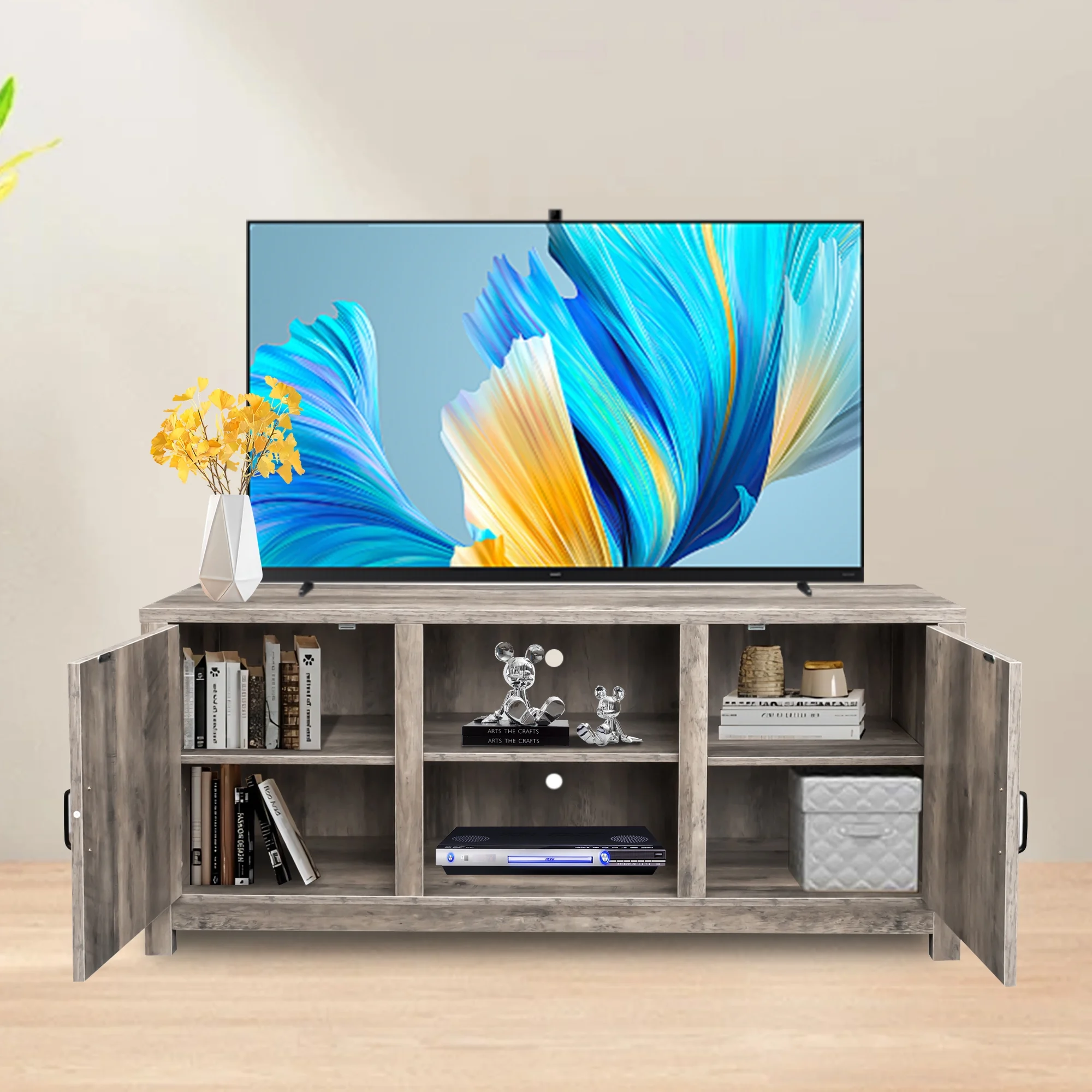 AKIUDEX Modern Farmhouse TV Stand Barn Door TV Cabinet for TVs up to 65", Media Furniture for Living Room, Gray Wash