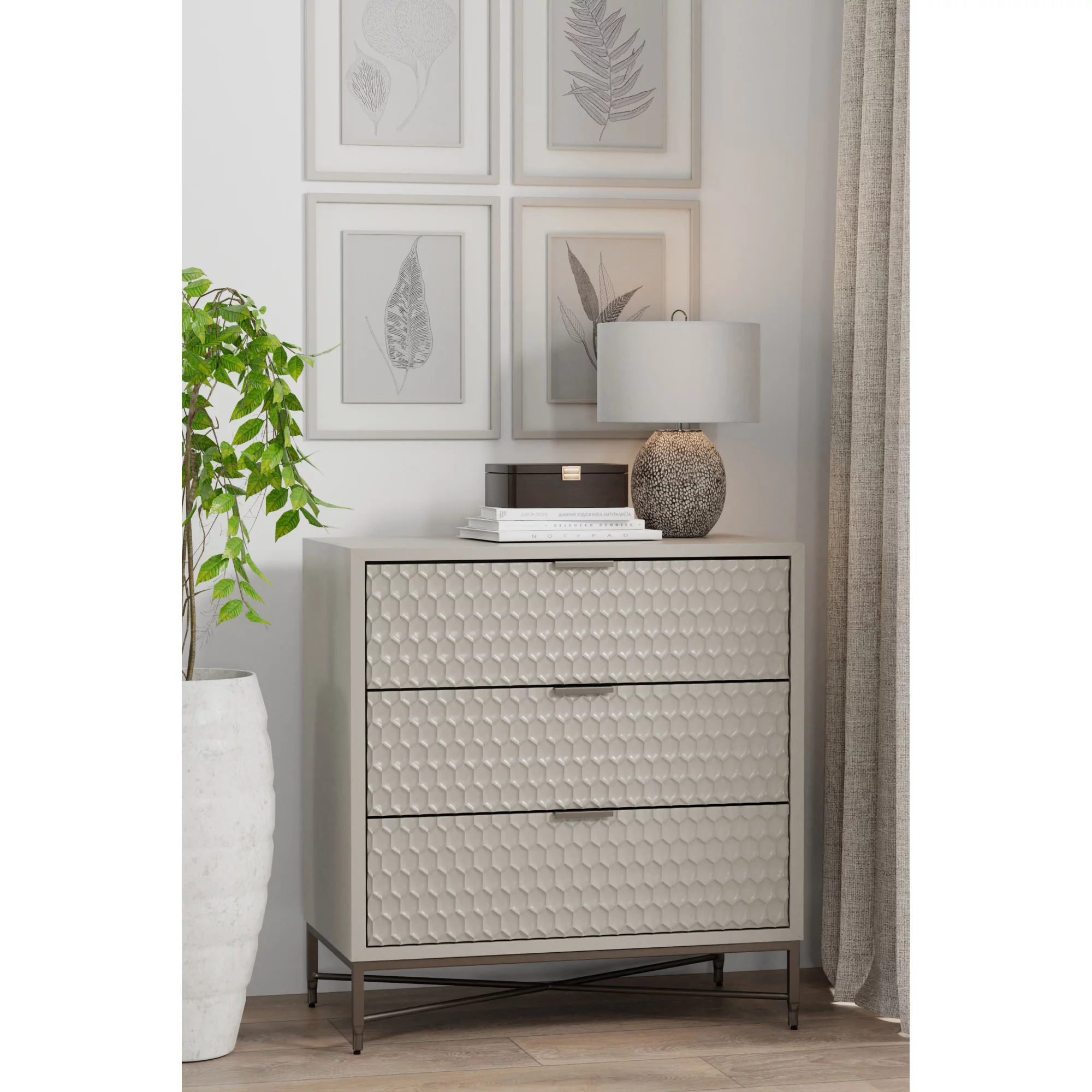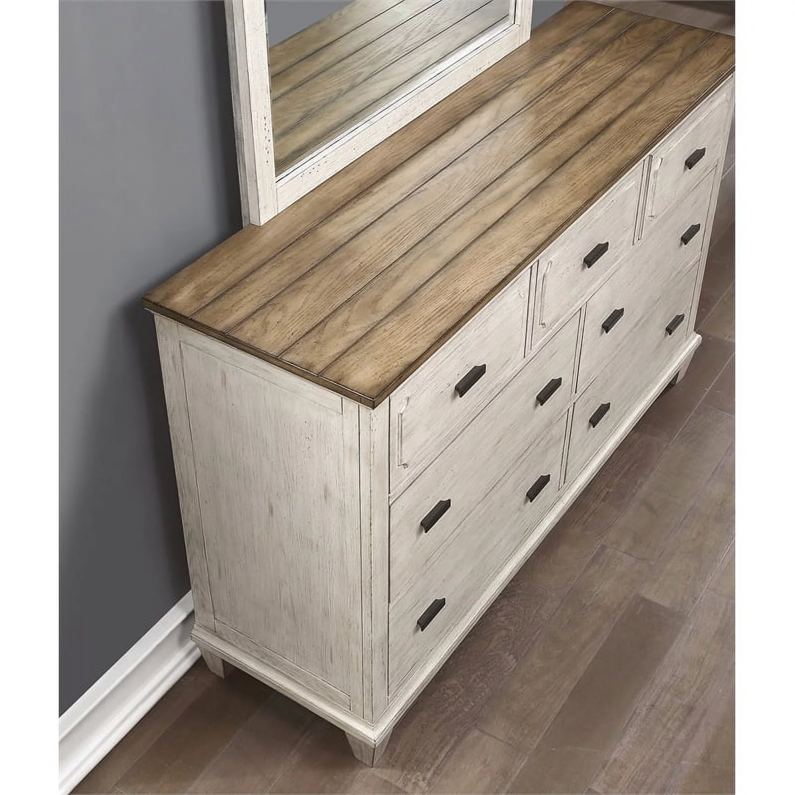 Atlin Designs Engineered Wood 6 Drawer Double Dresser in Light Gray-White
