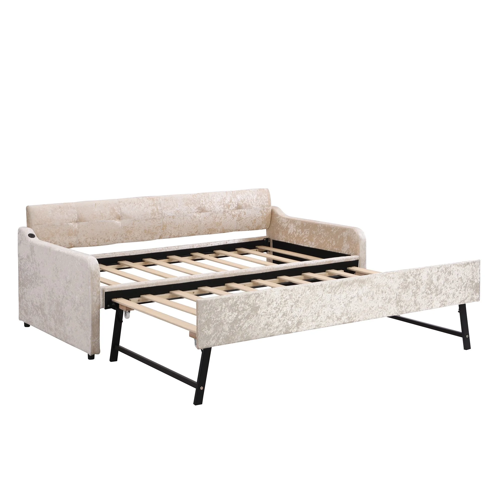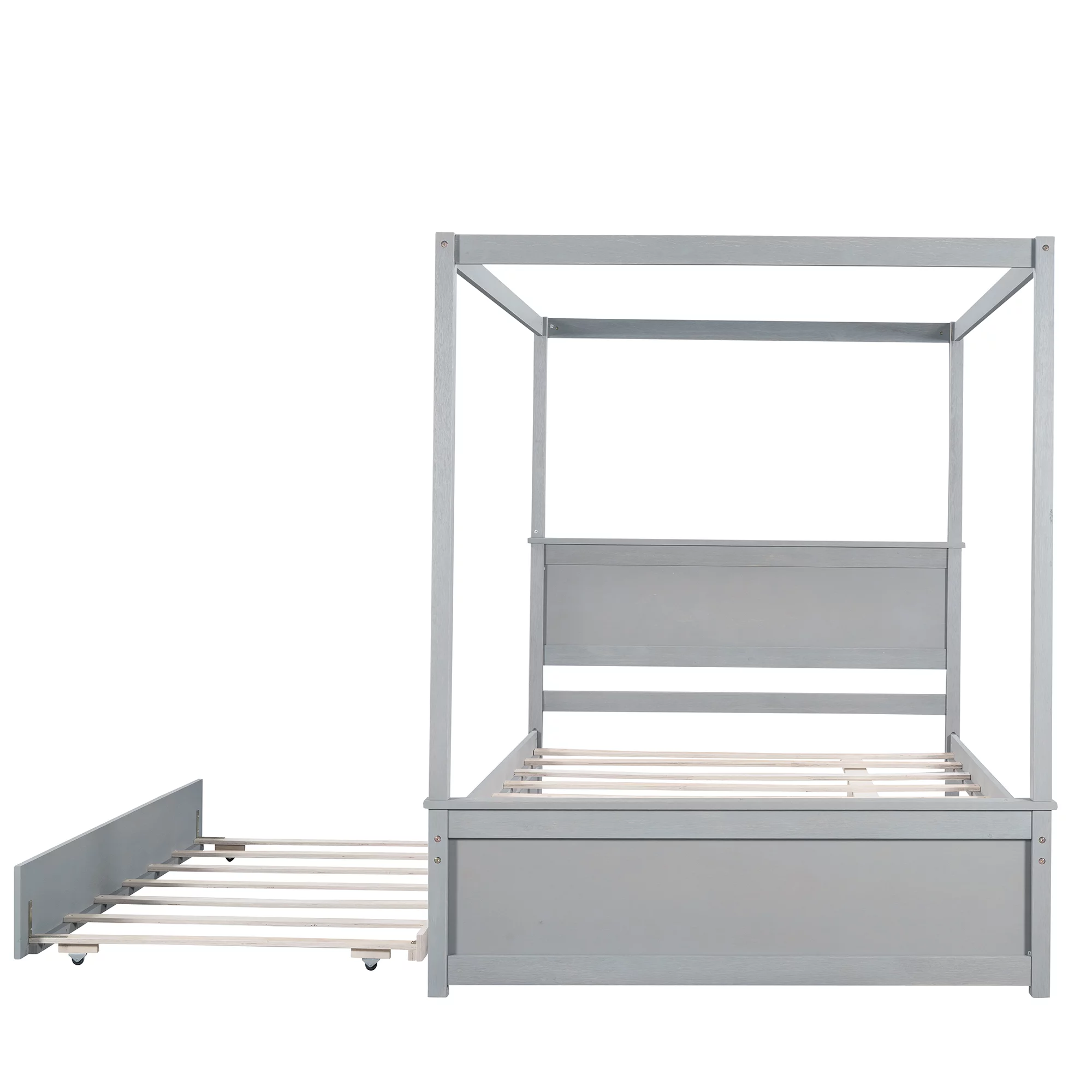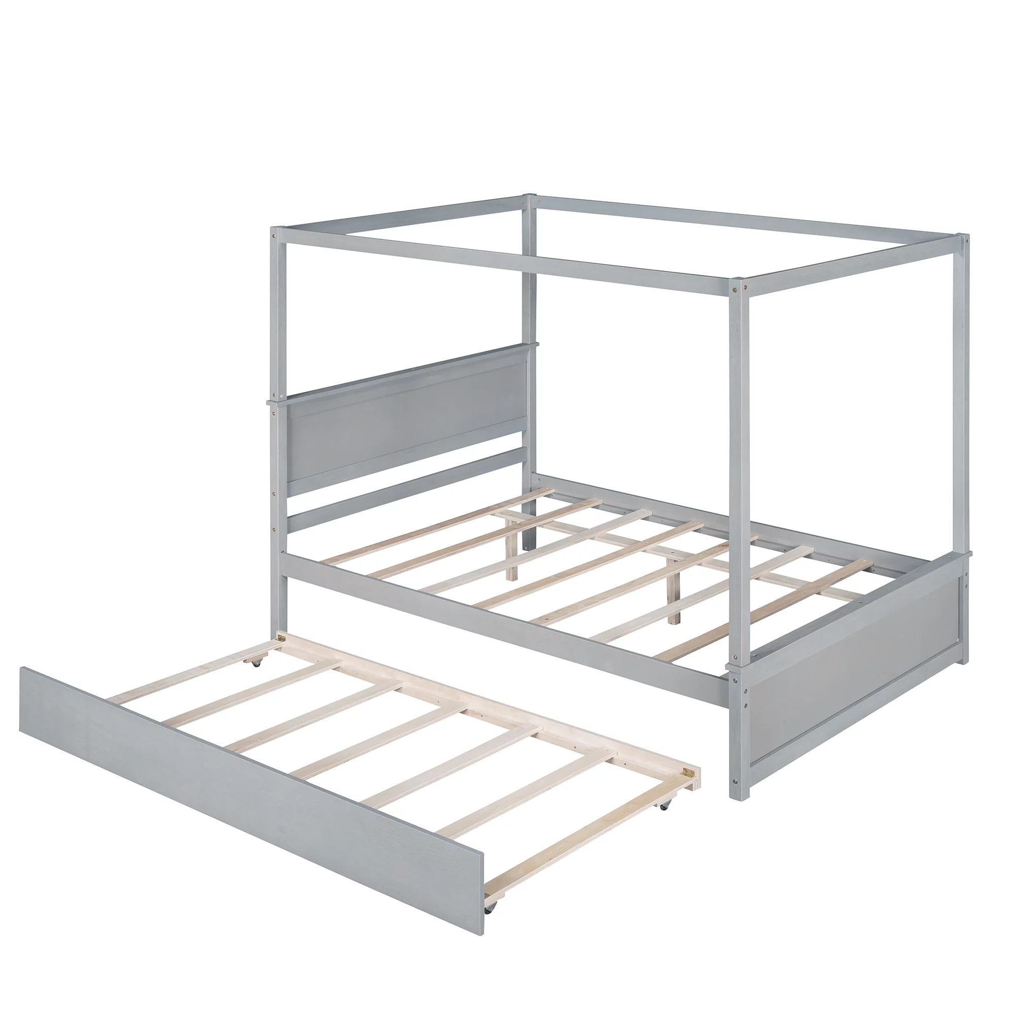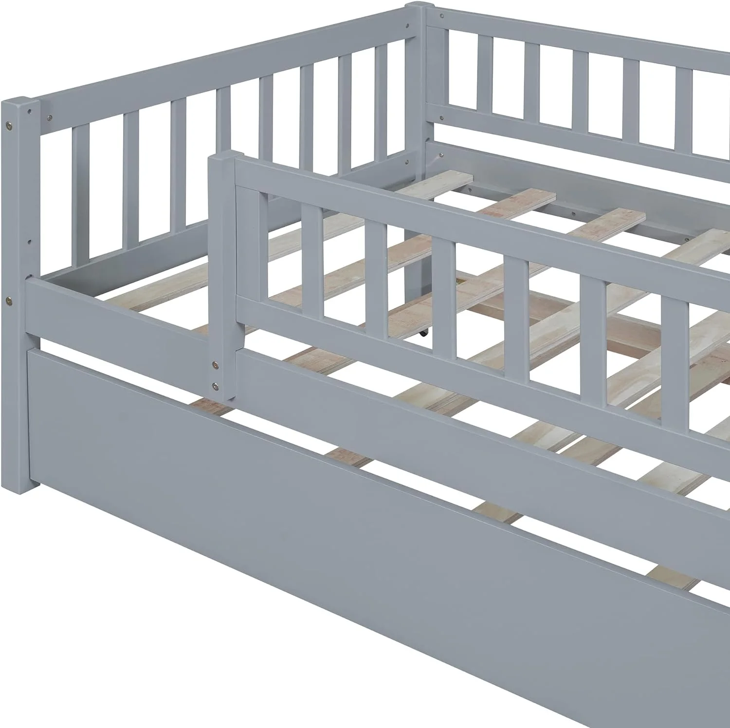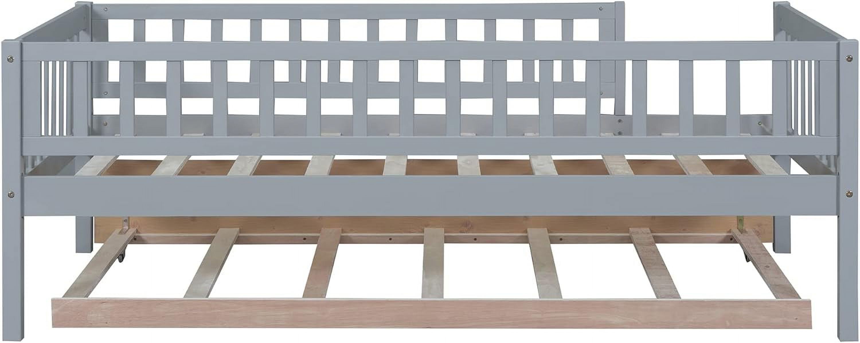 Size Wood Daybed, Day Bed Frames With Trudle Ad Safety Fece Guardrails For Bedroom Livig Room Kids Adults,Gray