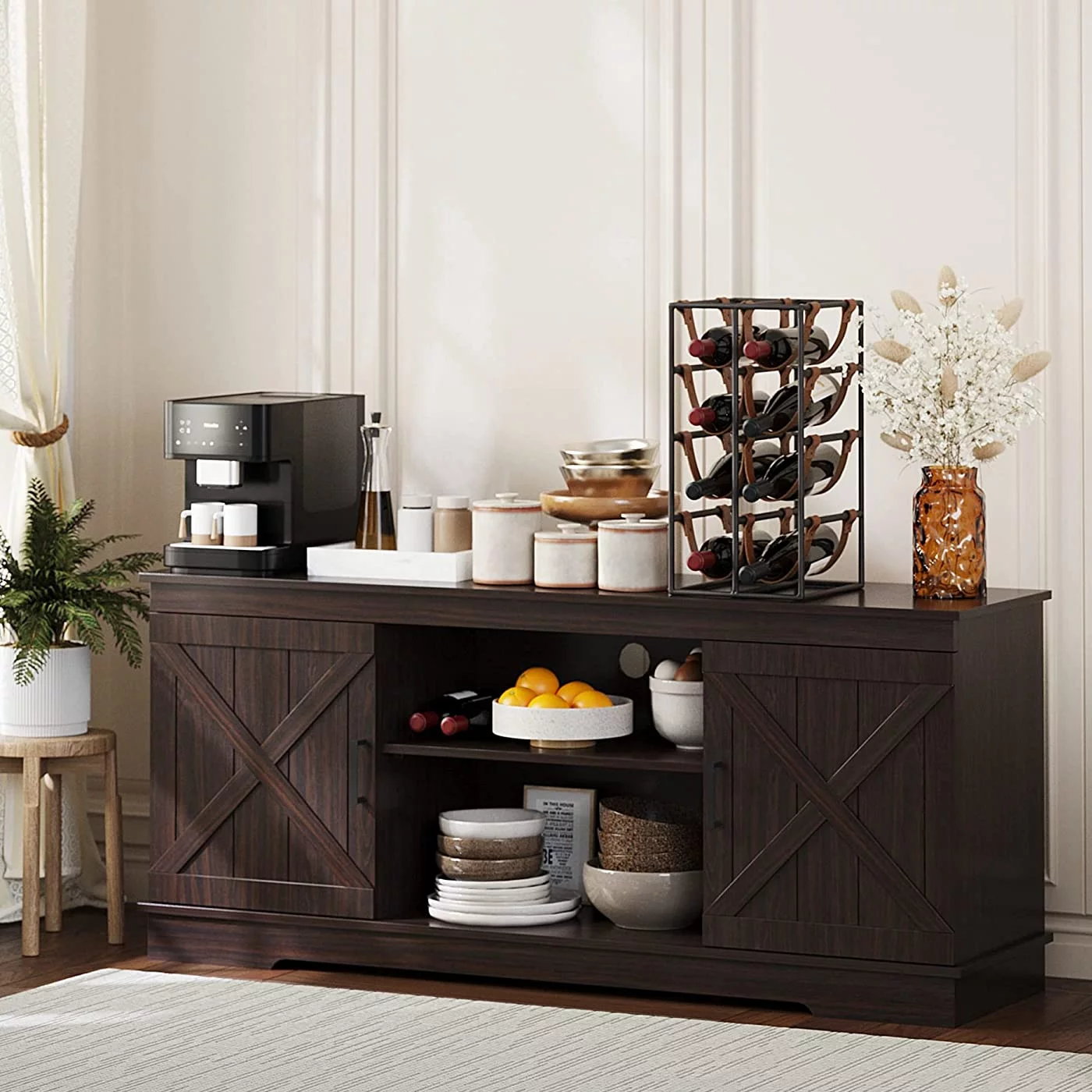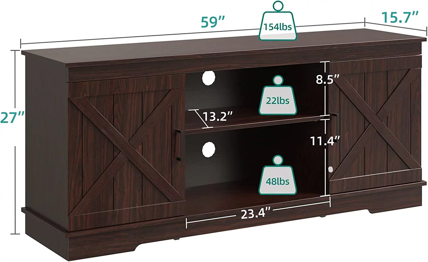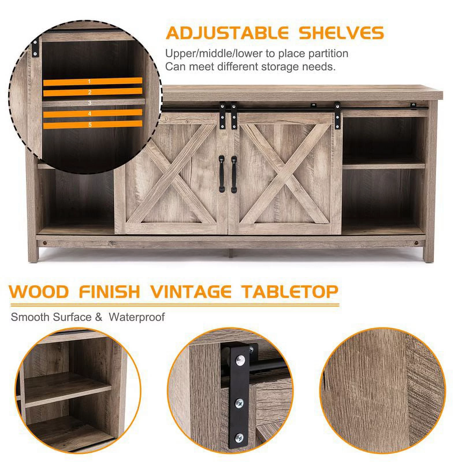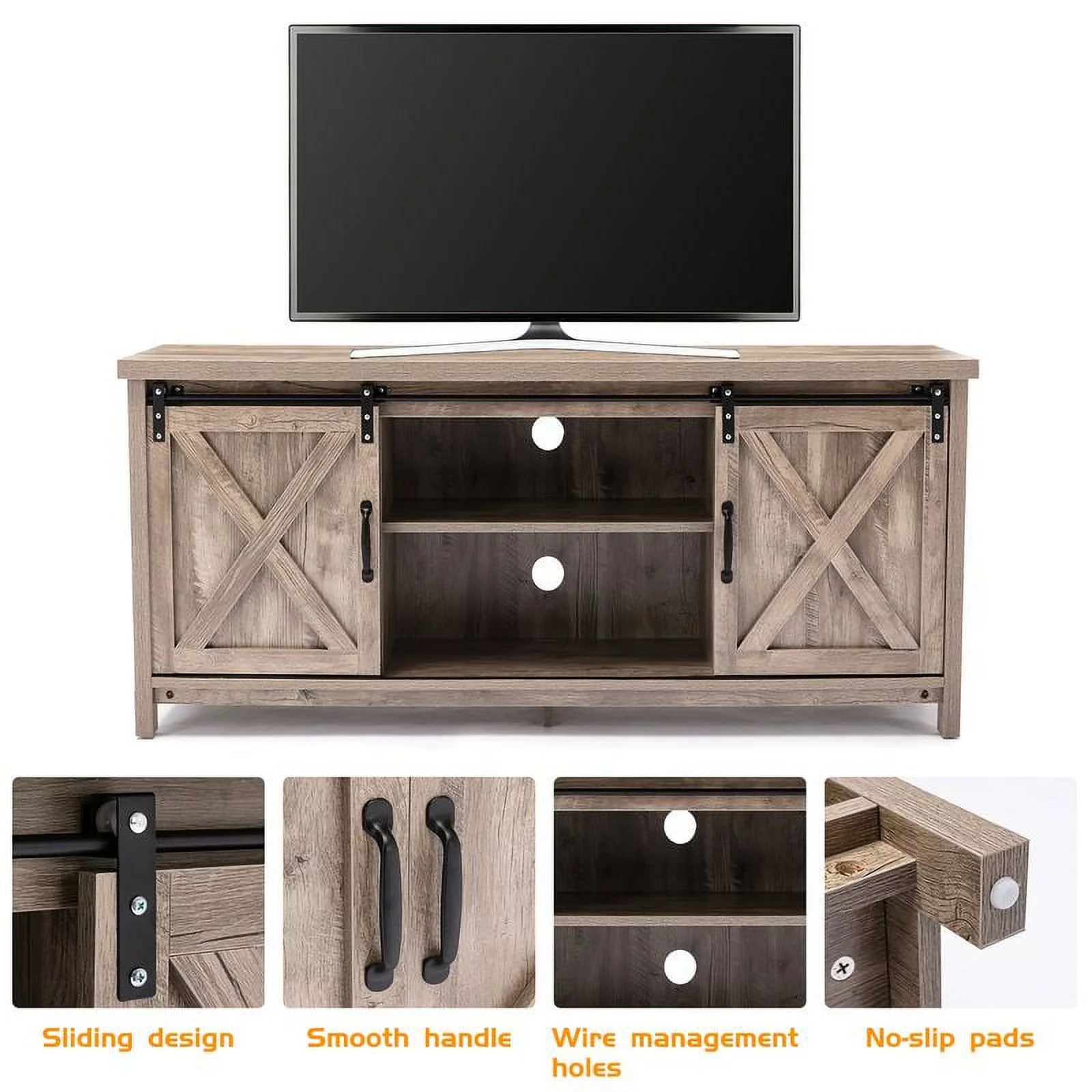 Yaoping 58" Farmhouse Sliding Barn Door TV Stand for TVs Up to 65" Television Cabinet (Oak Color)