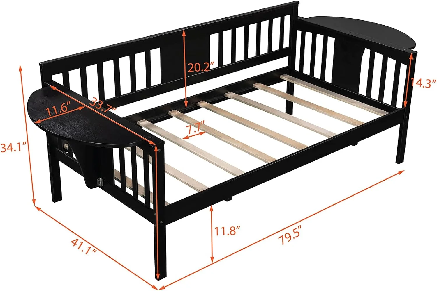 Wood Day Bed Frame For Kids Adults Size Sofa Bed For Bedroom, Living Room, Espresso