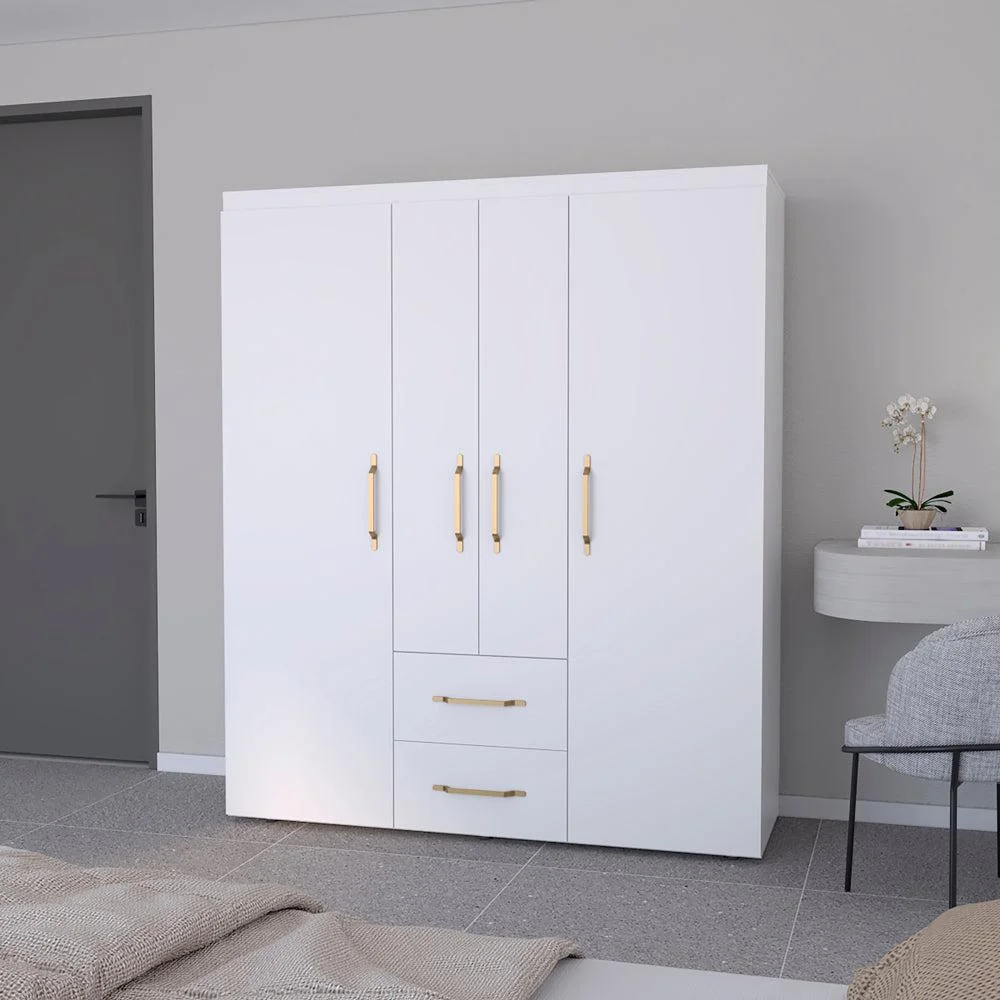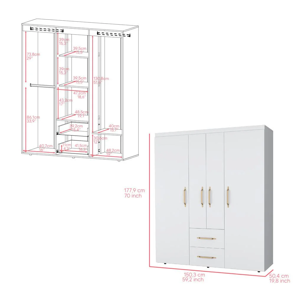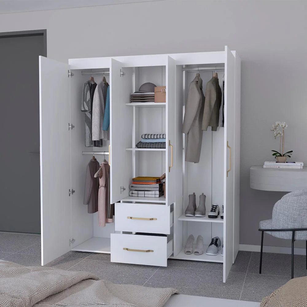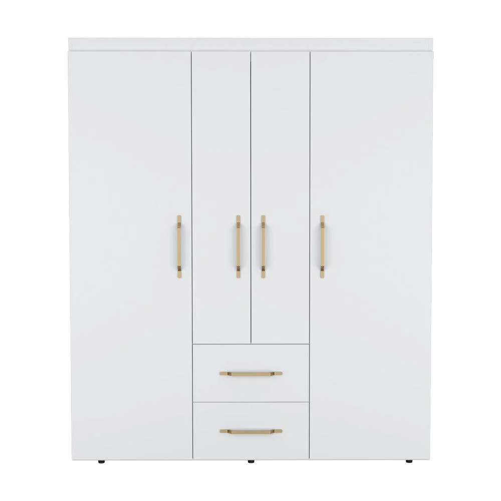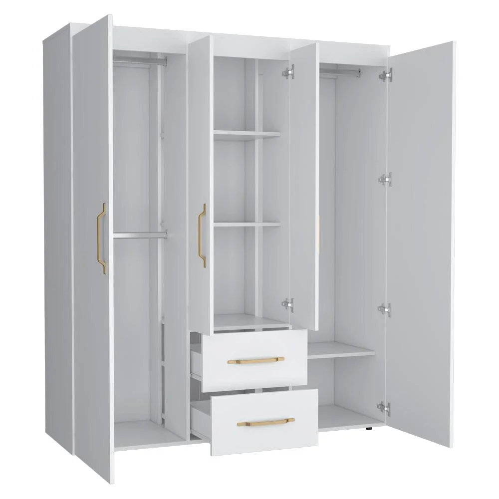 Boahaus Frankfurt Modern Bedroom Armoire 3 Opening Doors 2 Drawers White for Adults