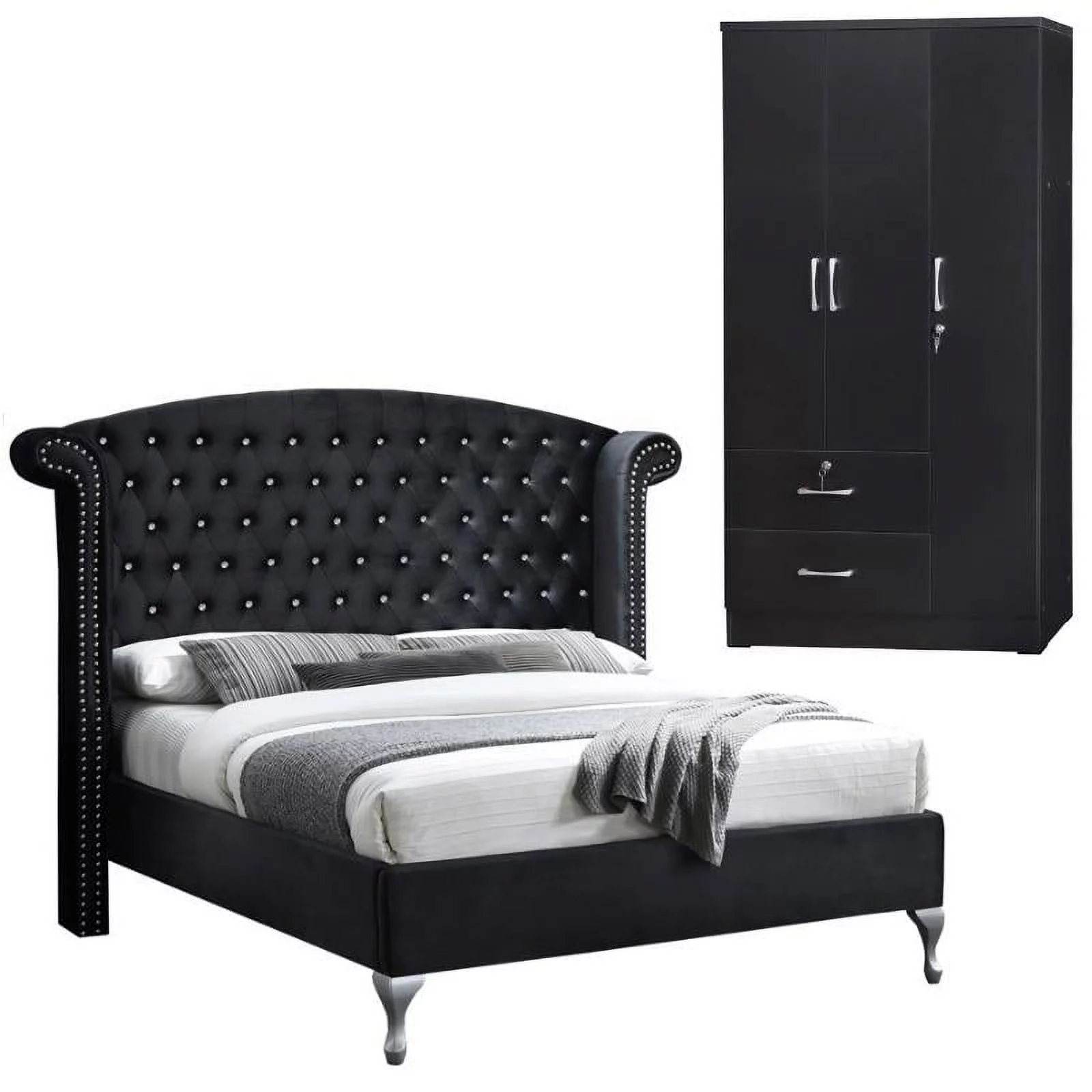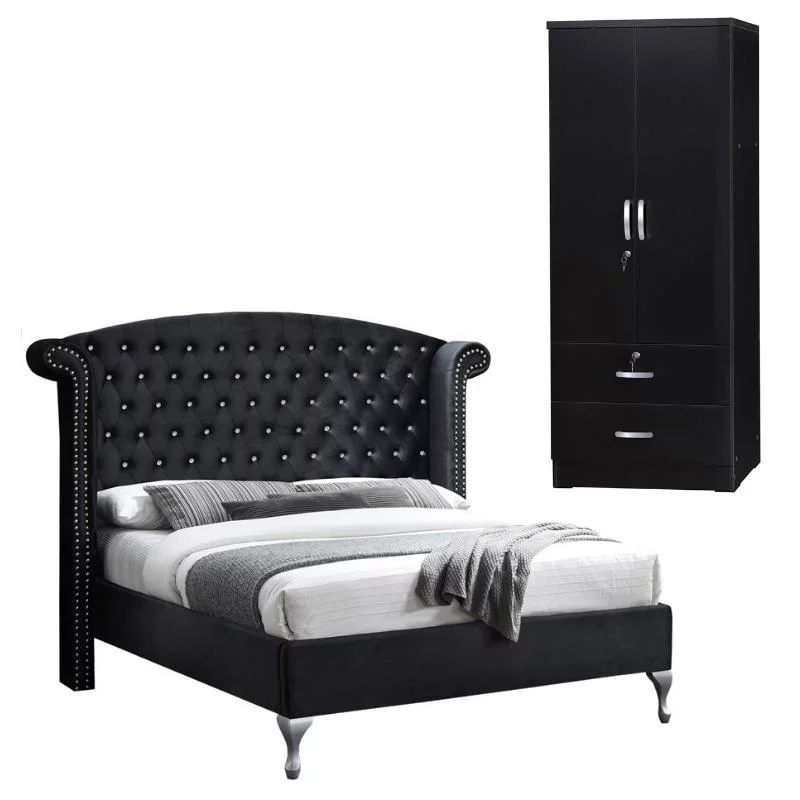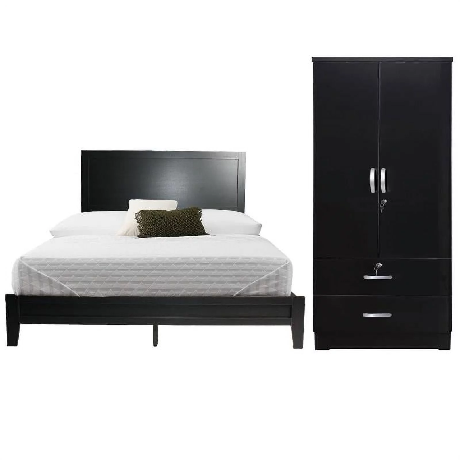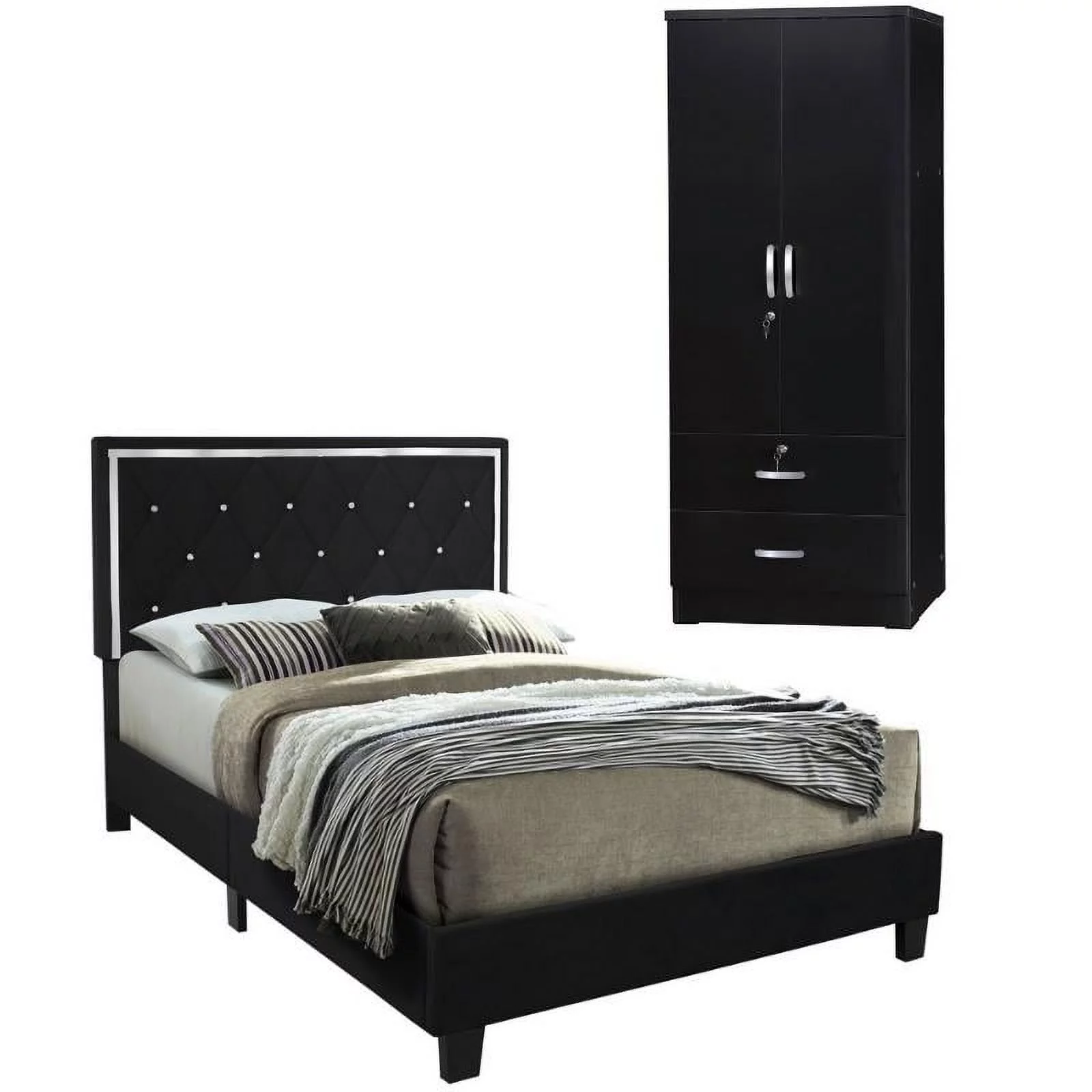 Home Square 2-Piece Set with Full Bed and 2-Door Wardrobe Armoire in Black