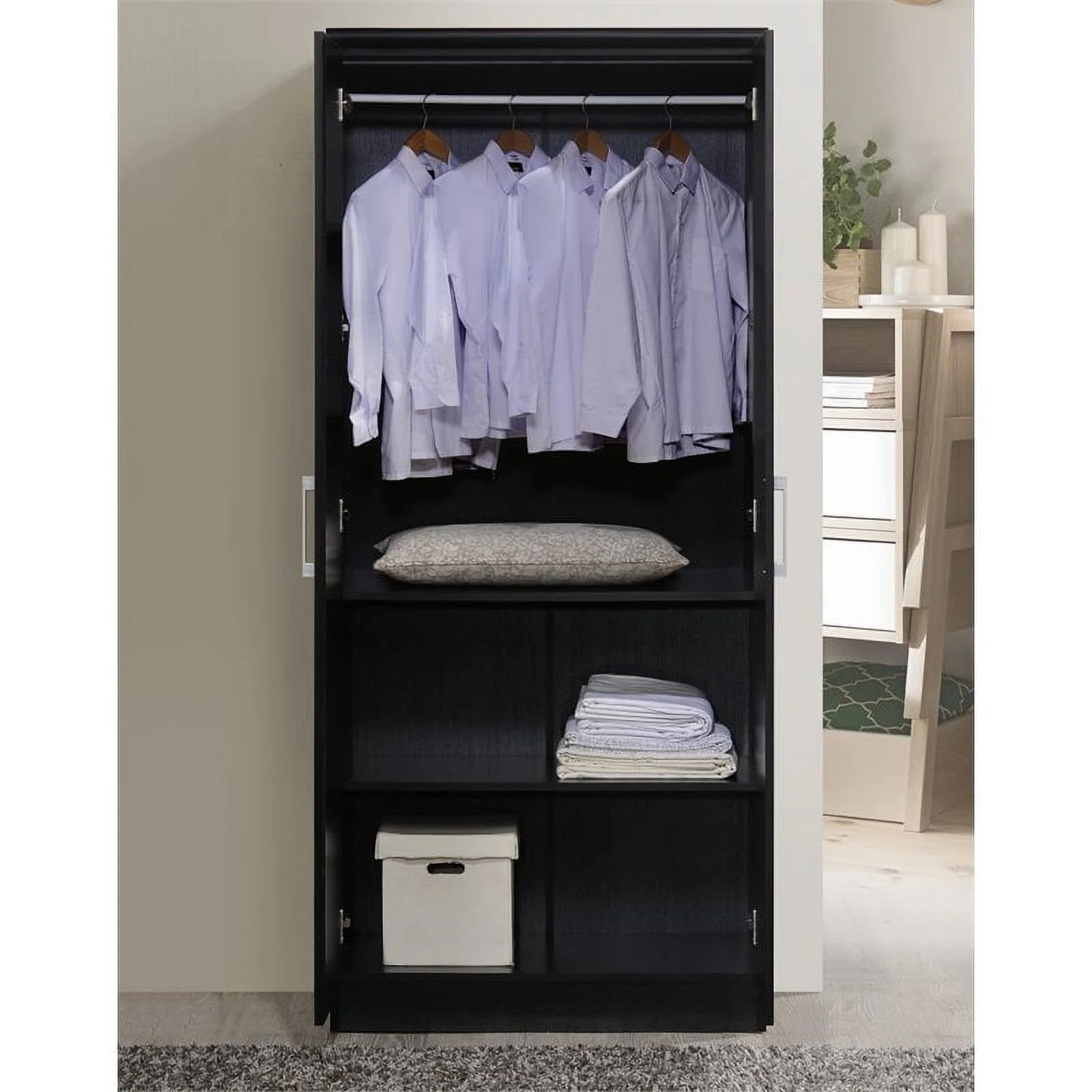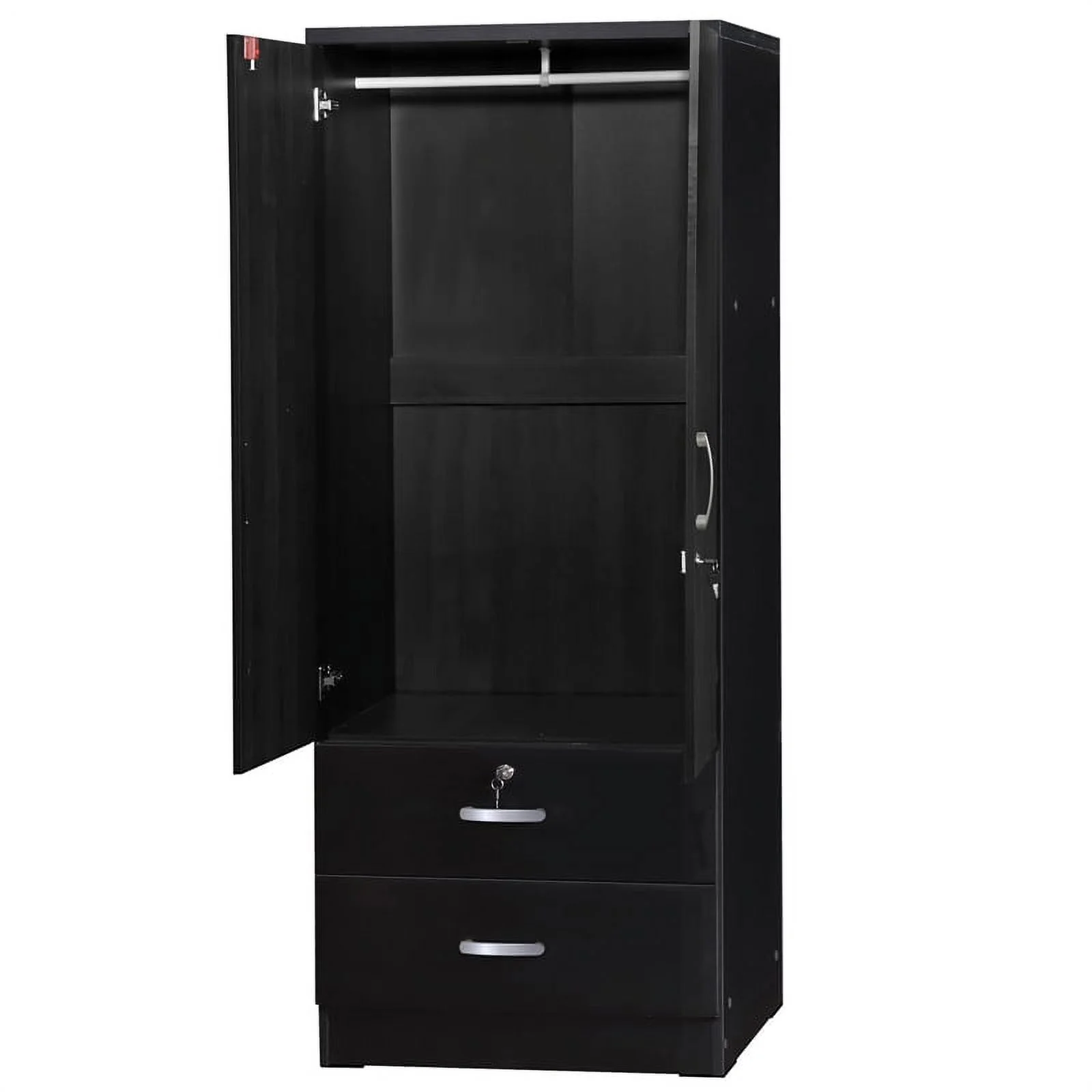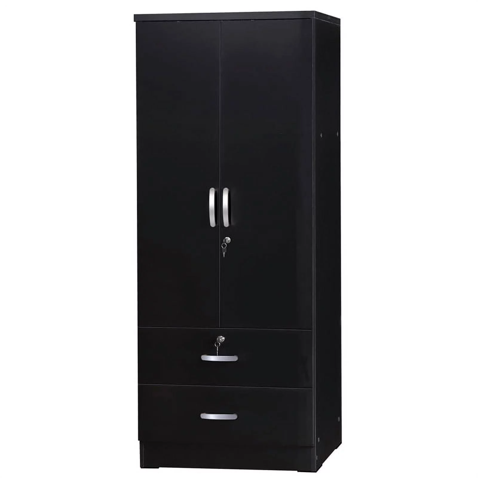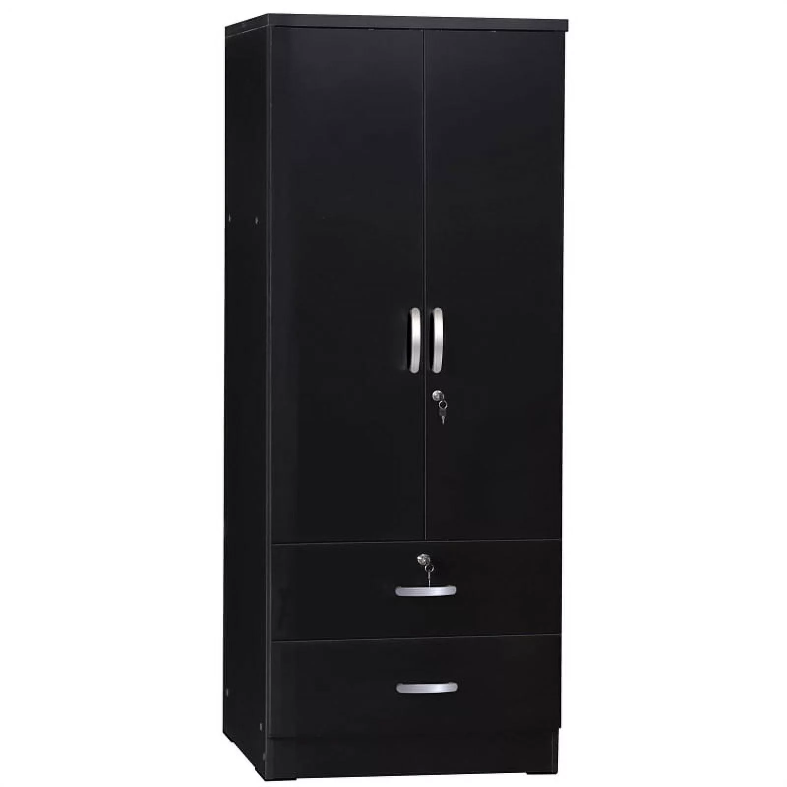 Home Square 2-Piece Set with Full Bed and 2-Door Wardrobe Armoire in Black