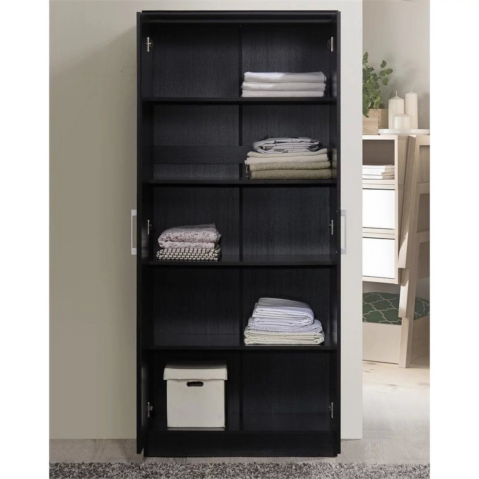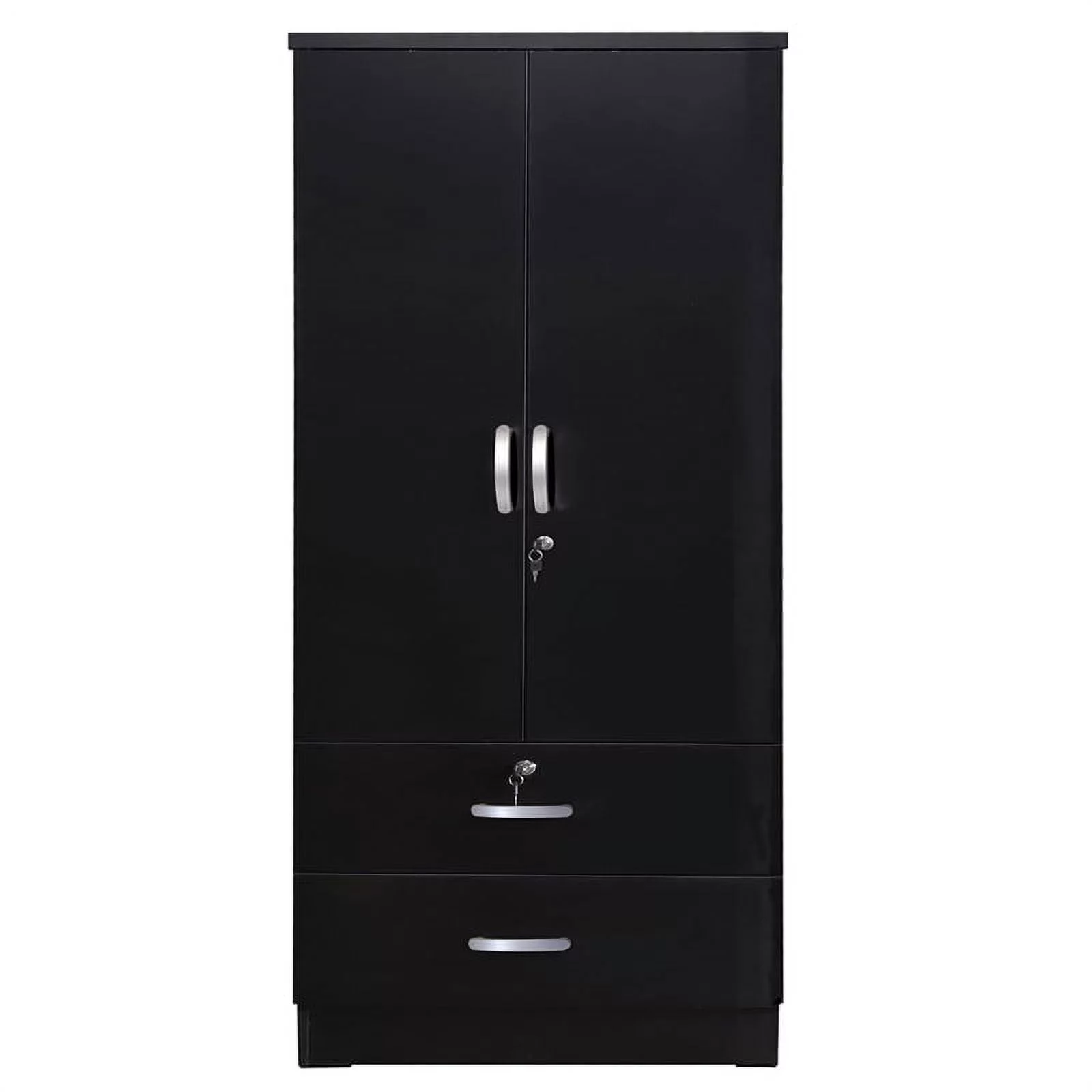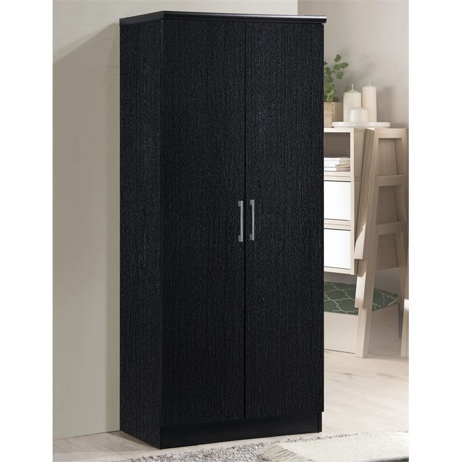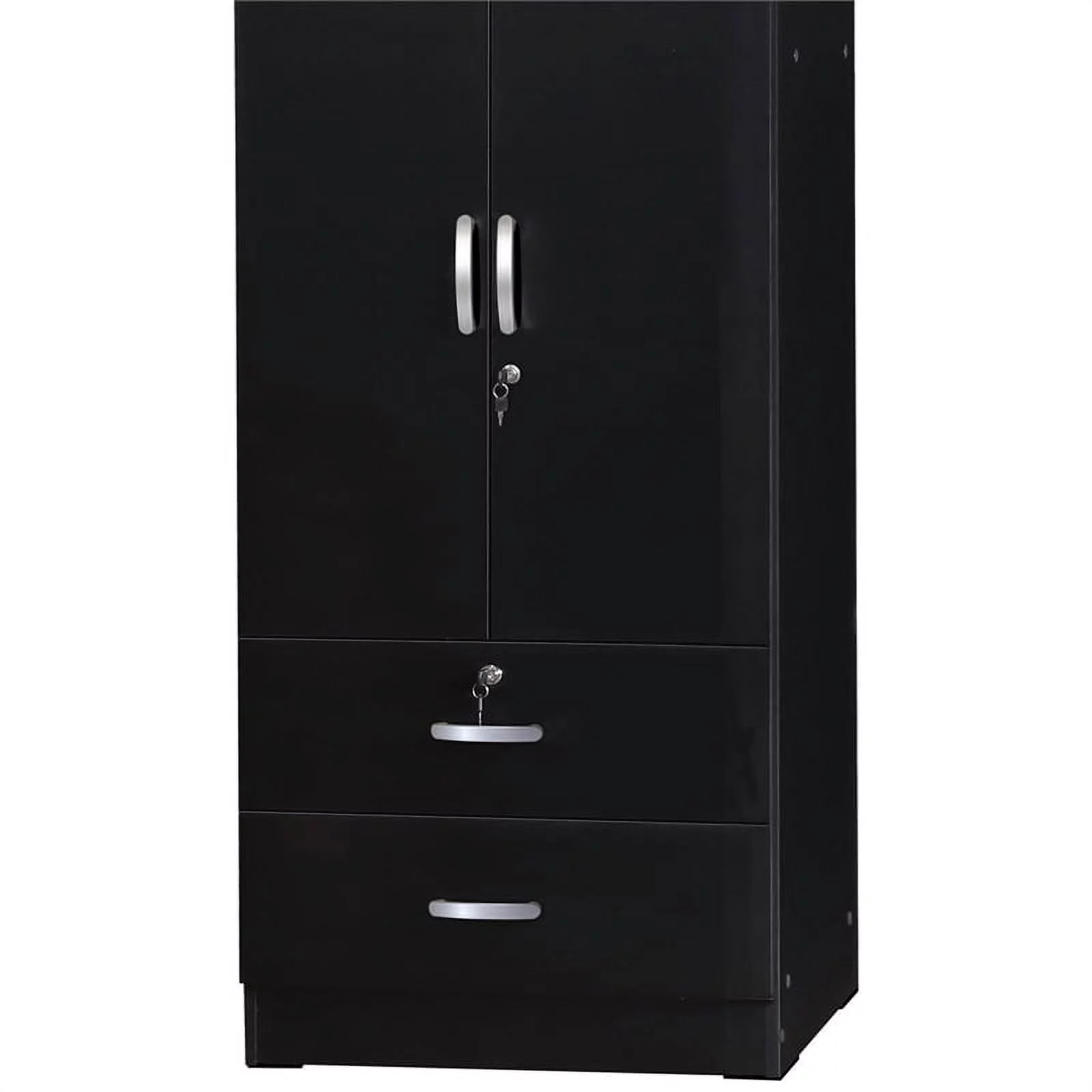 Home Square 2-Piece Set with Full Bed and 2-Door Wardrobe Armoire in Black