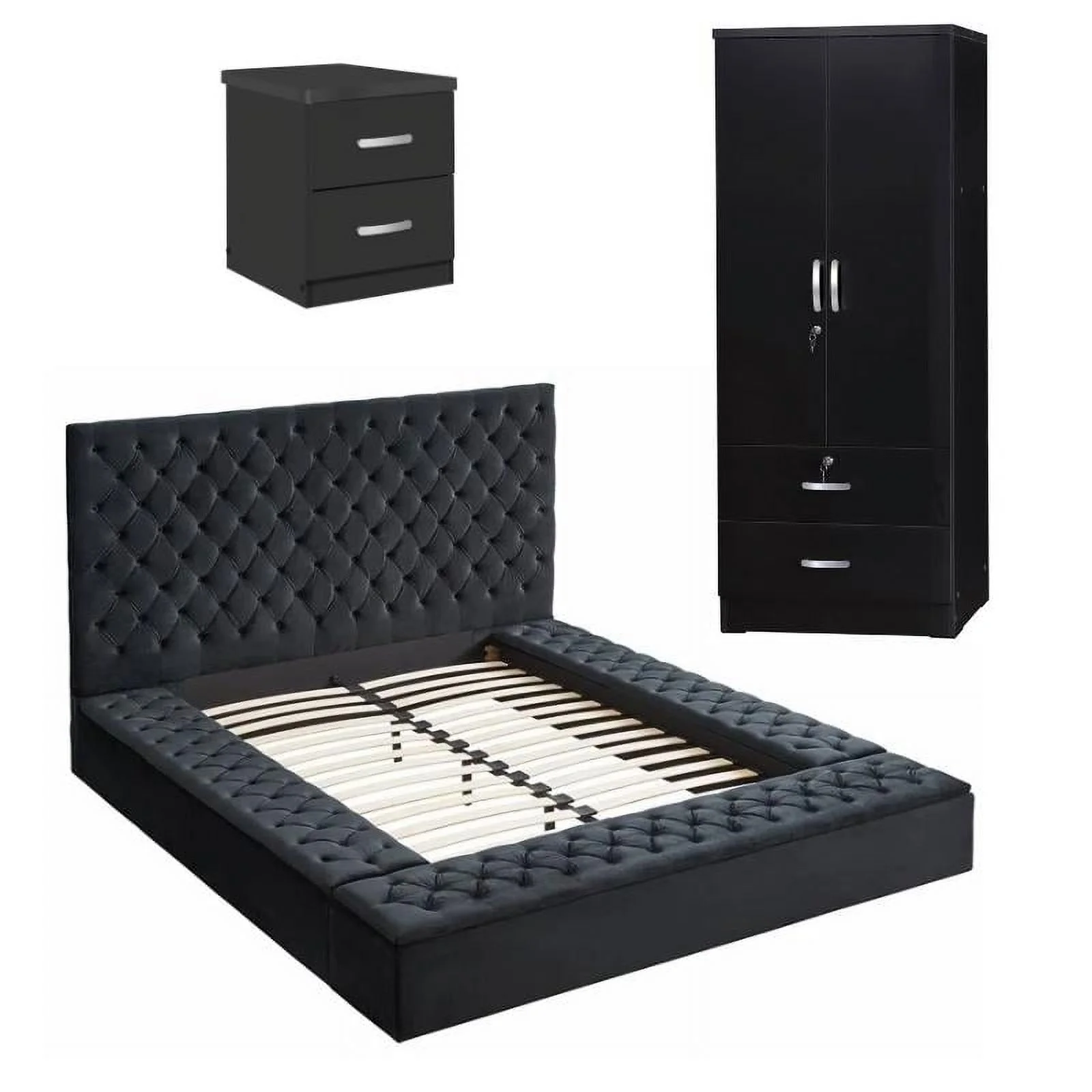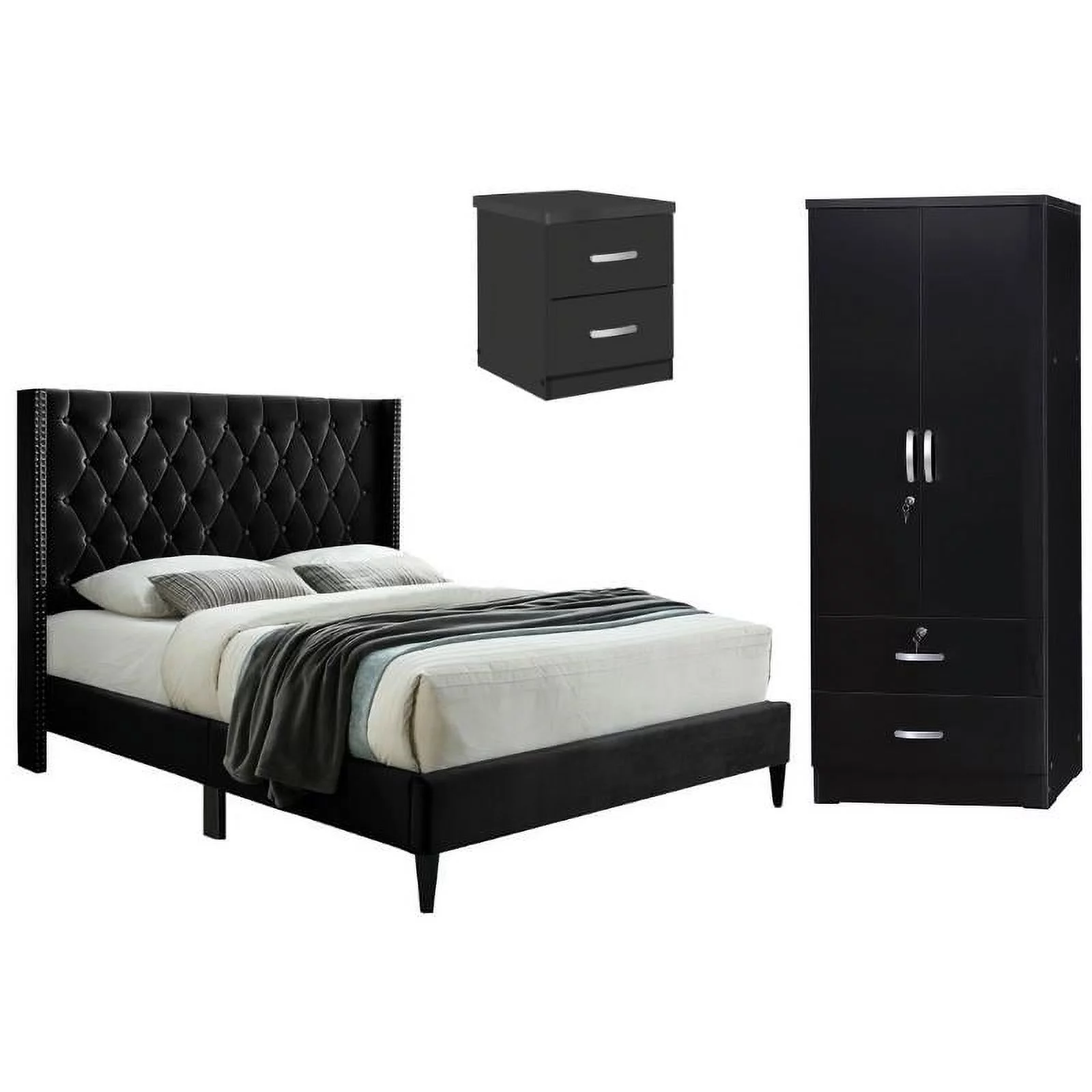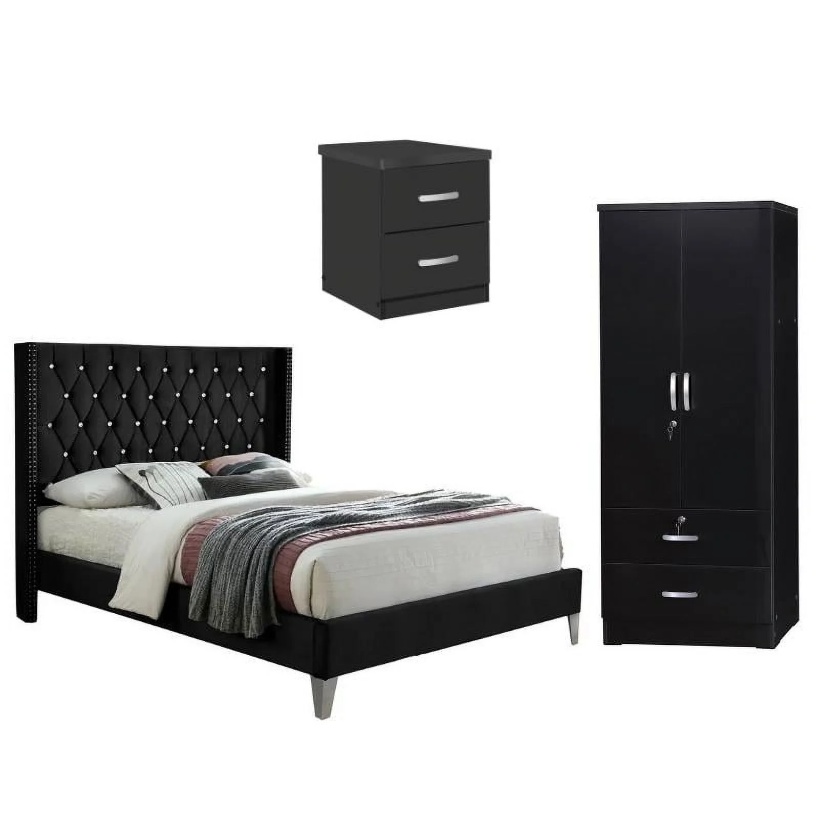 Home Square 3-Piece Set with Queen Bed Wardrobe Armoire & Nightstand in Black