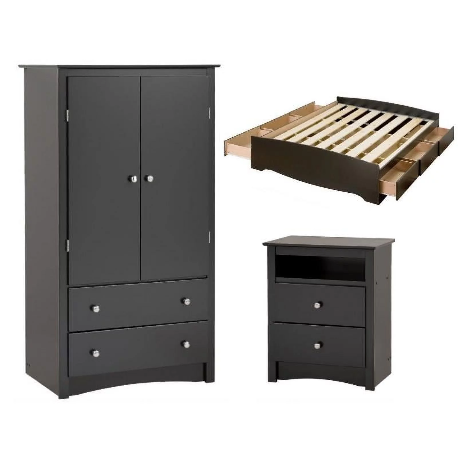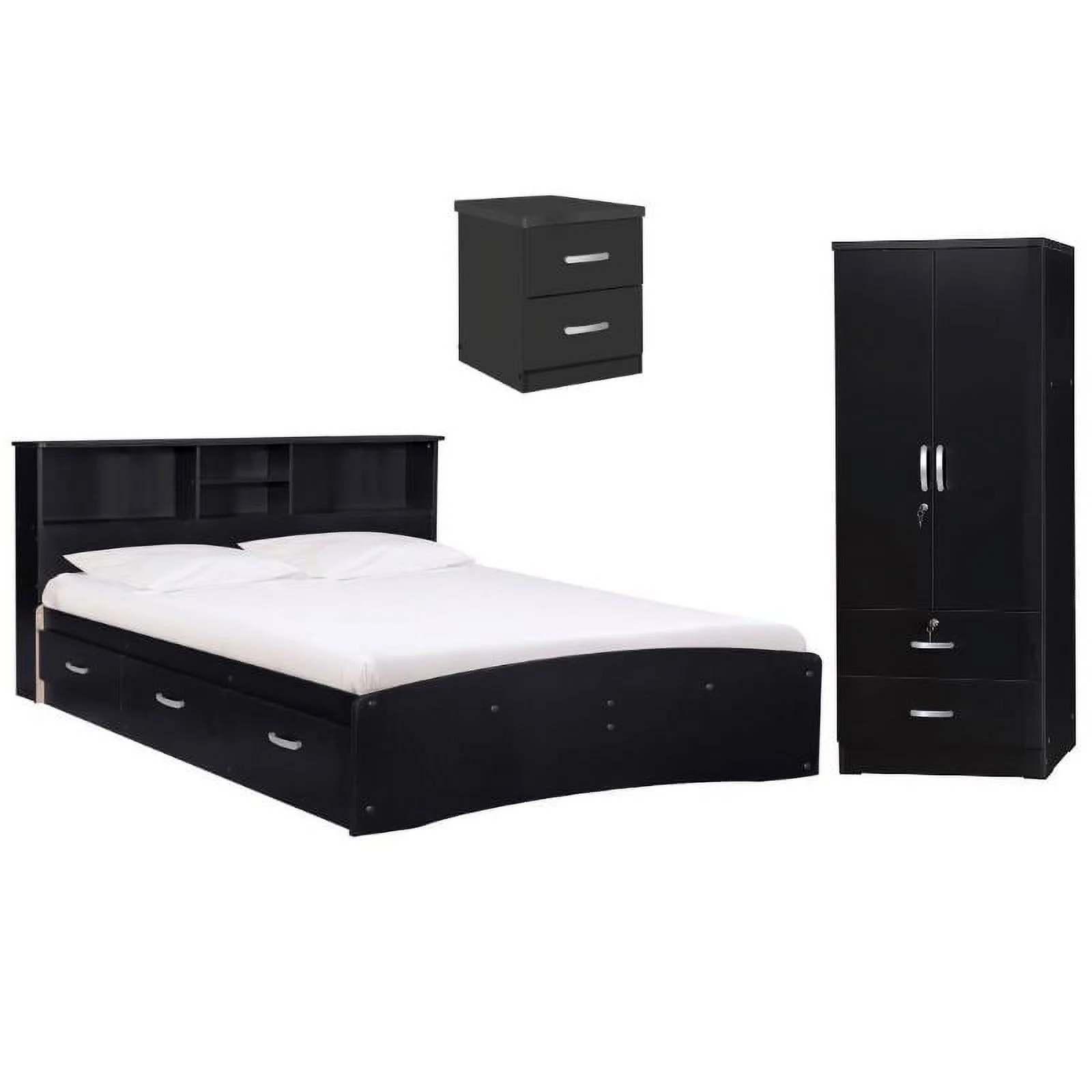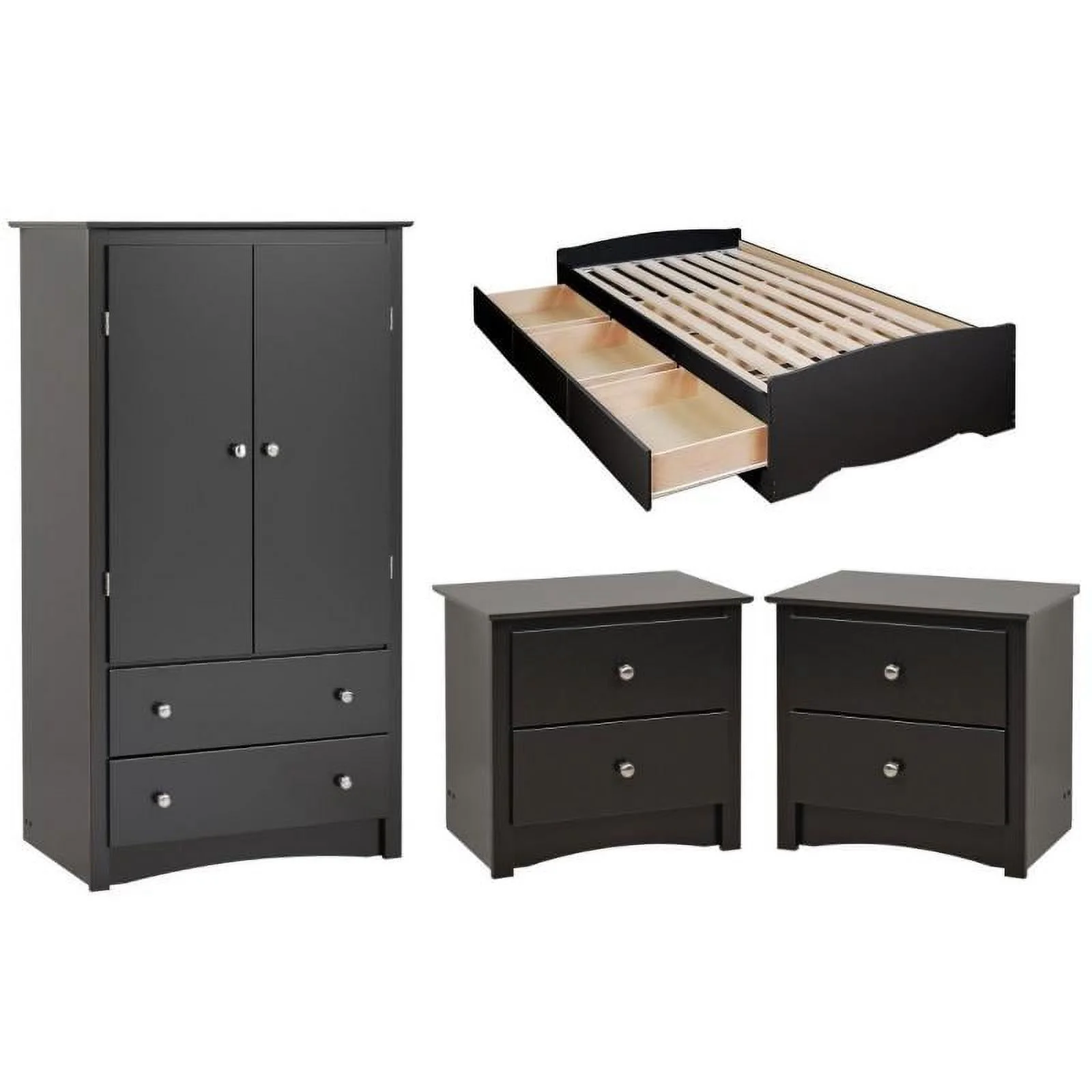 Home Square 4-Piece Set with Storage Bed Wardrobe Armoire 2 Nighstands in Black