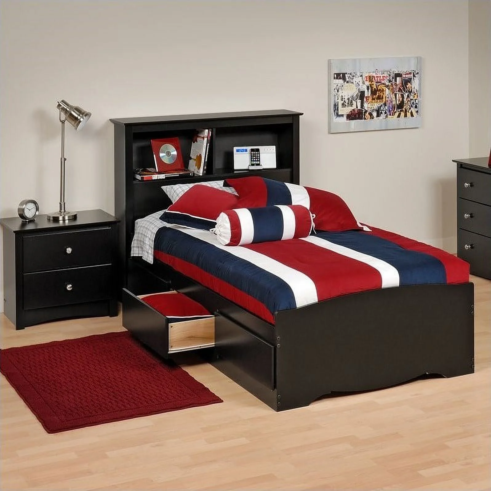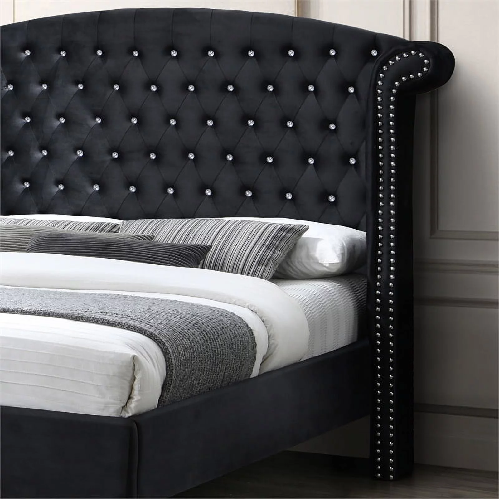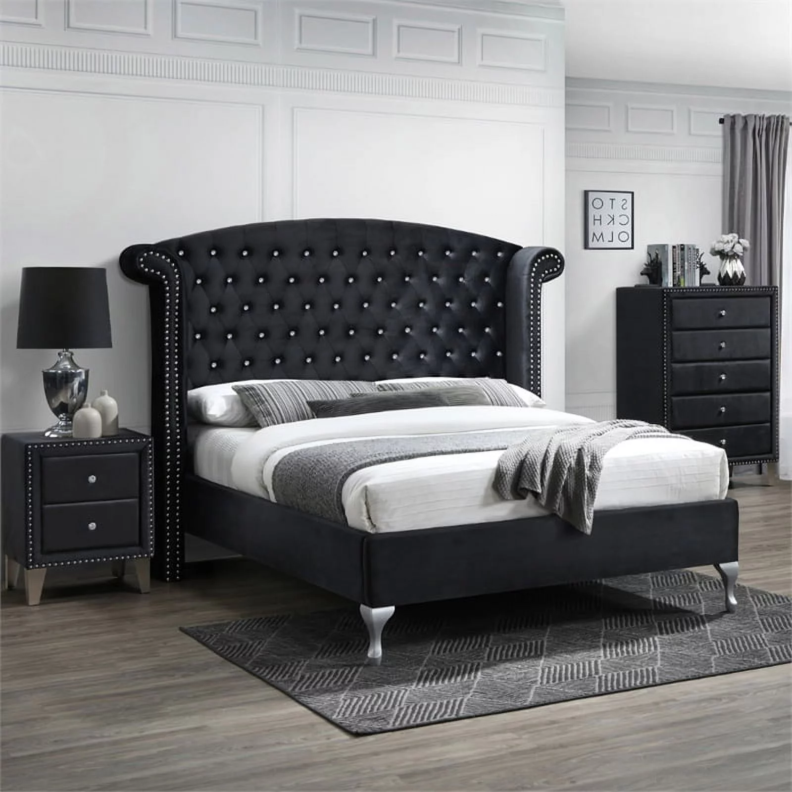 Home Square 4-Piece Set with Storage Bed Wardrobe Armoire 2 Nighstands in Black