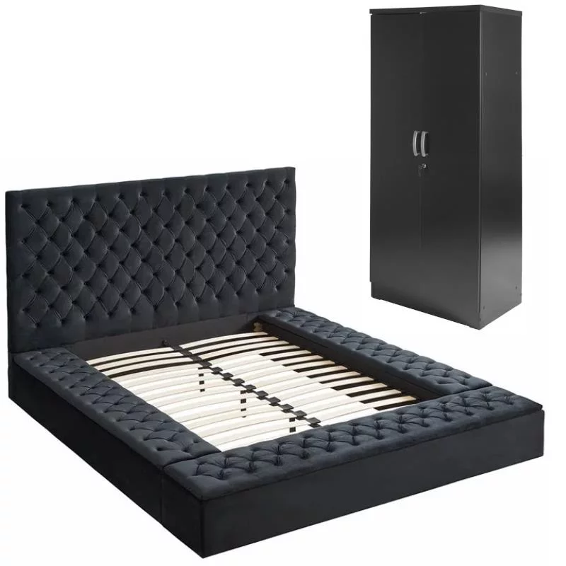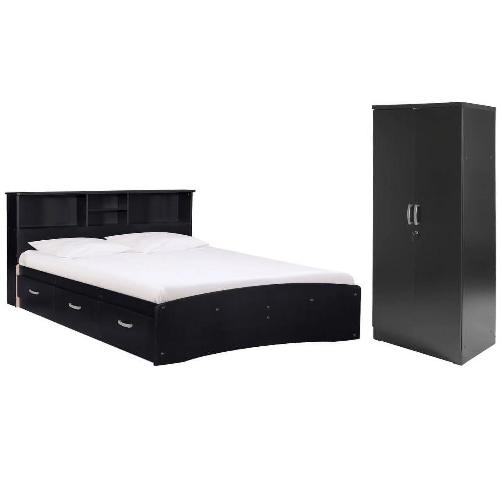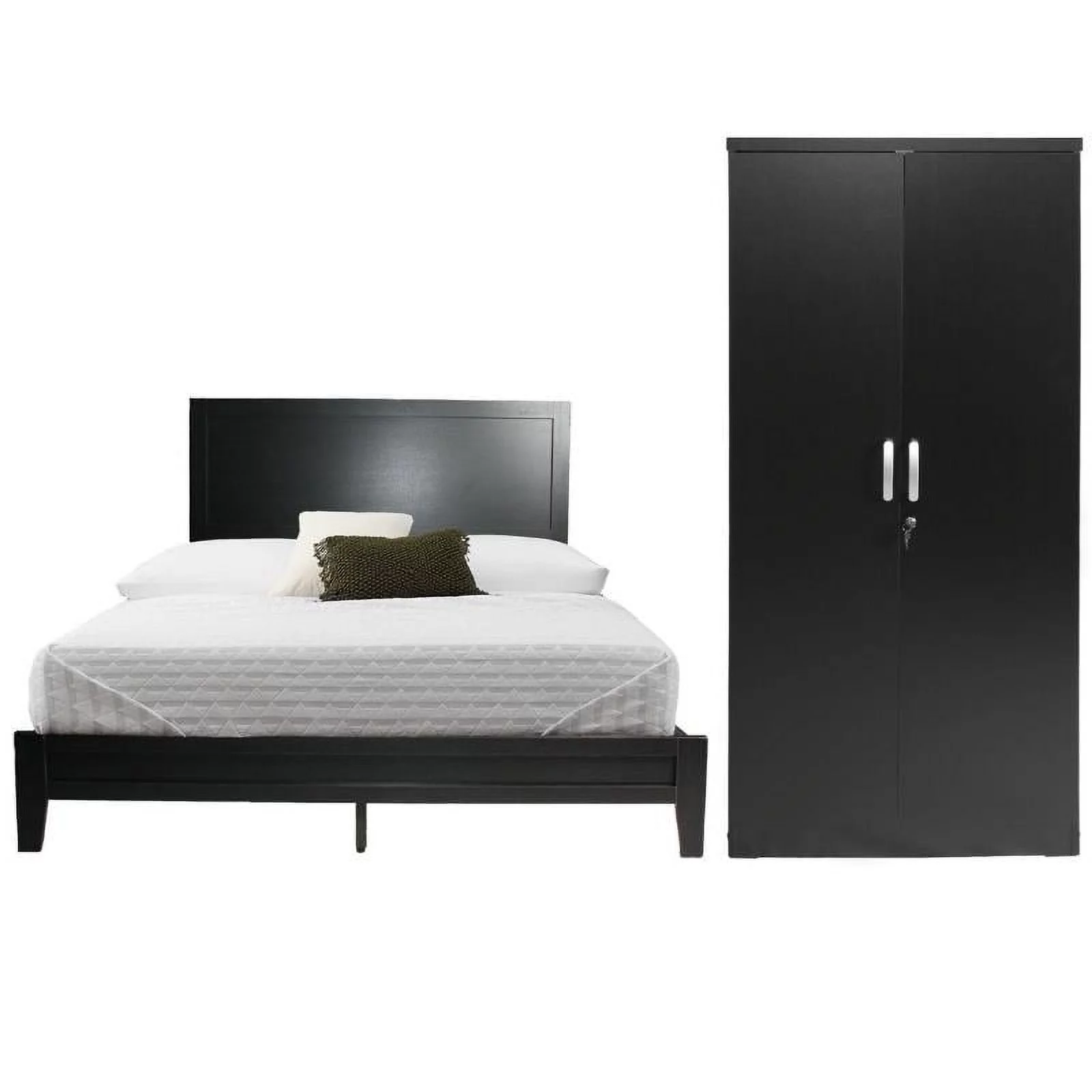 Home Square 2-Piece Set with Full Bed and Wardrobe Armoire Closet in Black