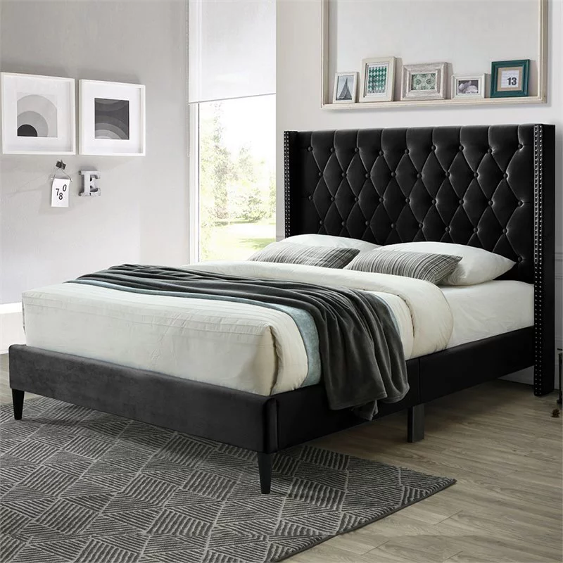 Home Square 3-Piece Set with Tufted Full Bed Armoire Wardrobe Cabinet Nightstand