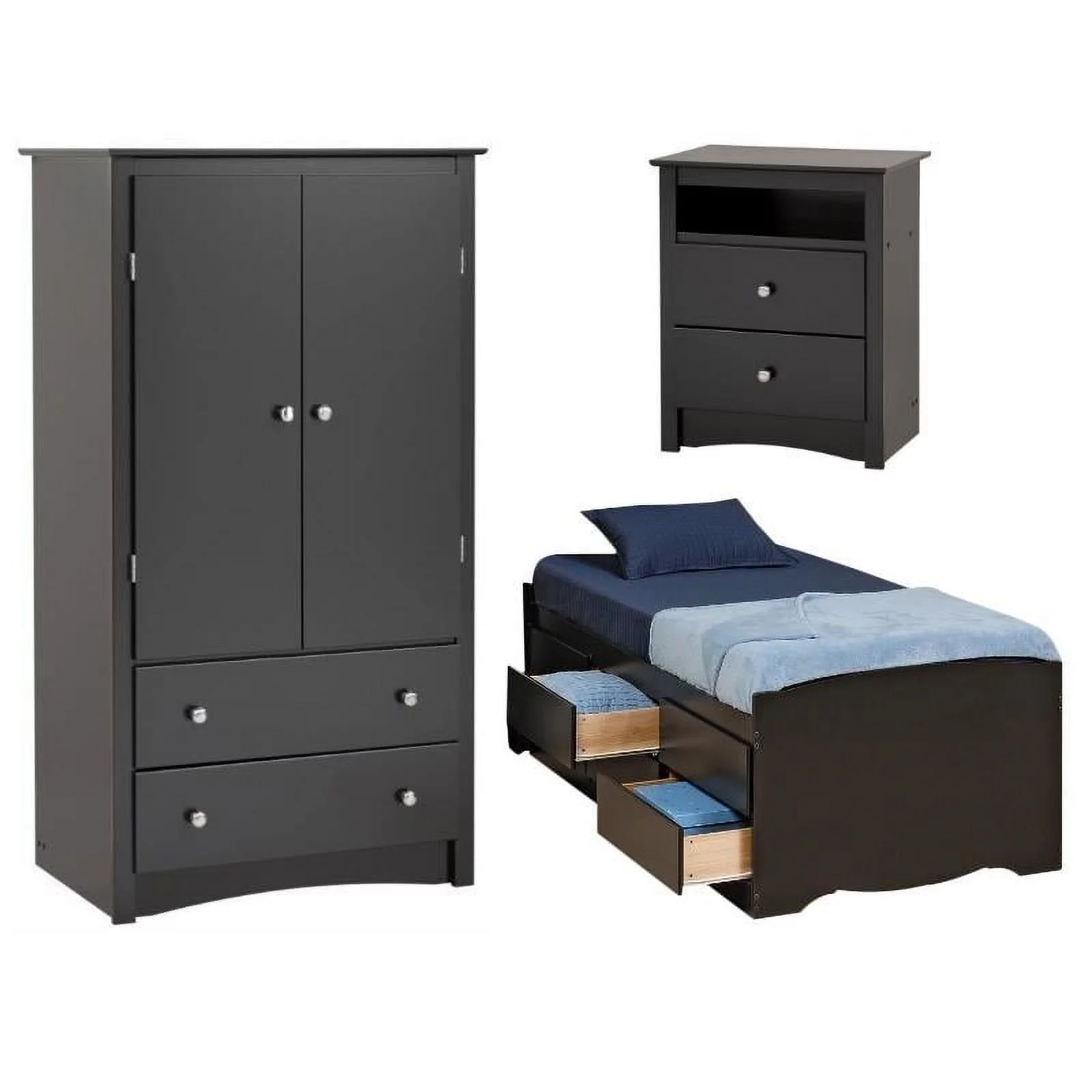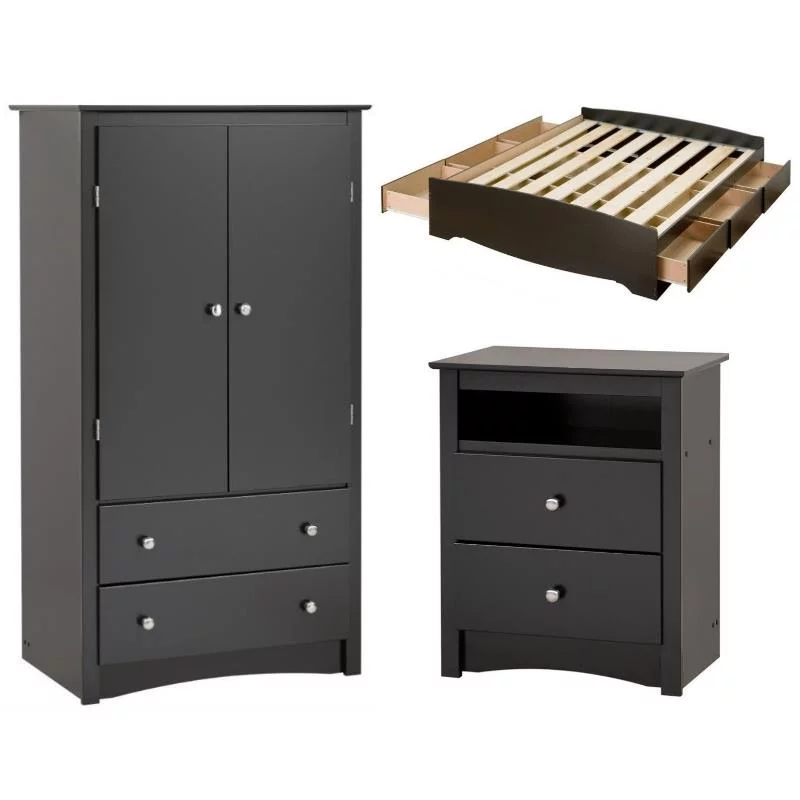Home Square 3-Piece Set with Storage Bed Wardrobe Armoire & Tall Night Stand