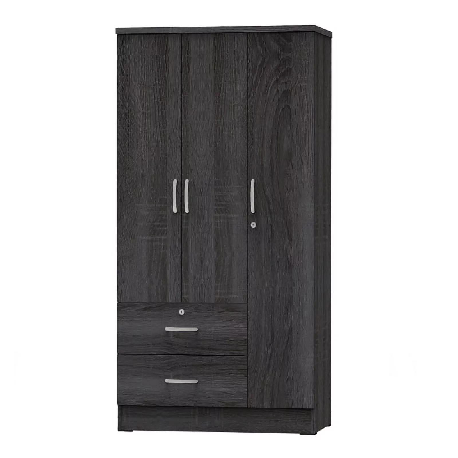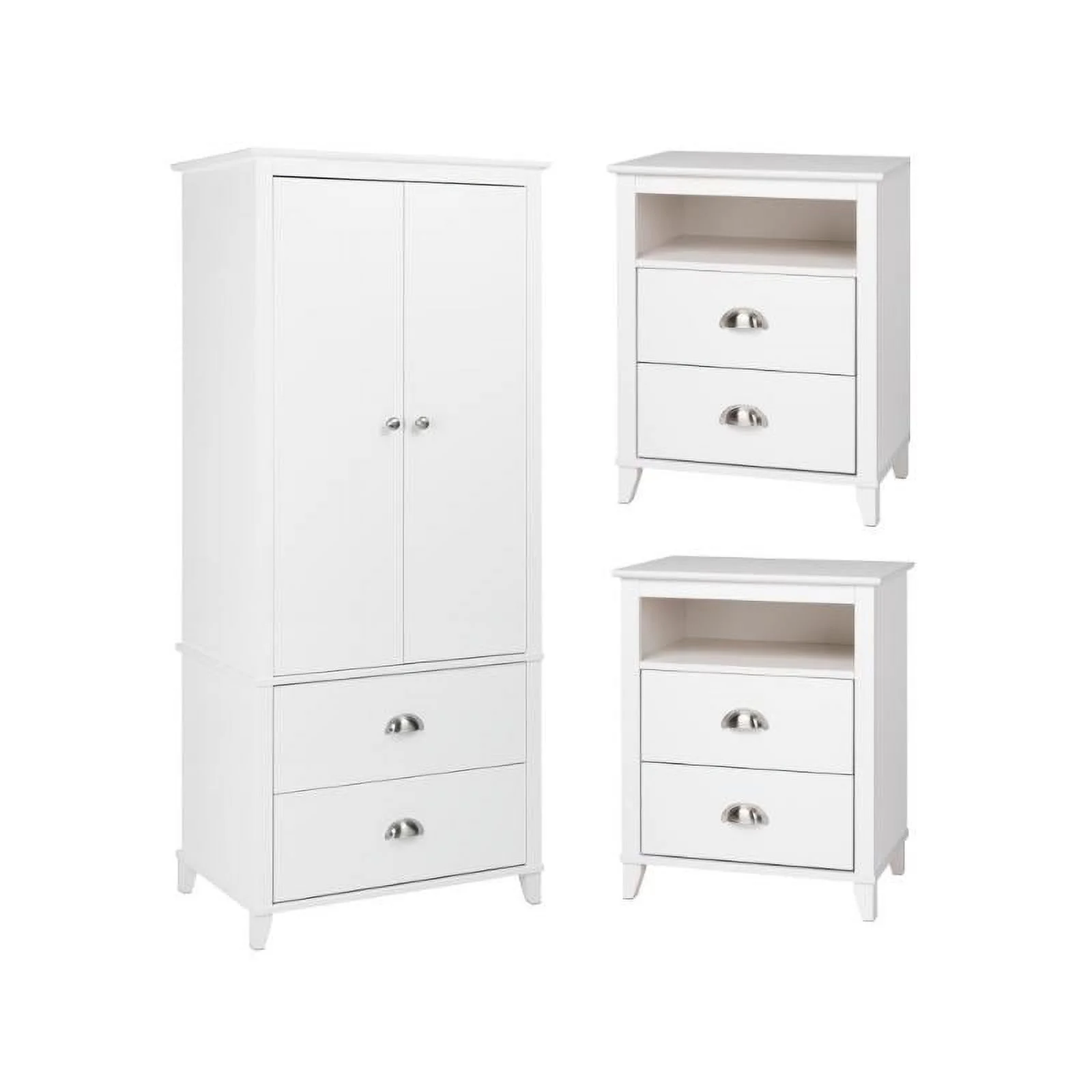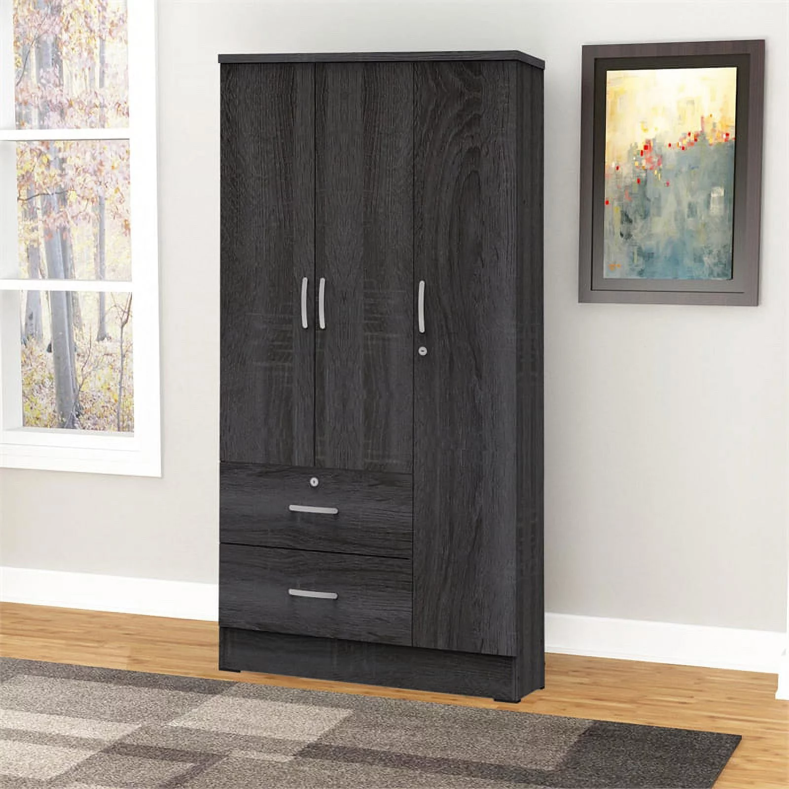 Home Square 3-Piece Set with 2 2-Drawer Nightstands and Wardrobe Armoire