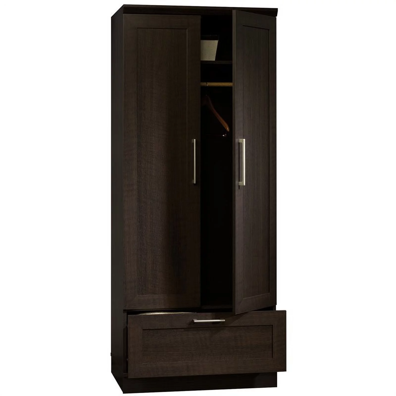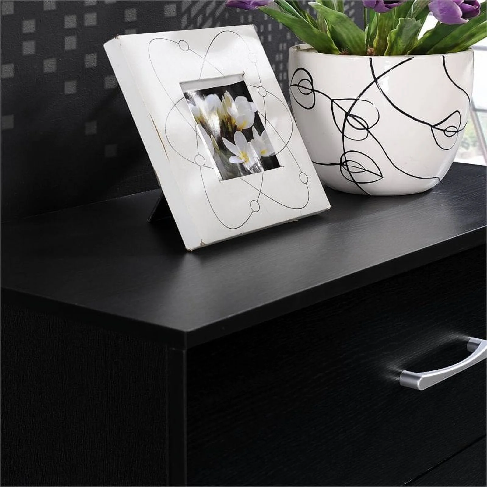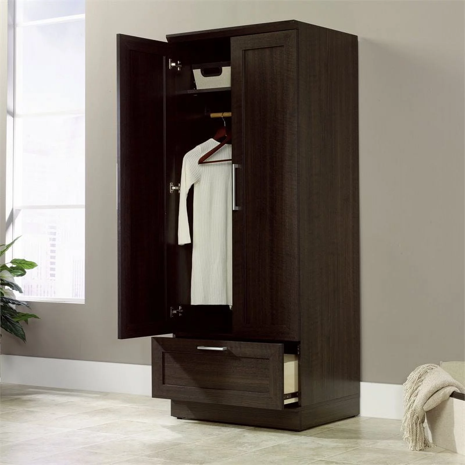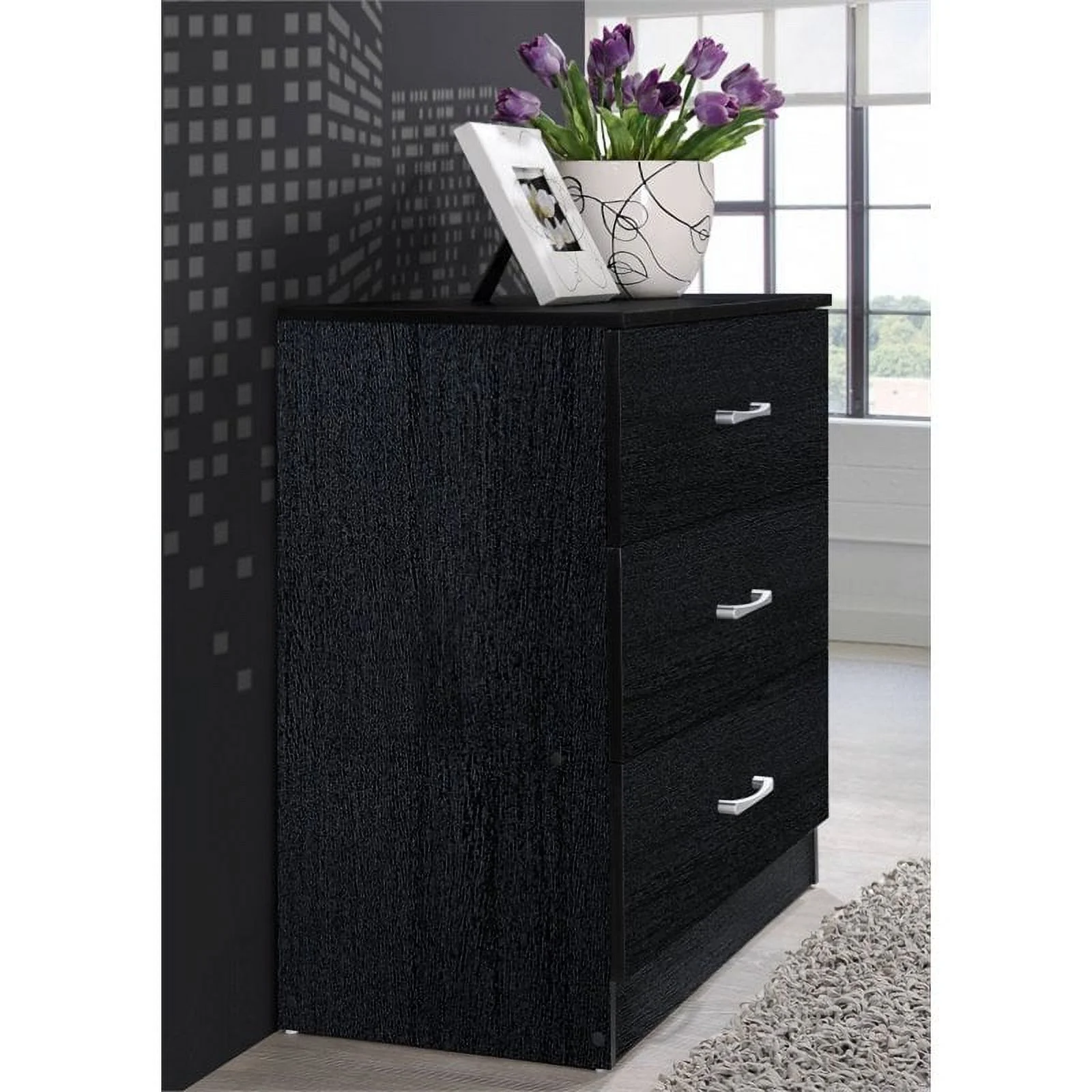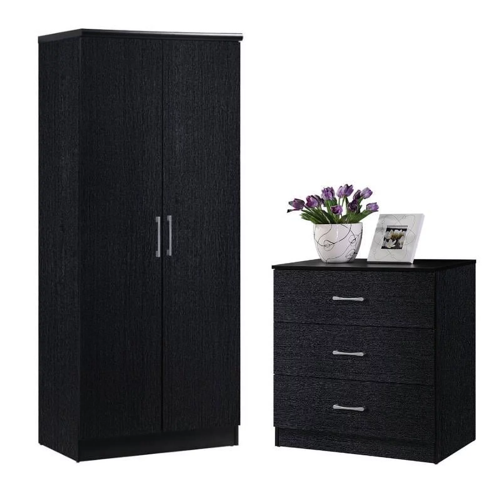 Home Square 2 Piece Set with Two Door Armoire and 3 Drawer Chest in Black Wood