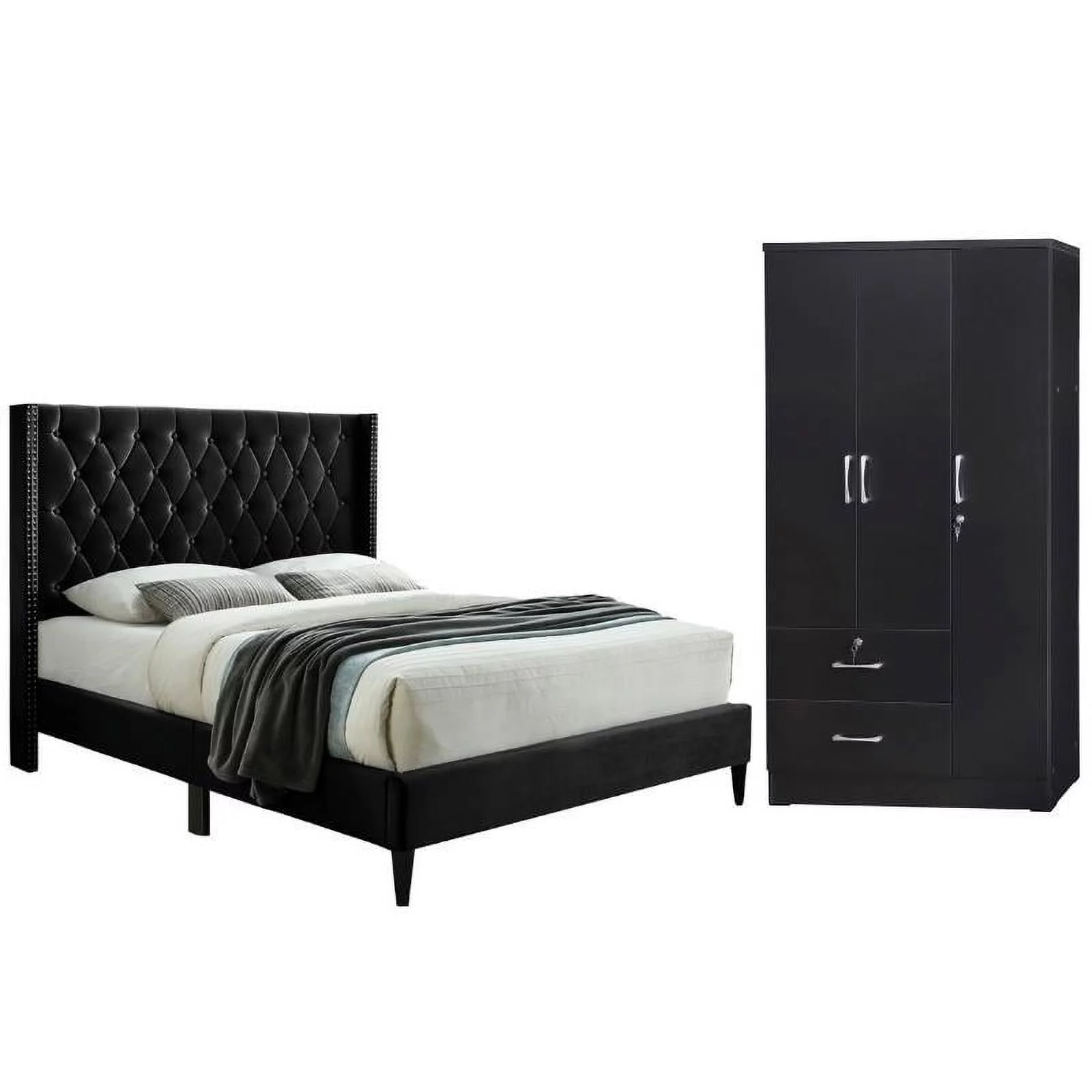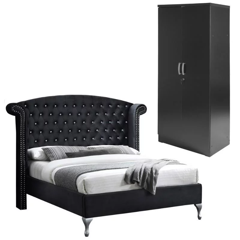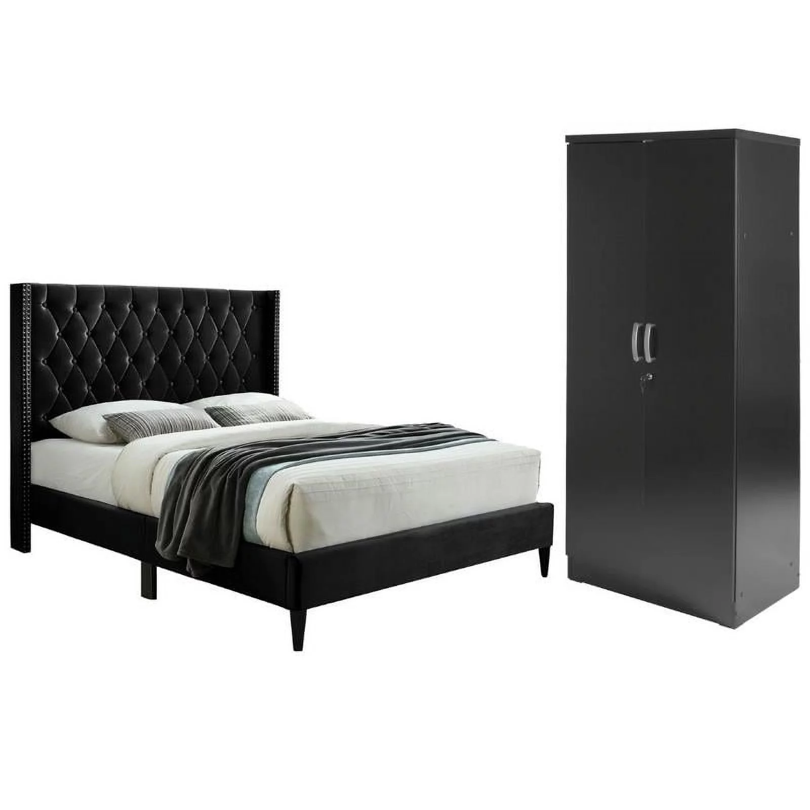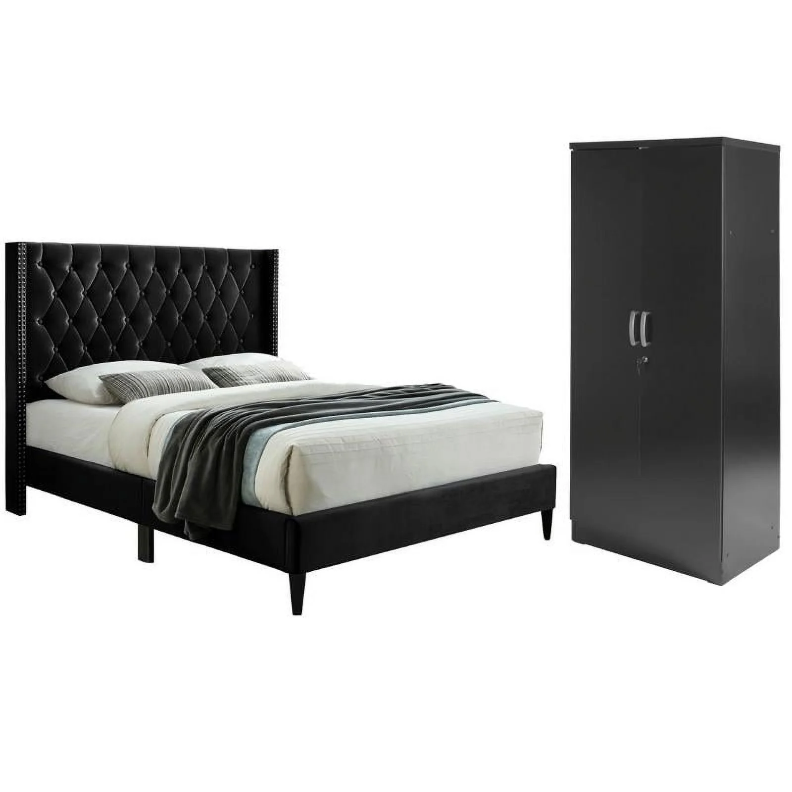 Home Square 2-Piece Set with Queen Bed & Armoire Wardrobe Cabinet in Black