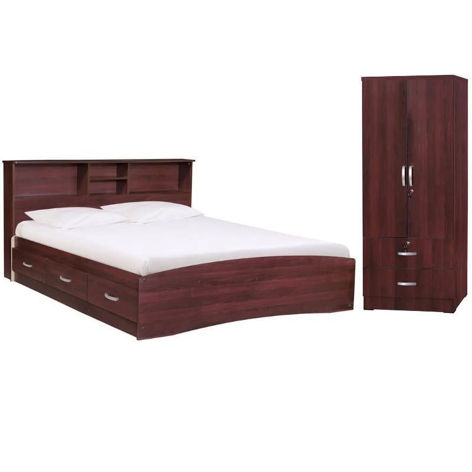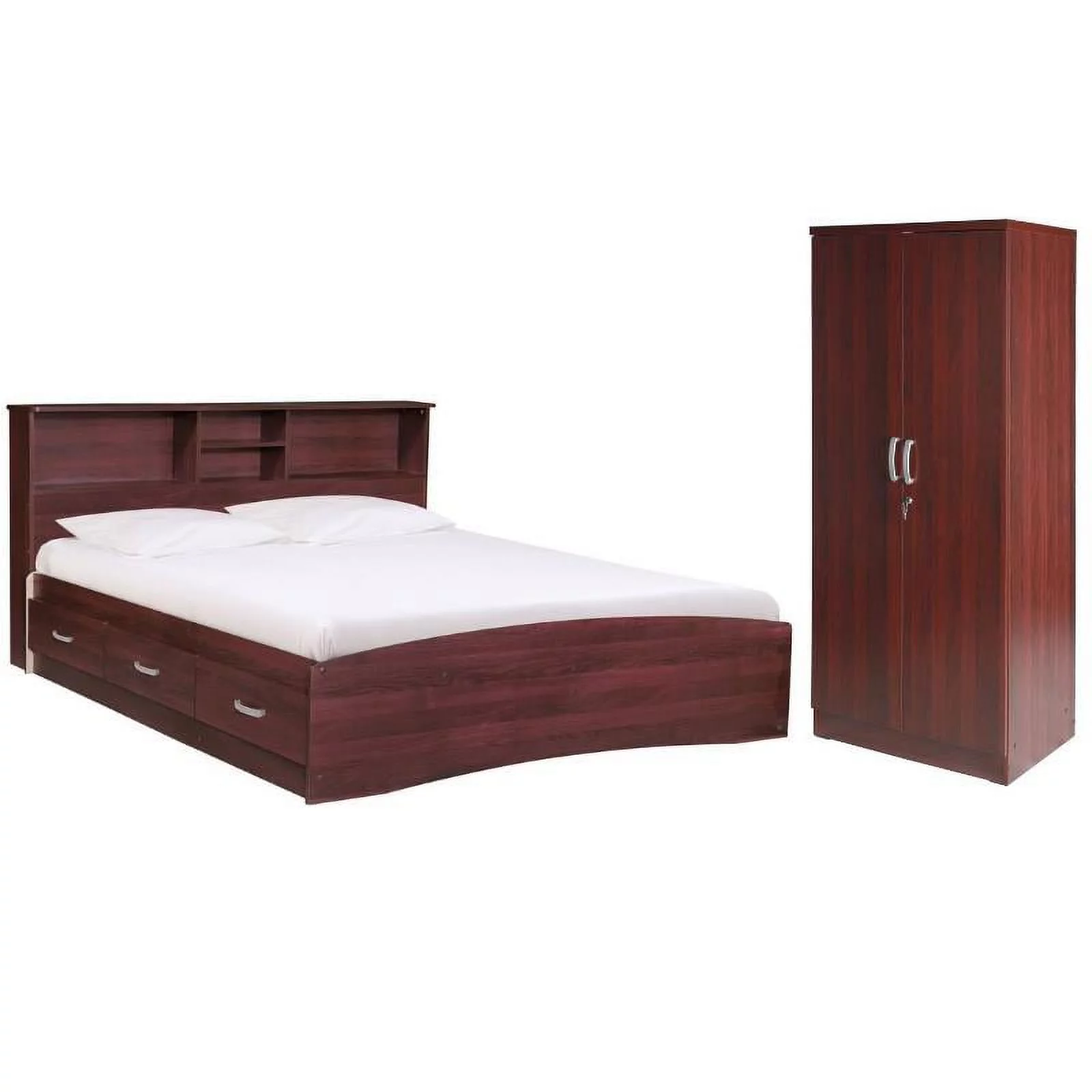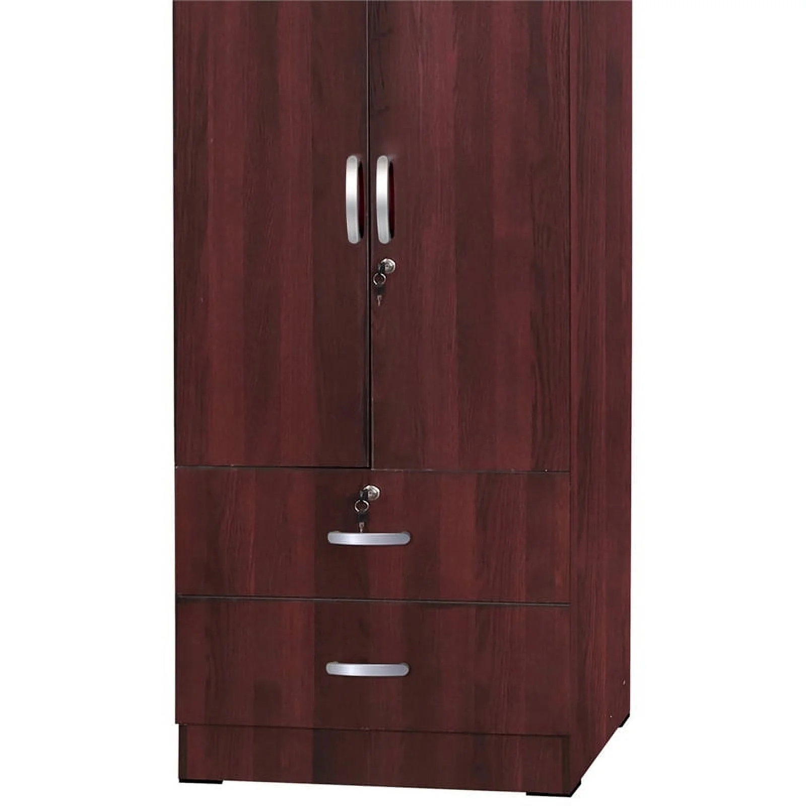 Home Square 2-Piece Set with Queen Bed and 2-Door Wardrobe Armoire in Mahogany