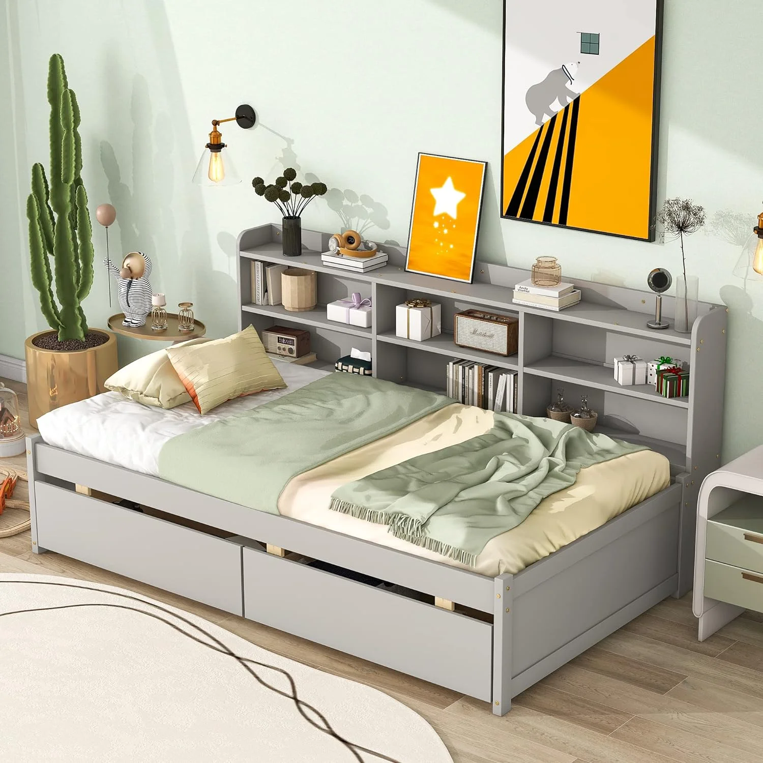 Home Square 2-Piece Set with Twin Captains Bed and Wardrobe Armoire Closet