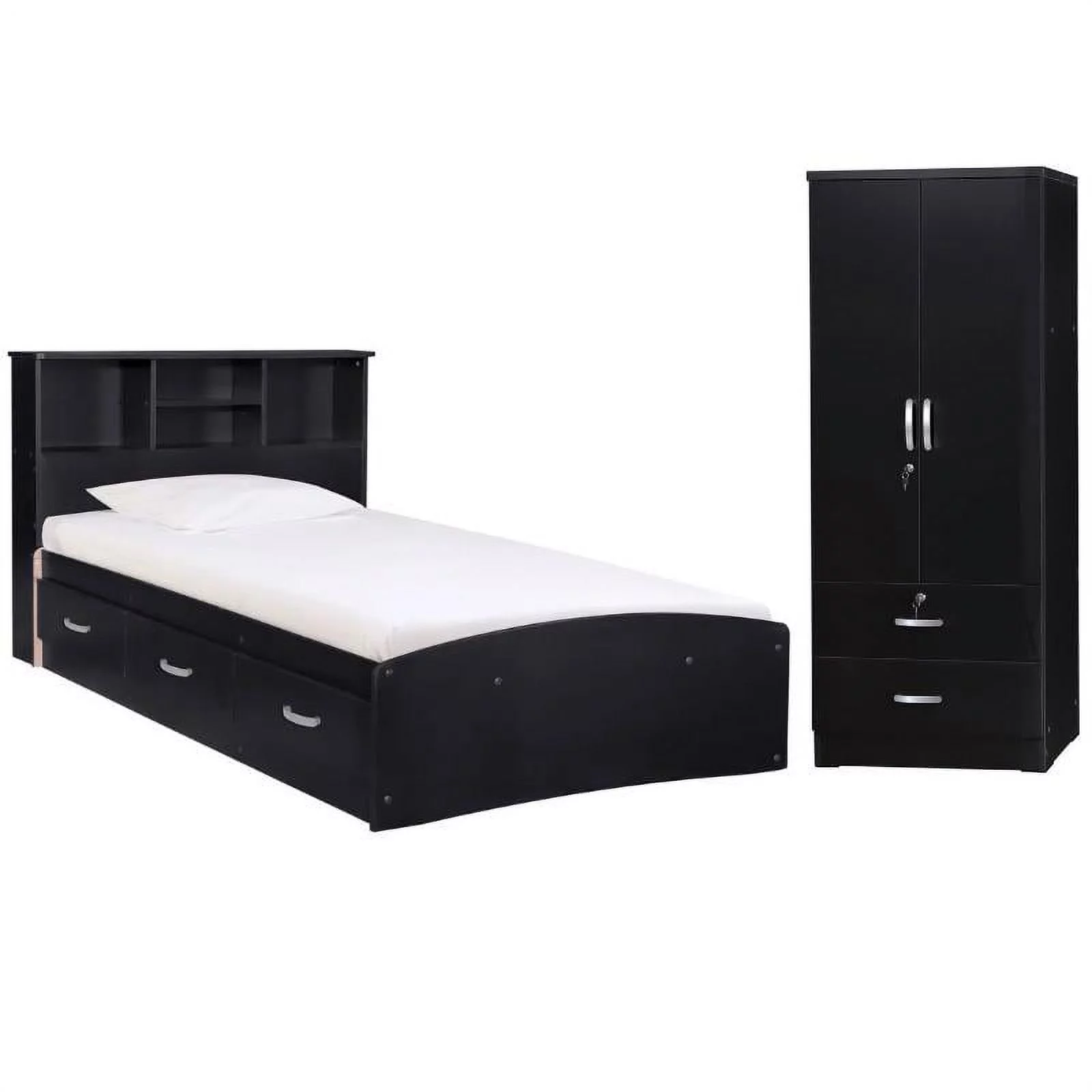 Home Square 2-Piece Set with Twin Bed & 2-Door Armoire Wardrobe Cabinet in Black