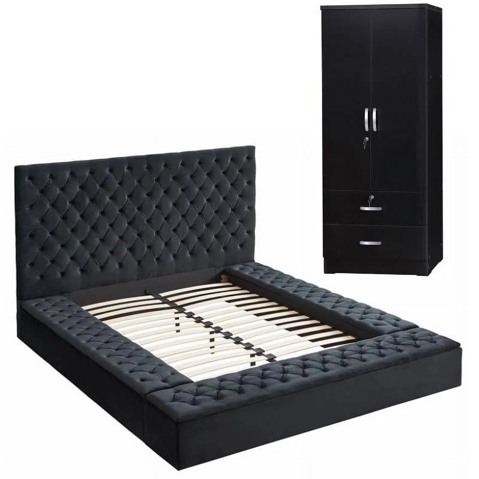 Home Square 2-Piece Set with Tufted Full Bed and Wardrobe Armoire Closet