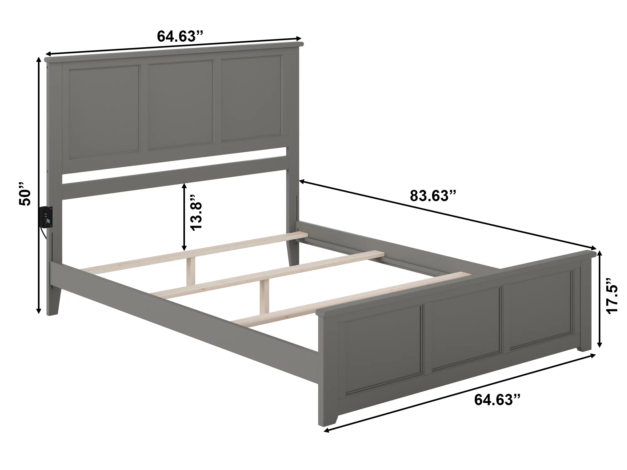 AFI Madison Queen Solid Wood Traditional Bed with Matching Headboard Footboard Set in Grey
