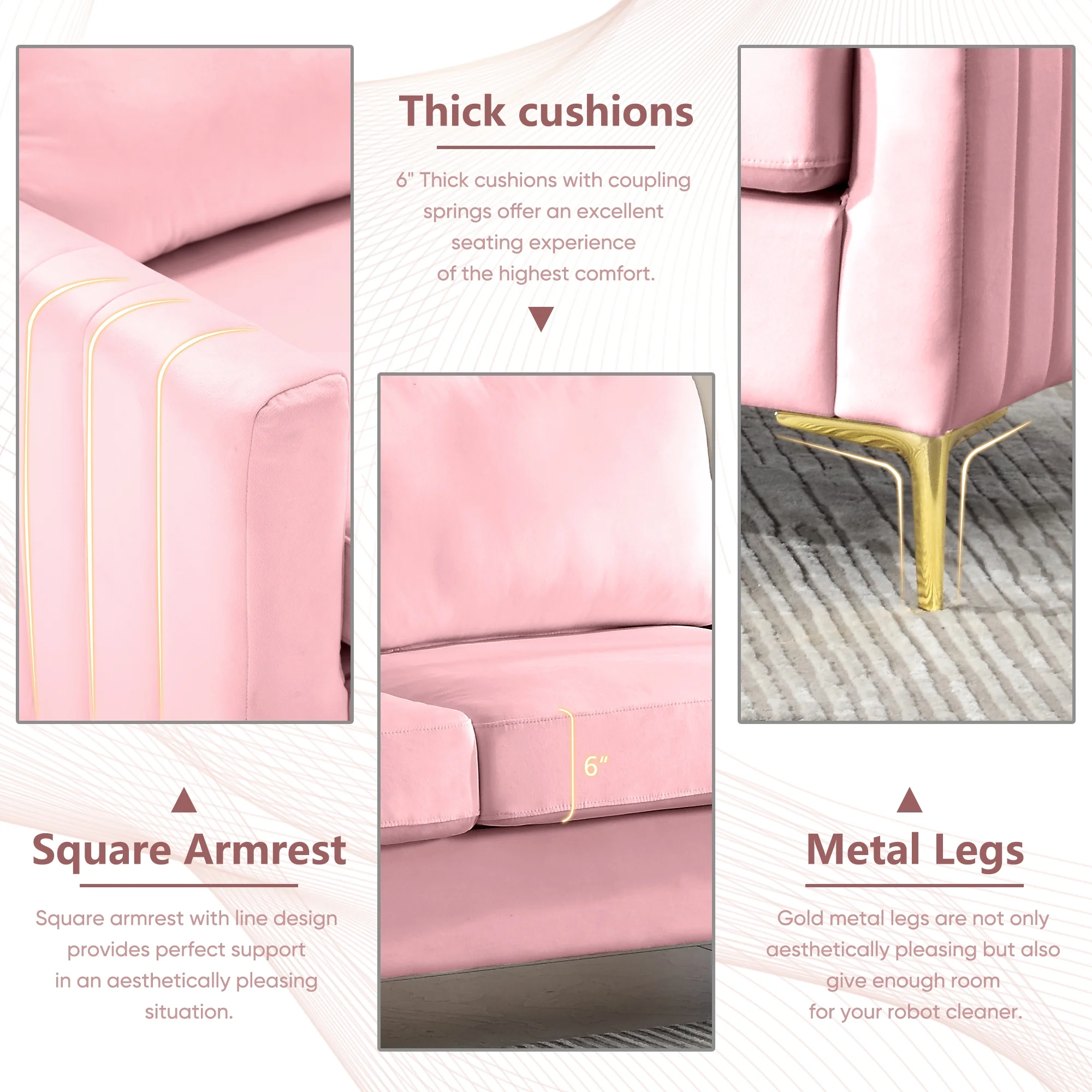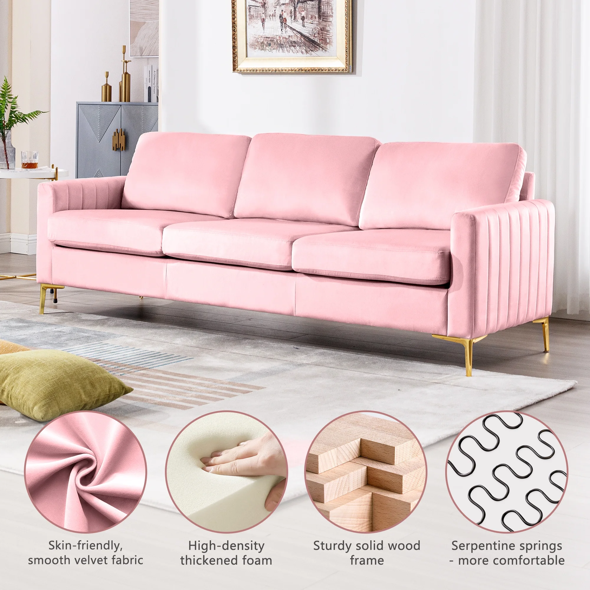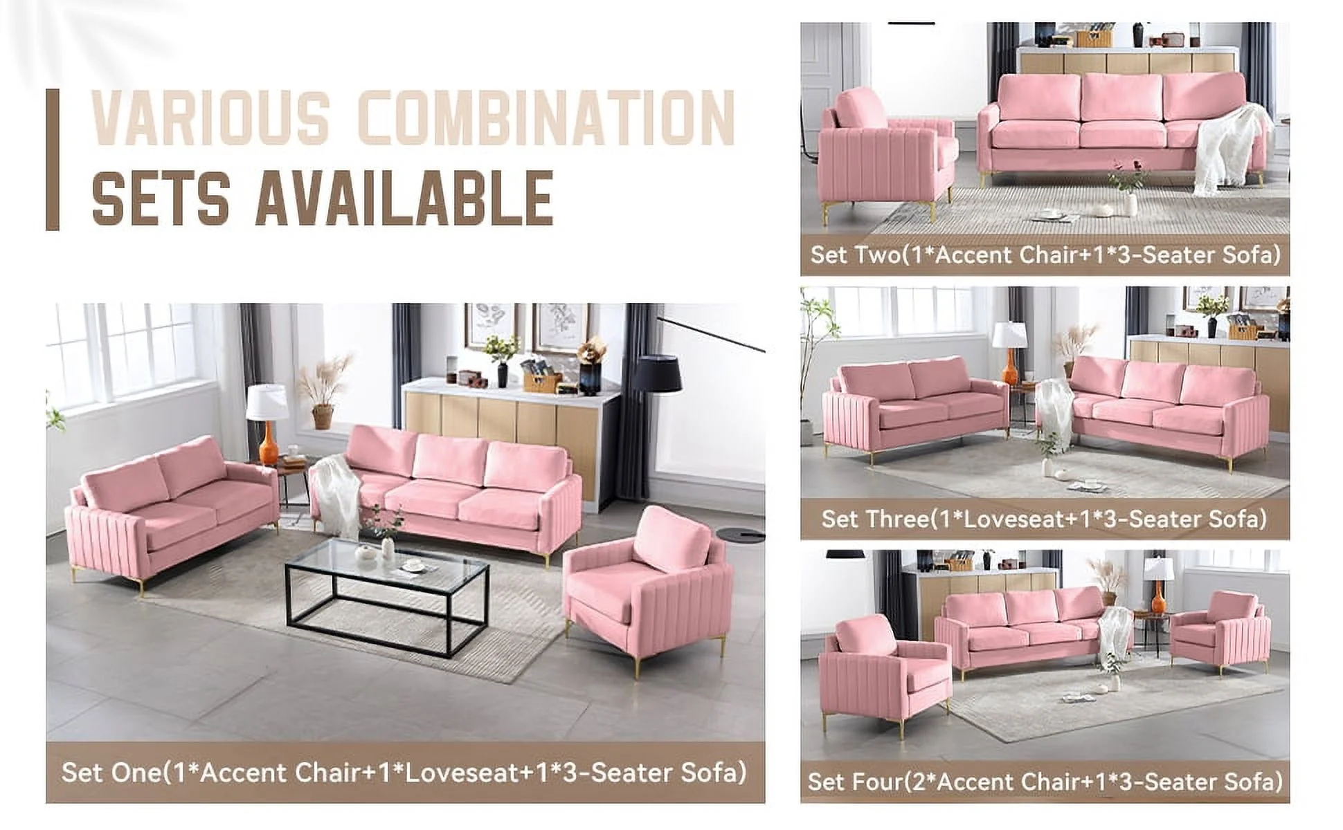 SEYNAR Modern Accent Single Sofa Chair, Upholstered Velvet Arm Chair Set of 2 for Living Room Bedroom