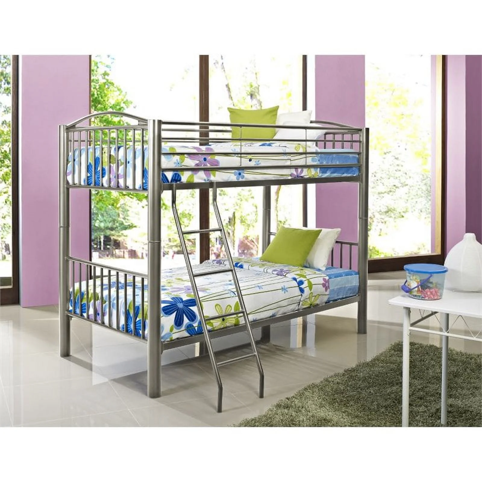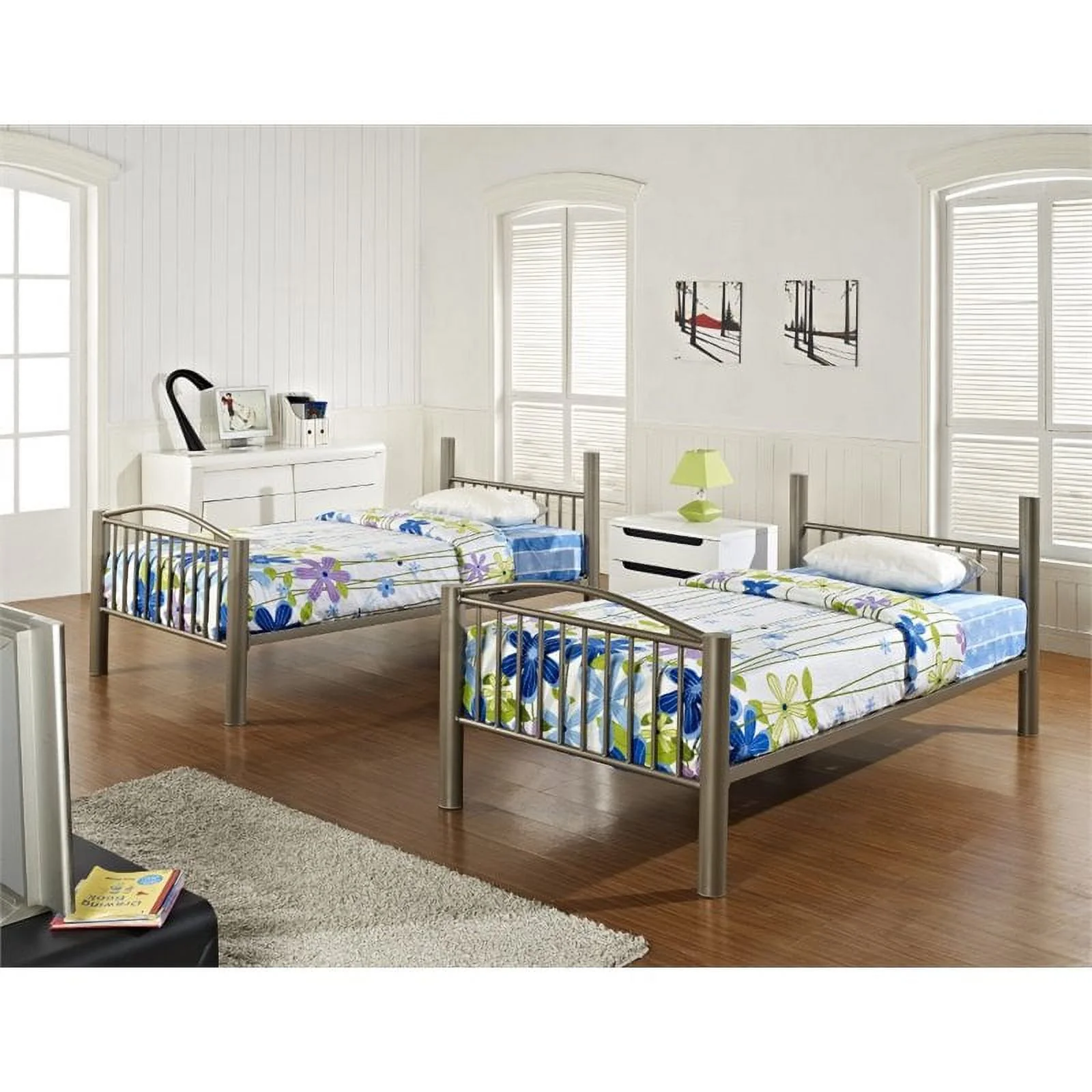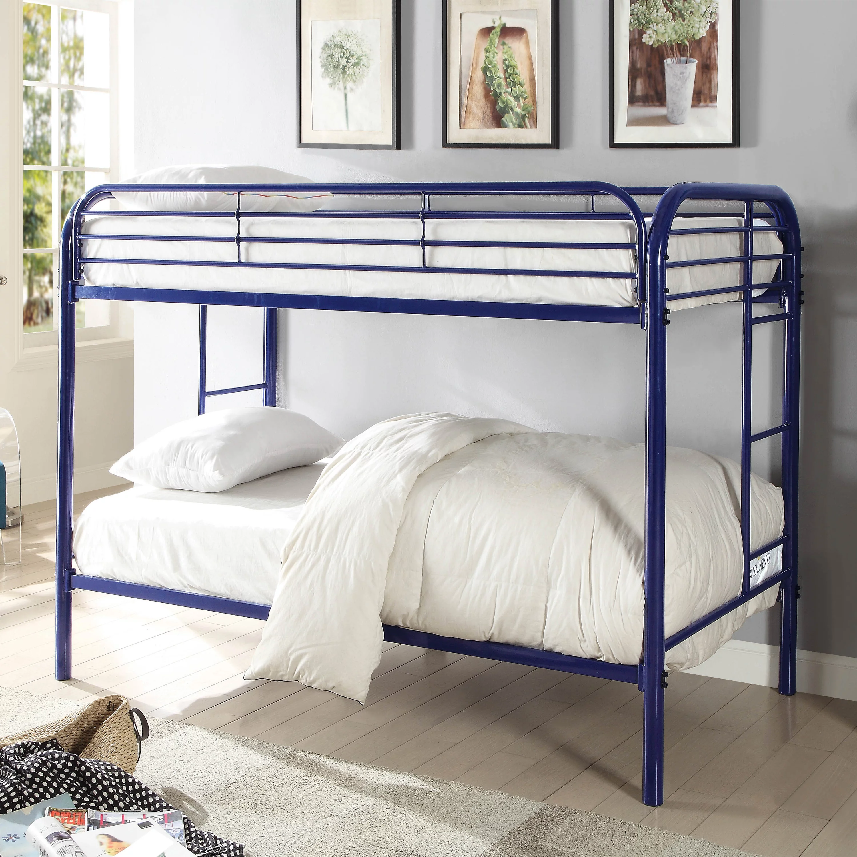 Furniture of America Wade Transitional Metal Bunk Bed, Twin/Twin, Blue