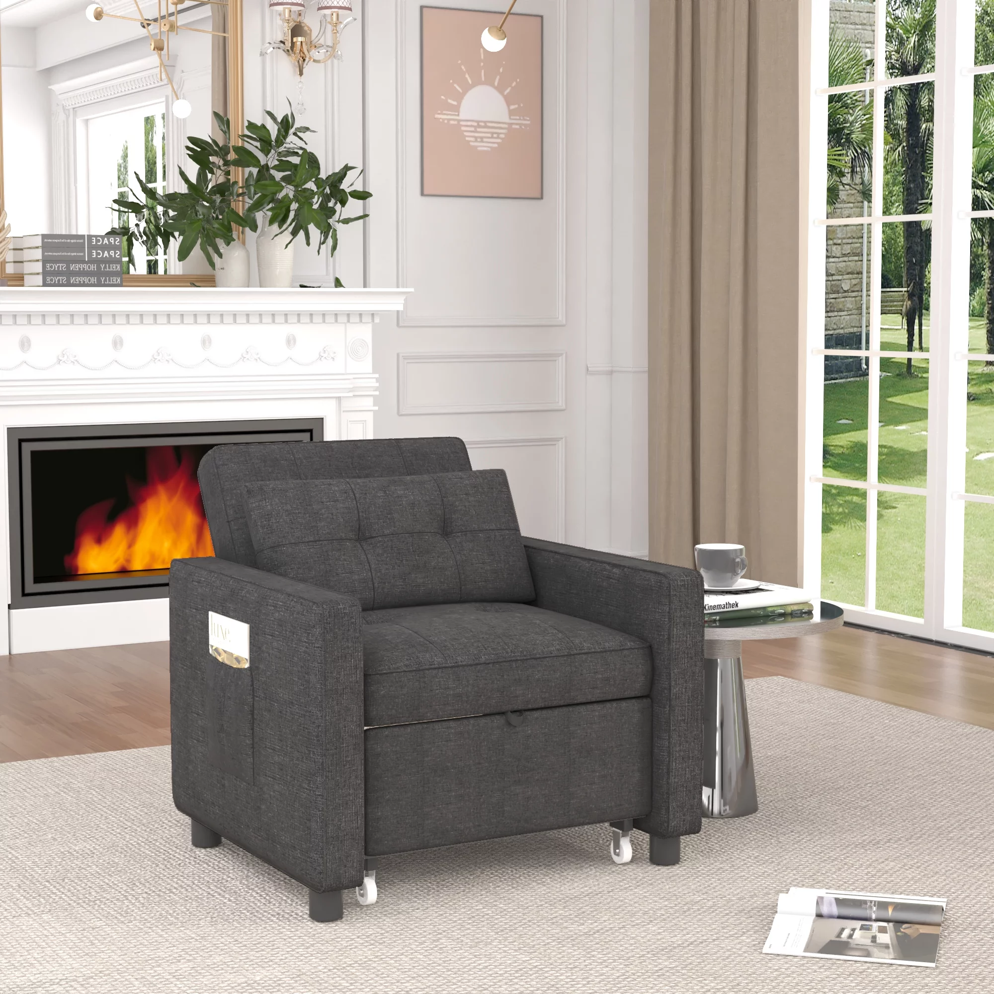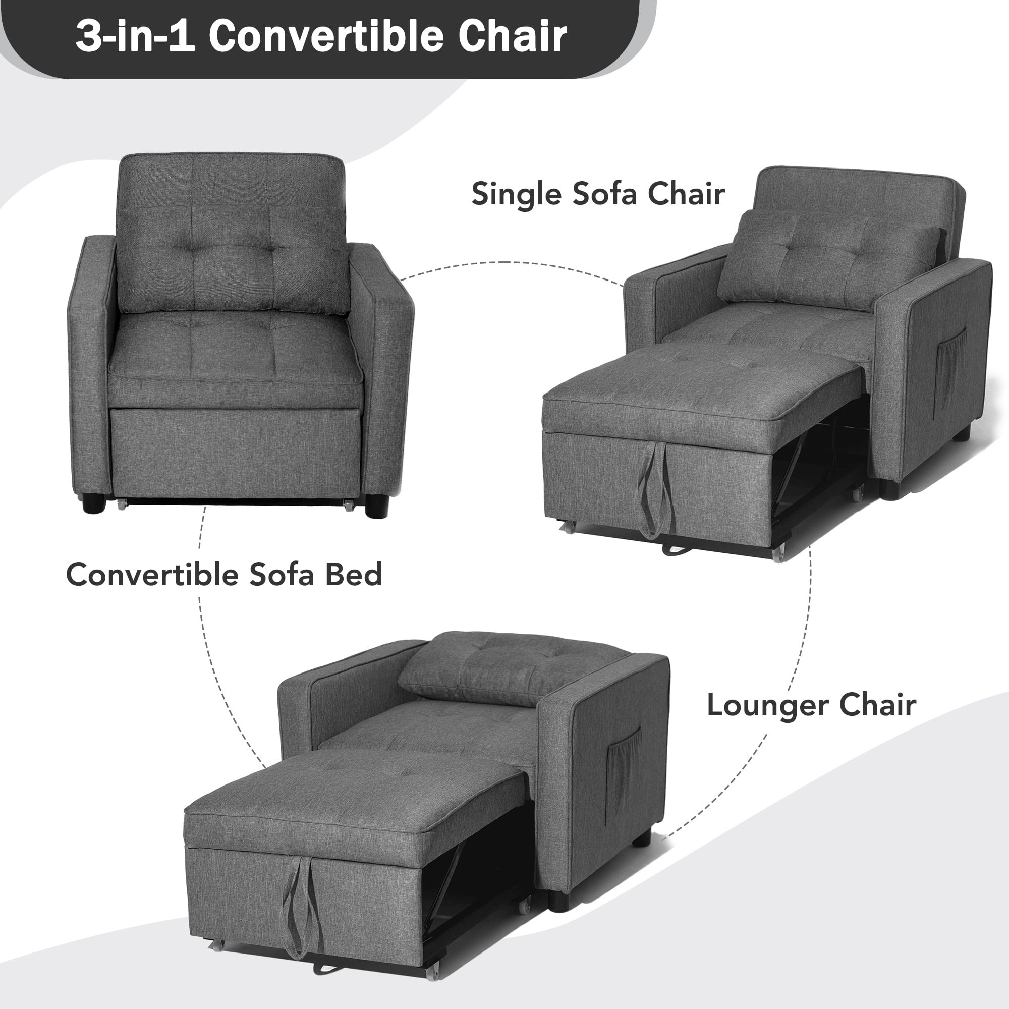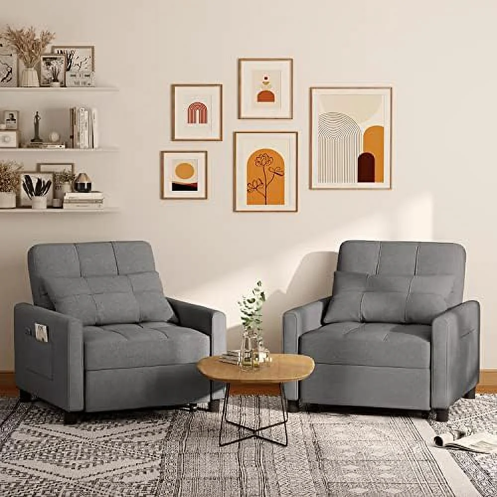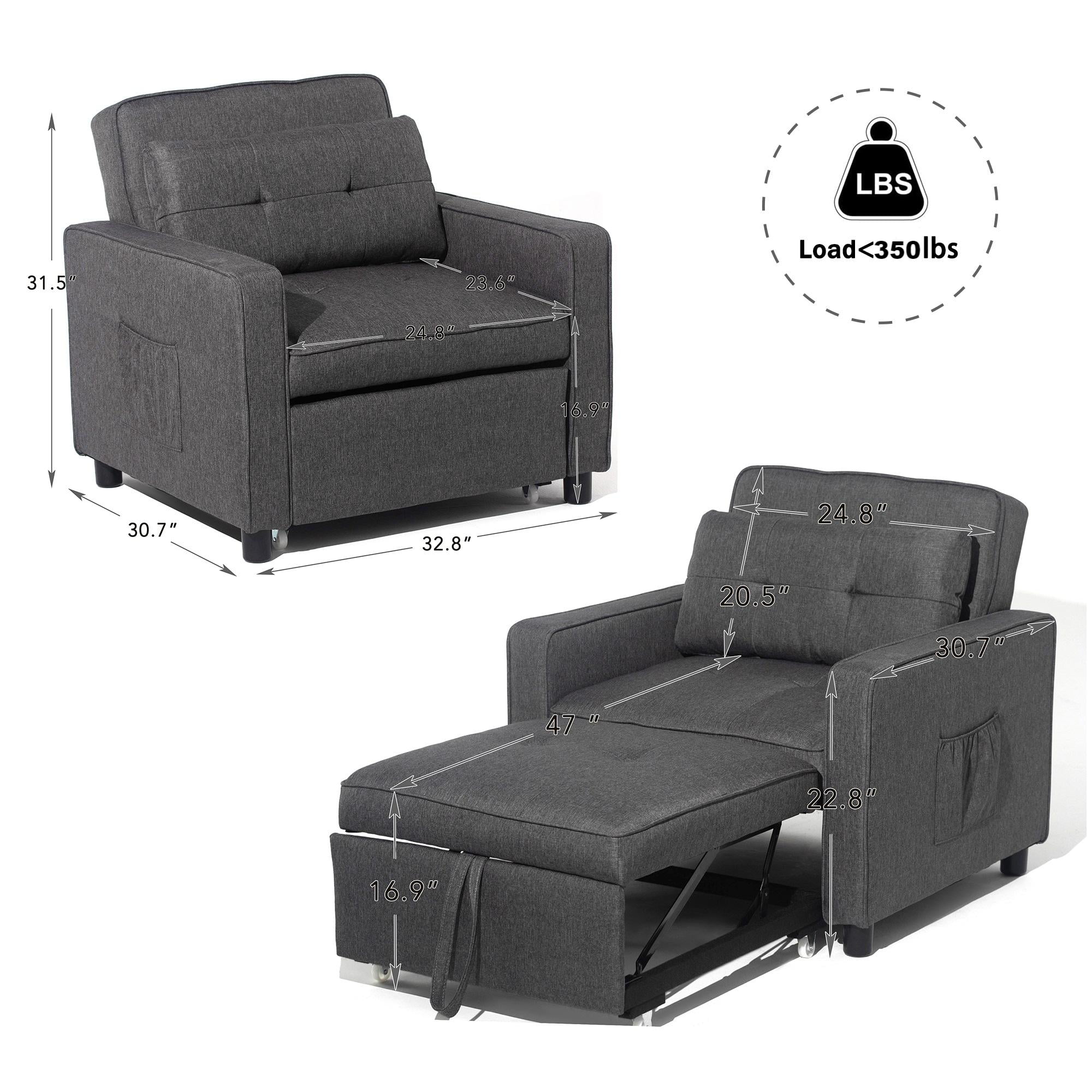 Prime Garden 3-in-1 Convertible Sofa Bed Chair Sleeper Chair for Bedroom,Living Room ,Dark Gray