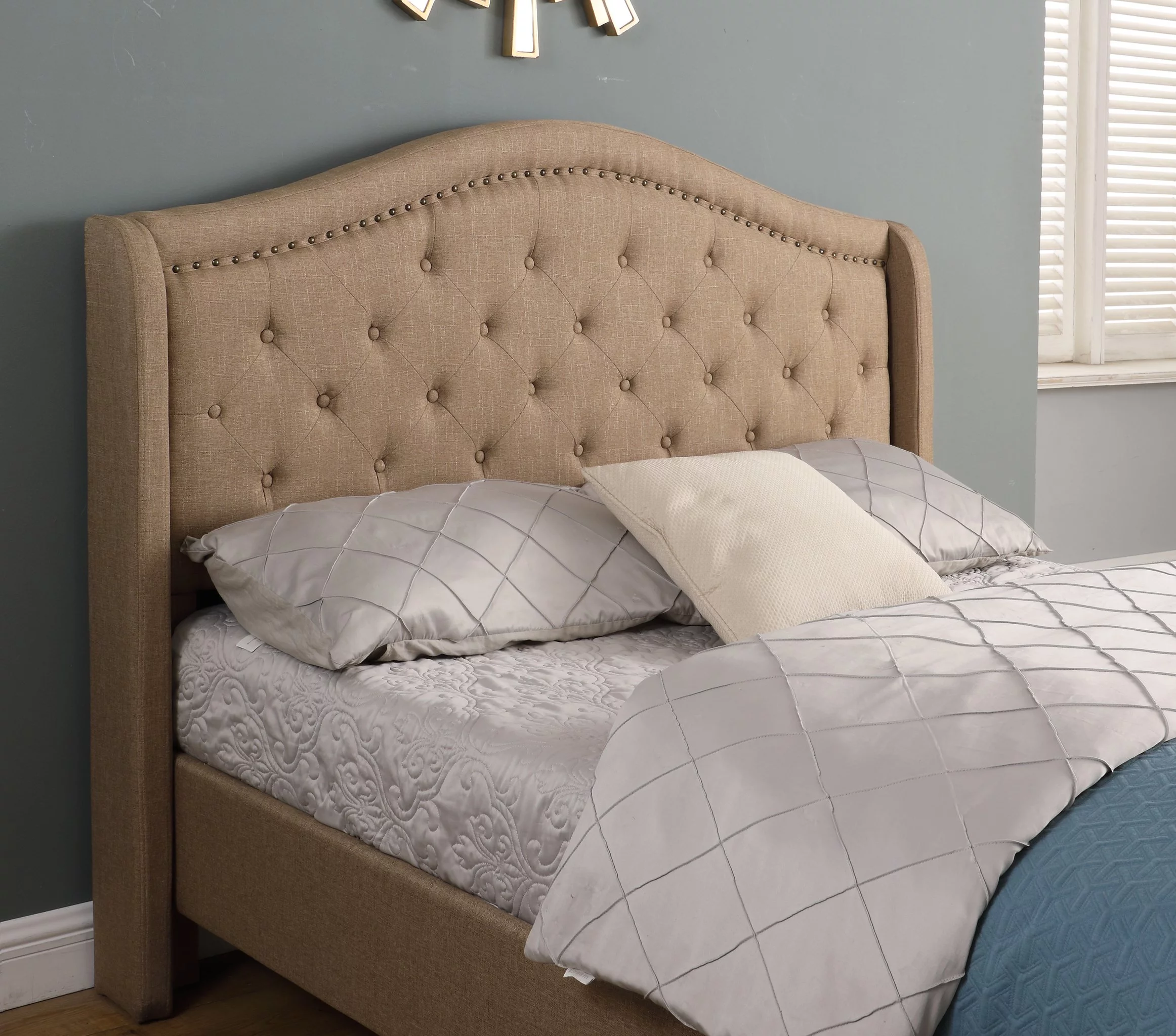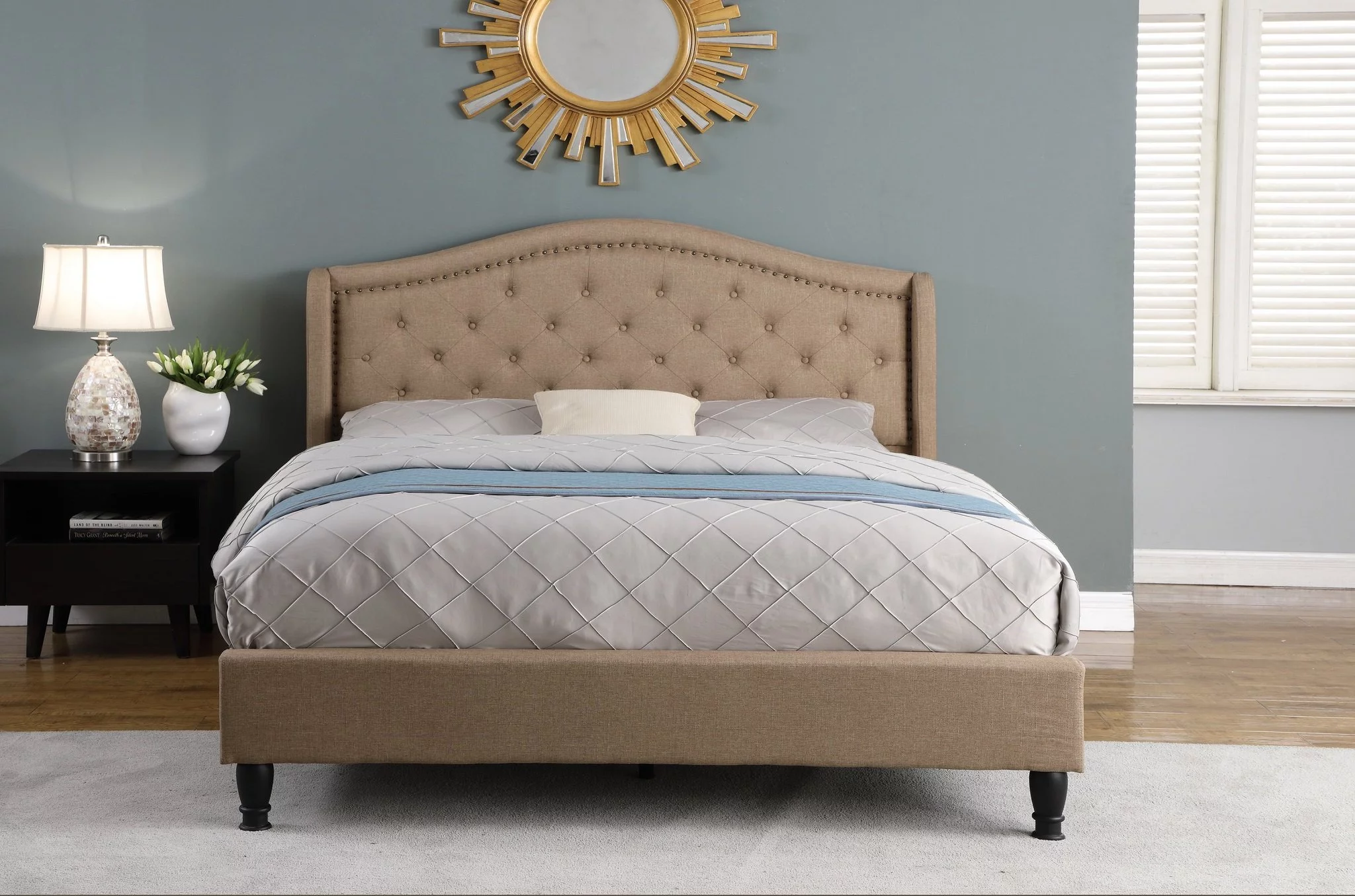 HomeLife® 53" Light Brown Curved & Diamond Tufted Headboard Platform Bed