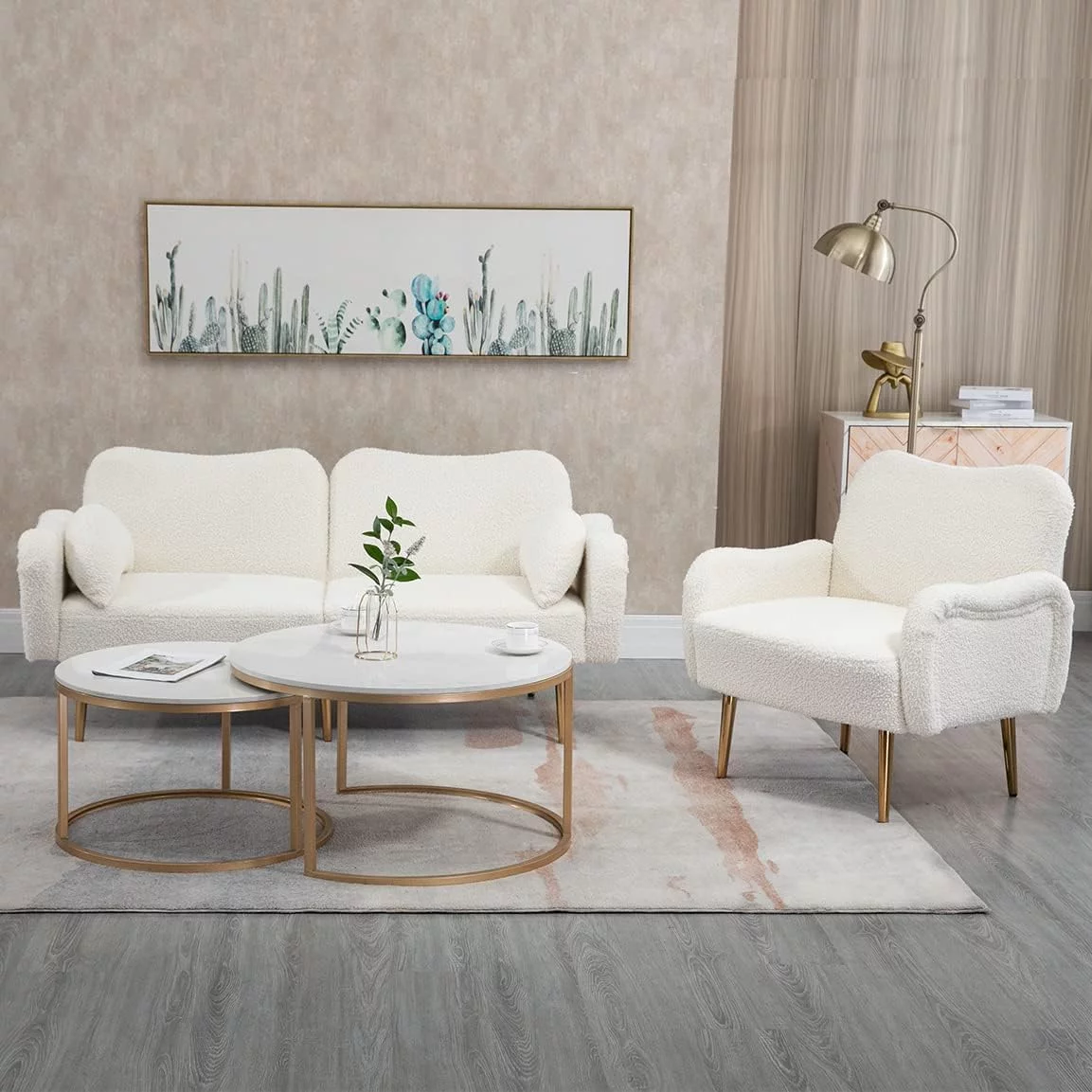 Sythers Single Sofa Chair Sleeper,Solid Wood Retro Simple Single Sofa, 67x72.5x82cm, Beige