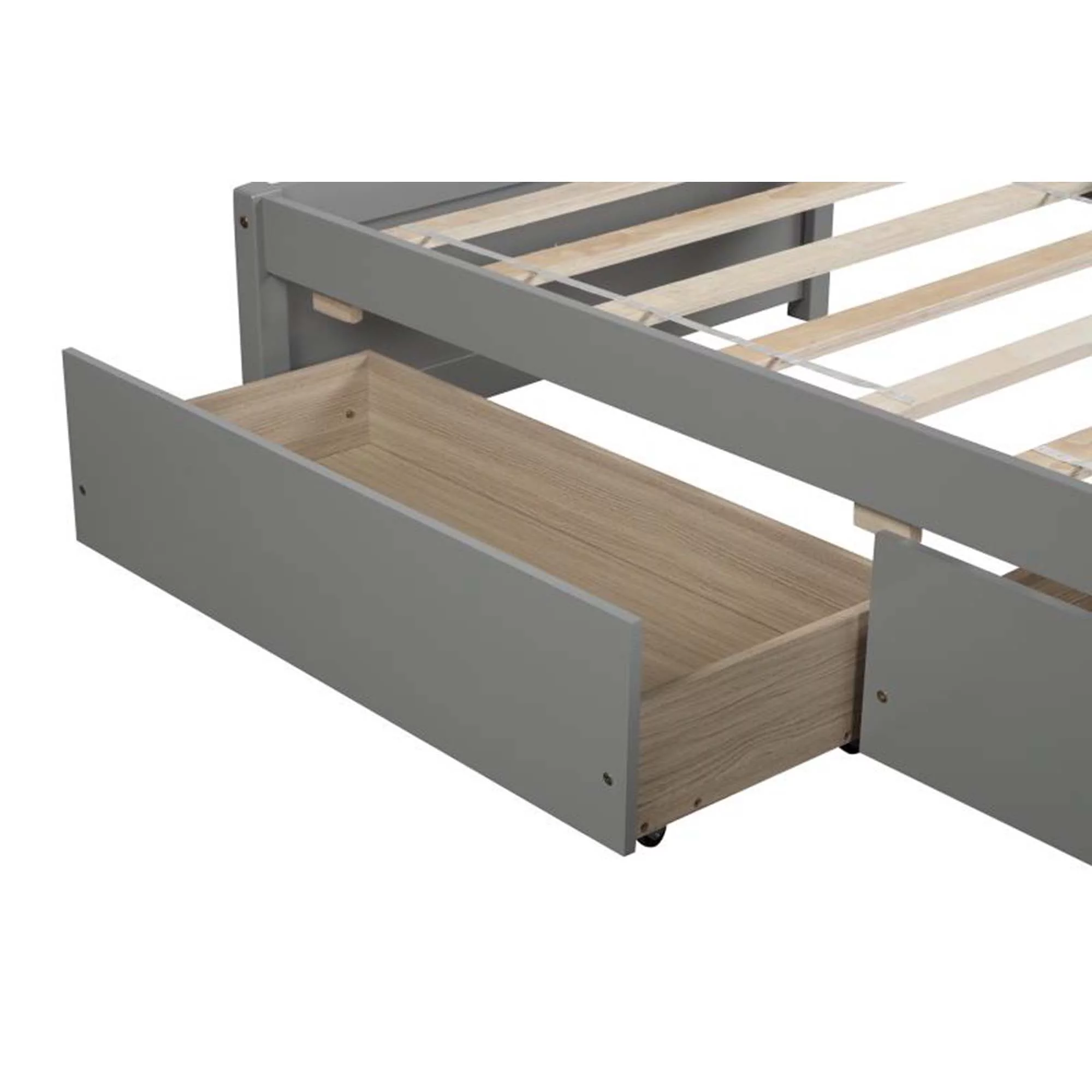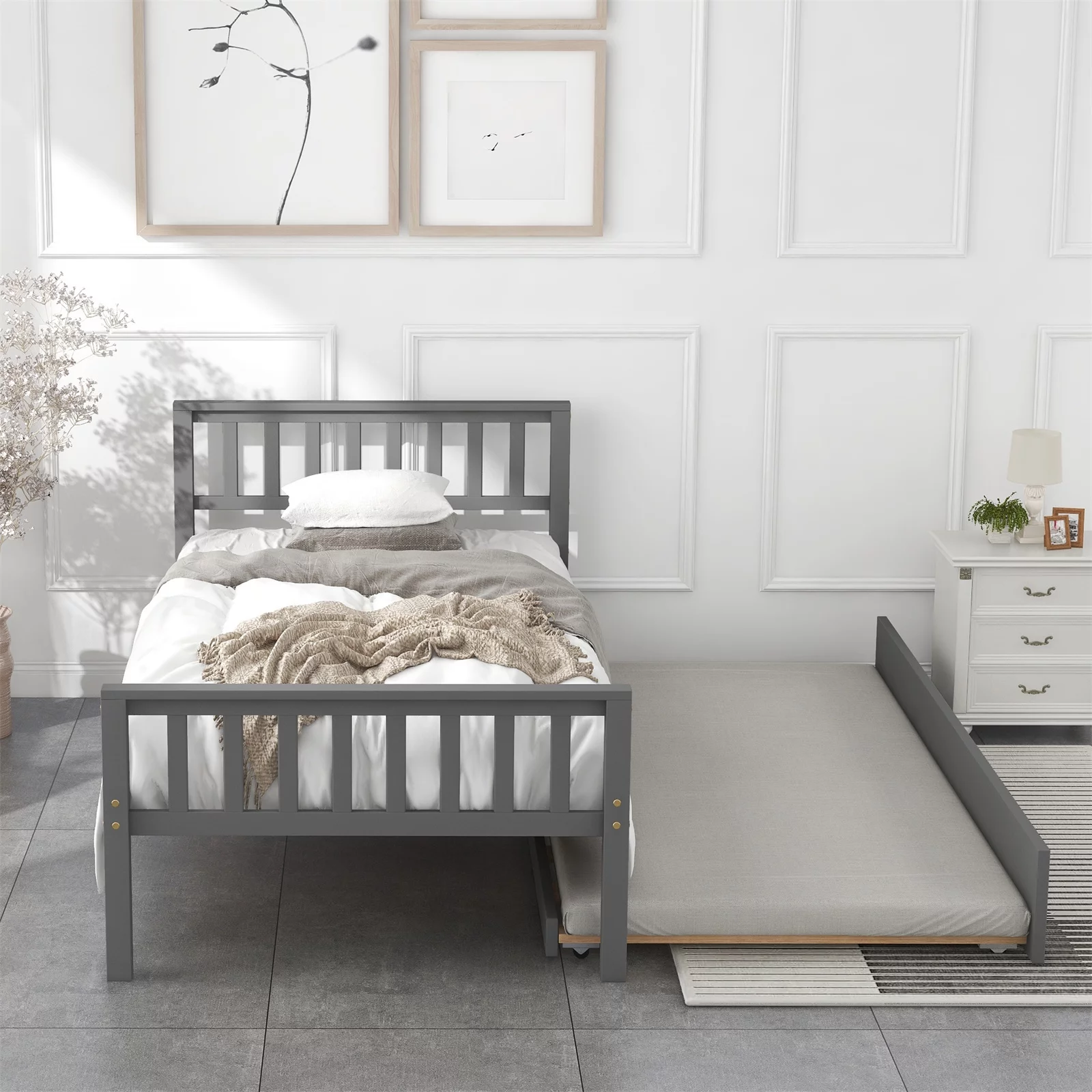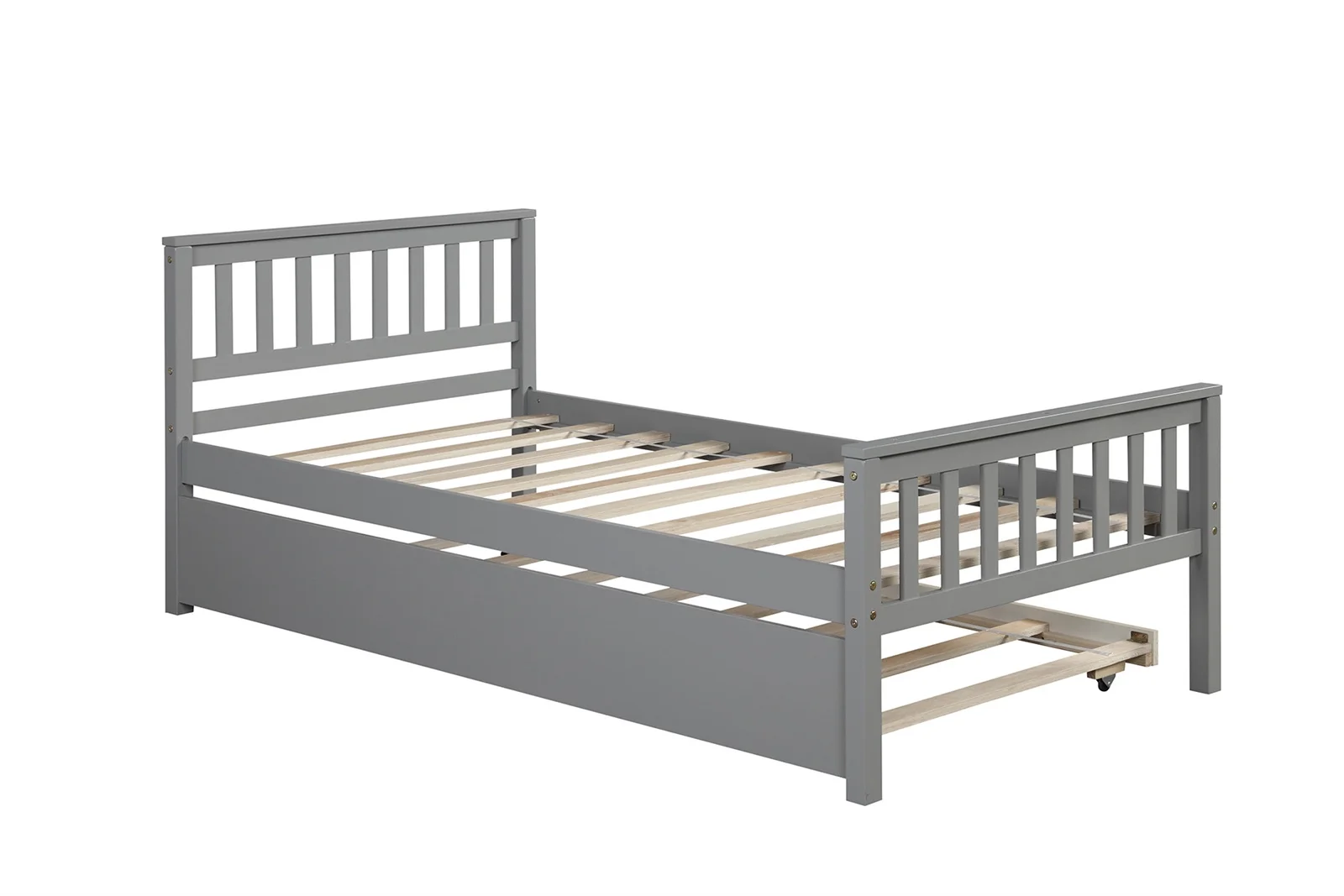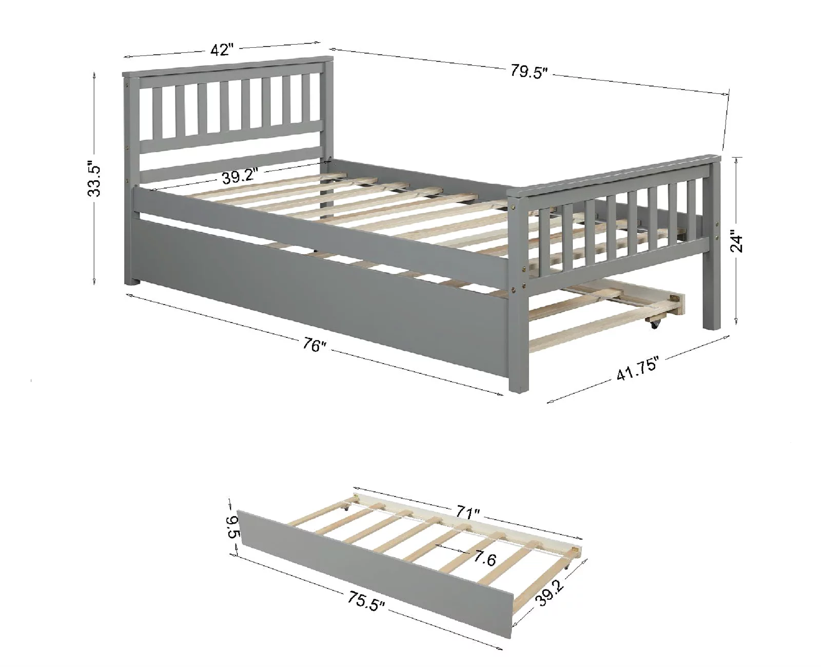 Twin Size Platform Bed with Trundle, Twin Bed Frame with Headboard and Footboard for Bedroom, Grey