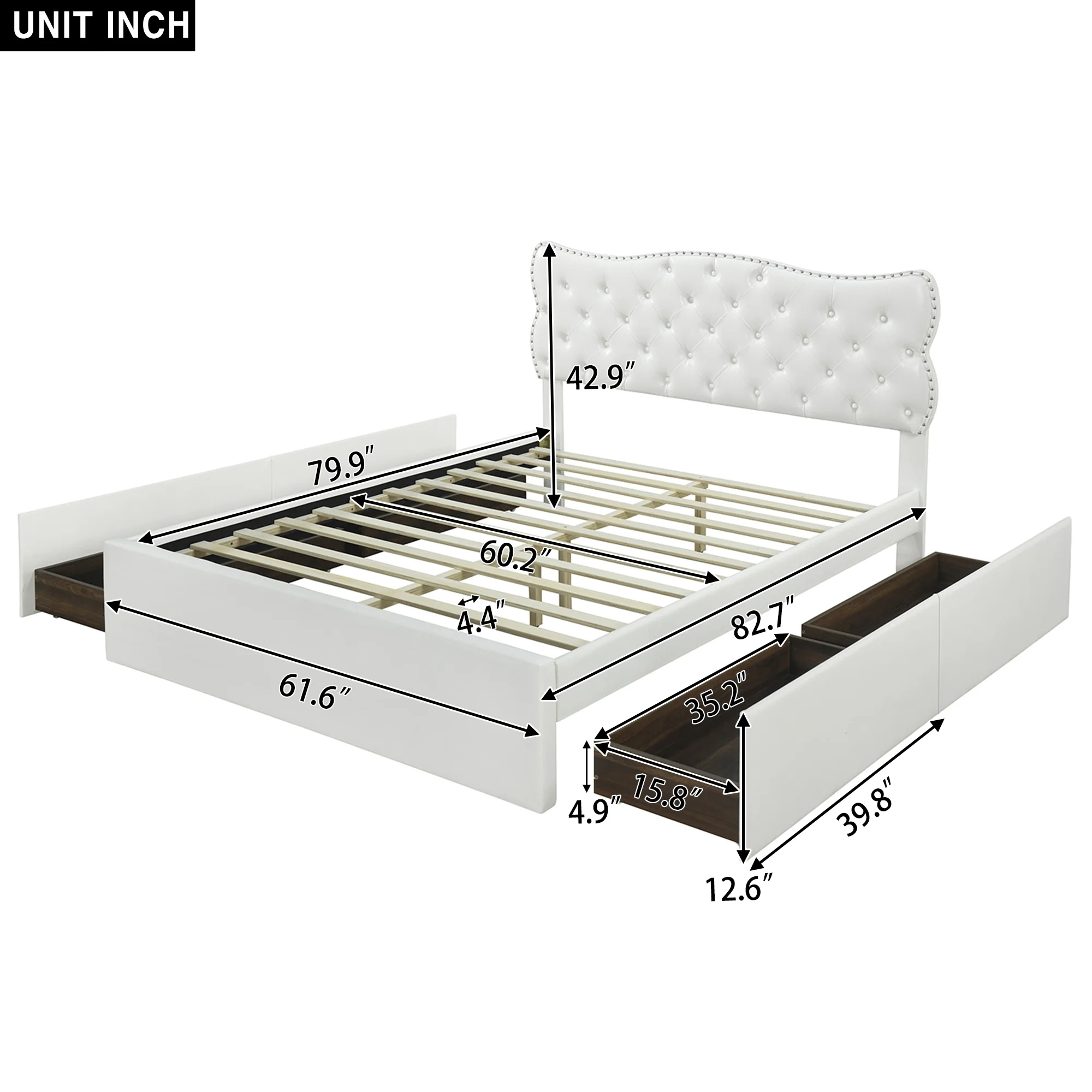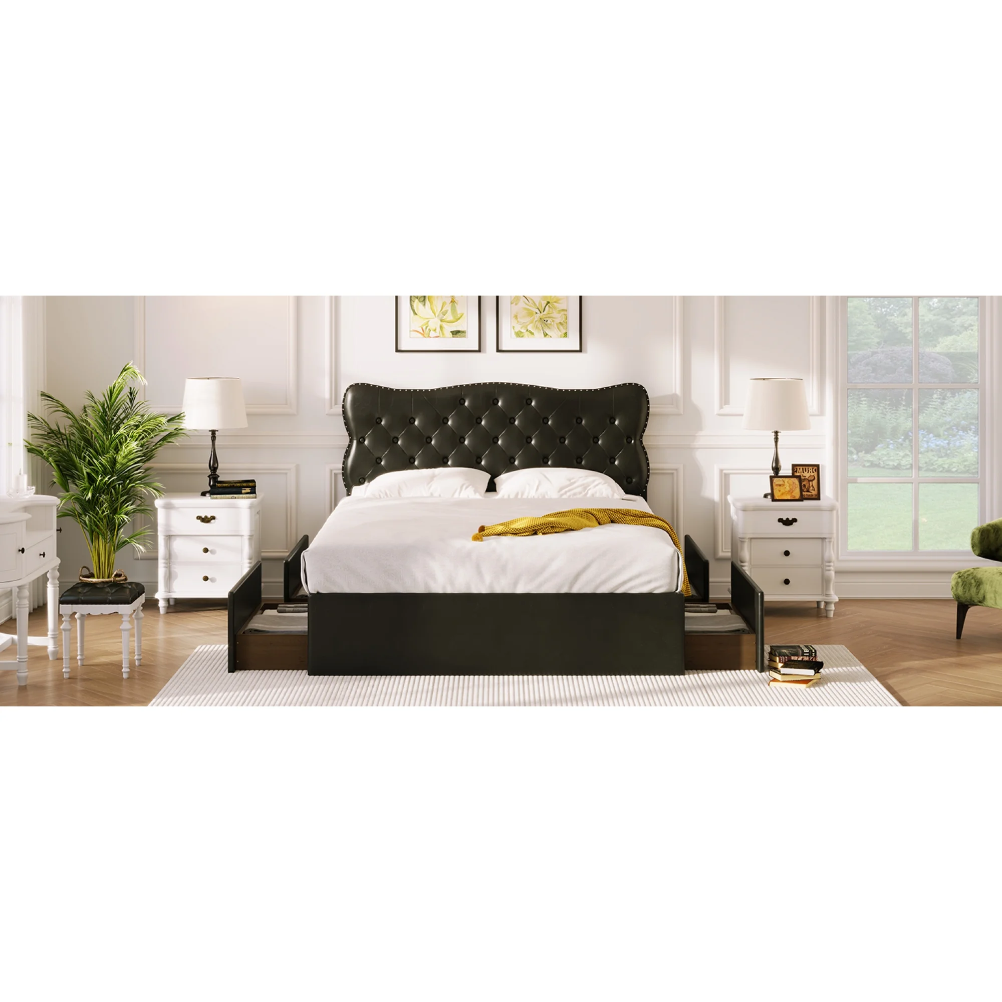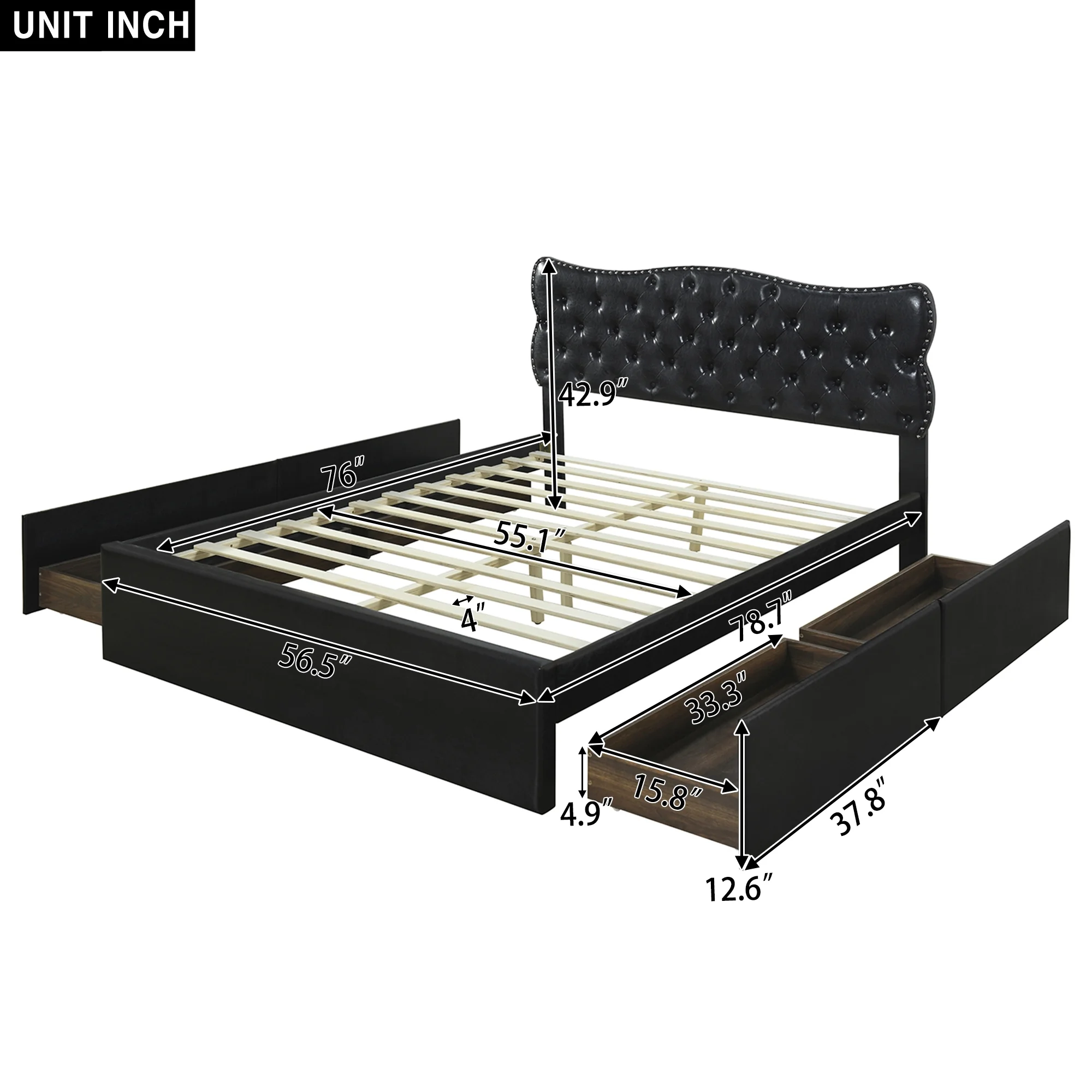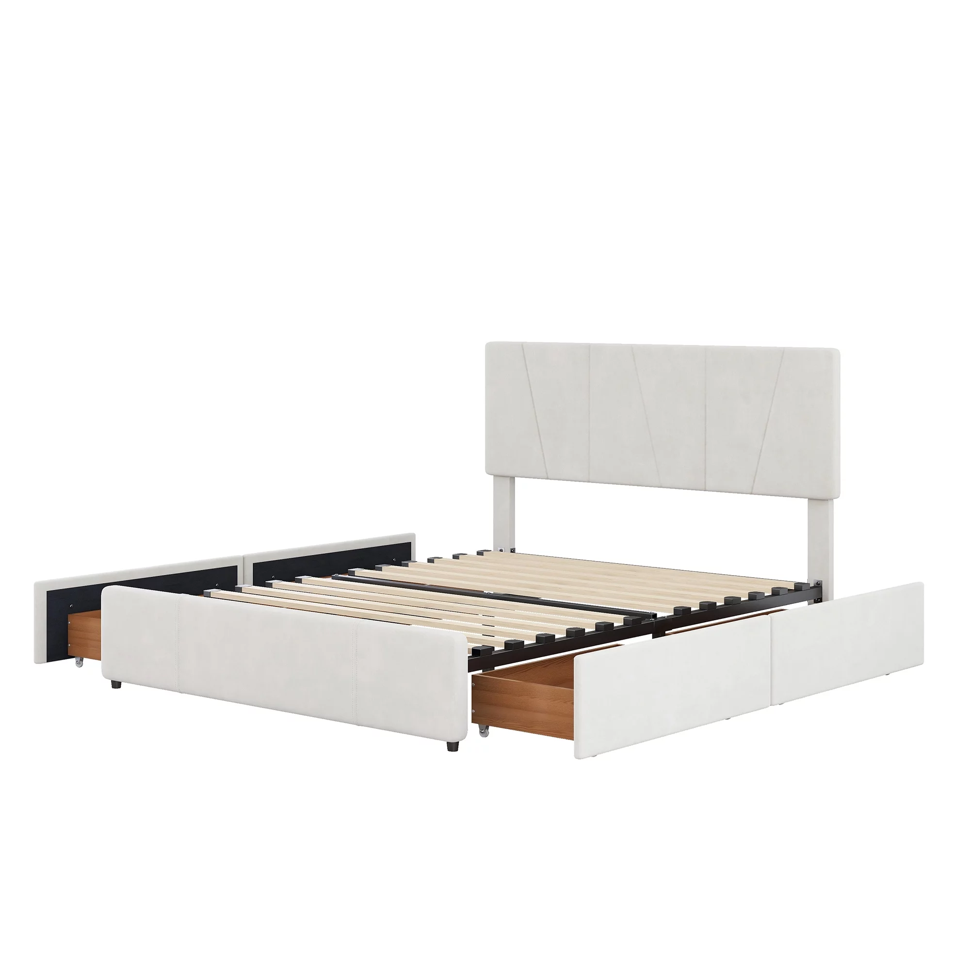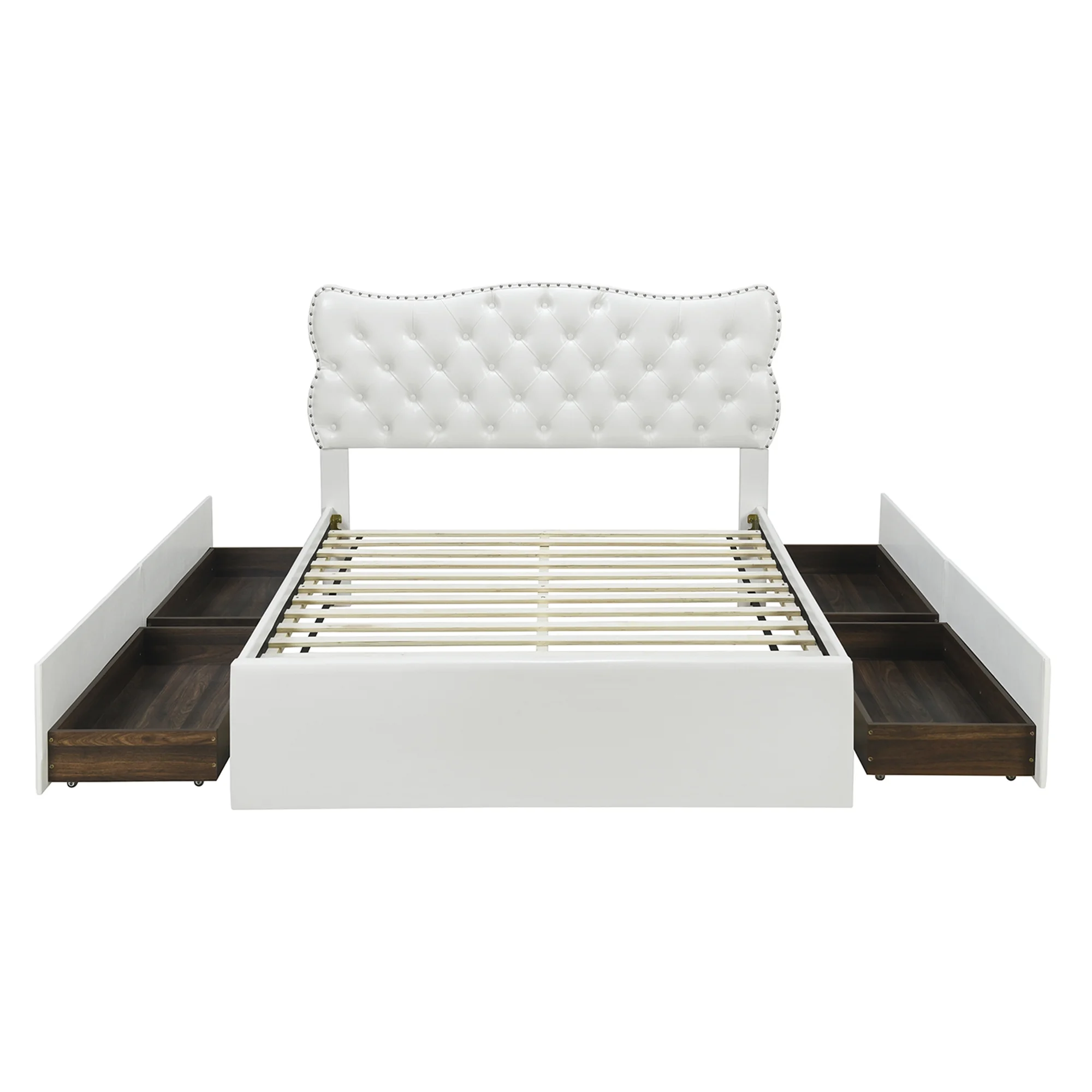 King Size Wooden Platform Bed with Four Storage Drawers and Support Legs