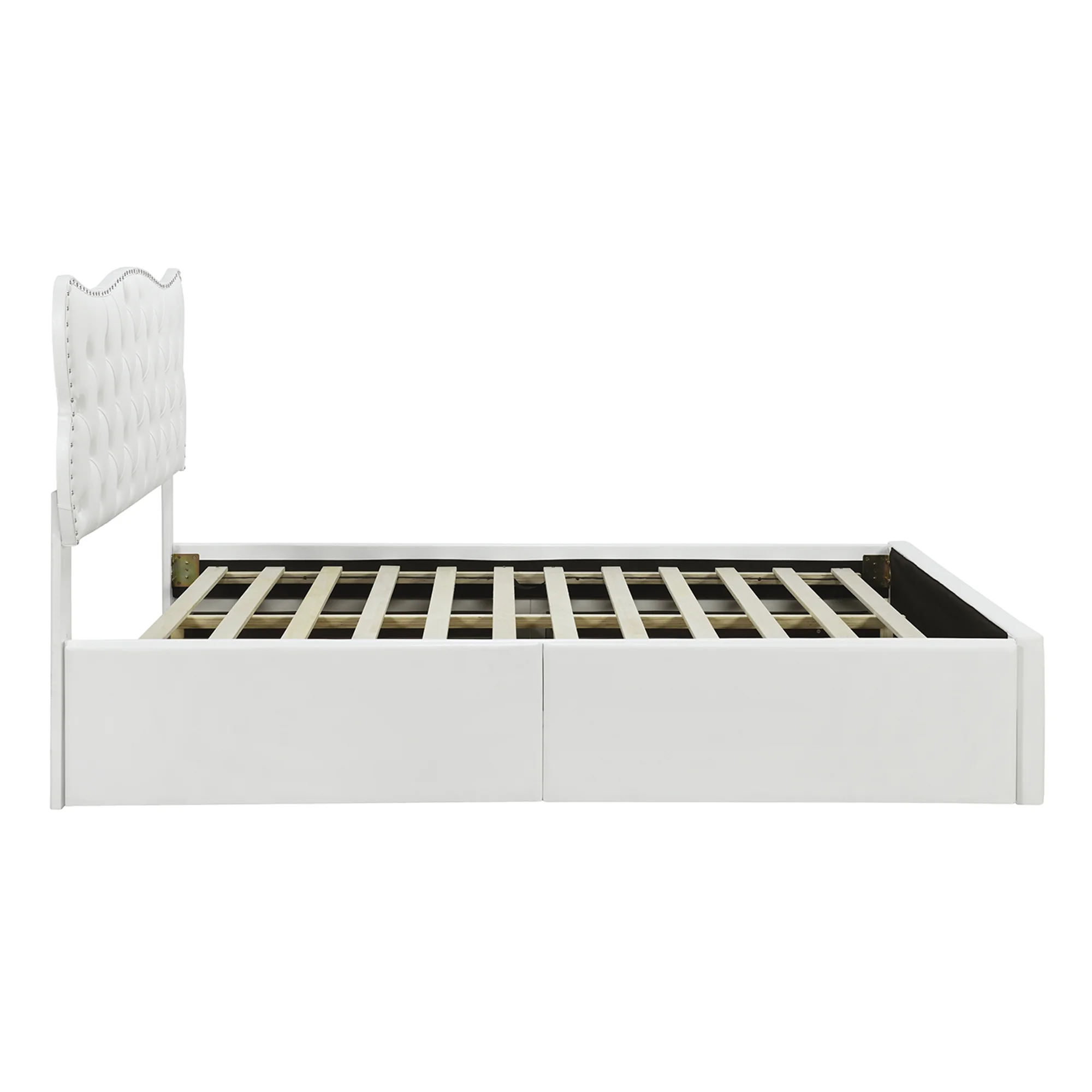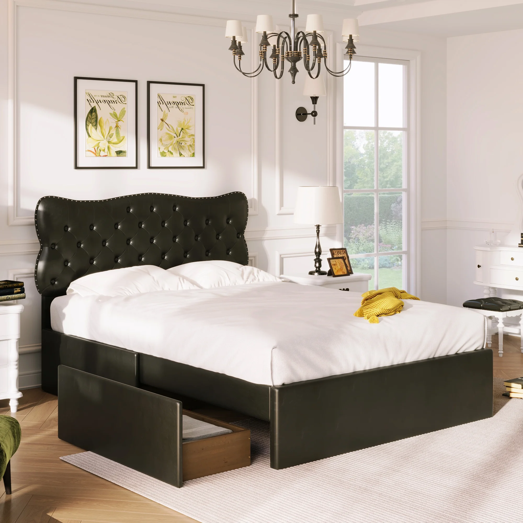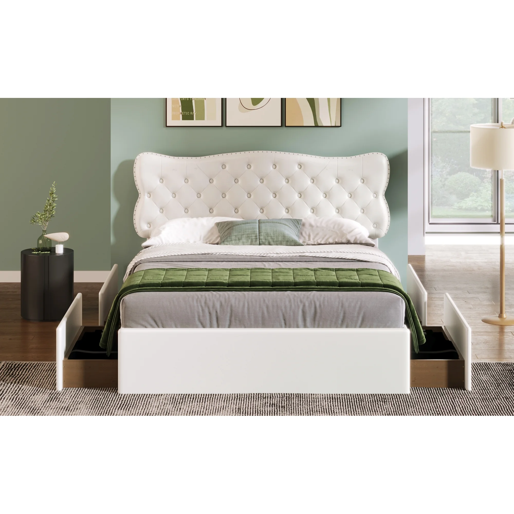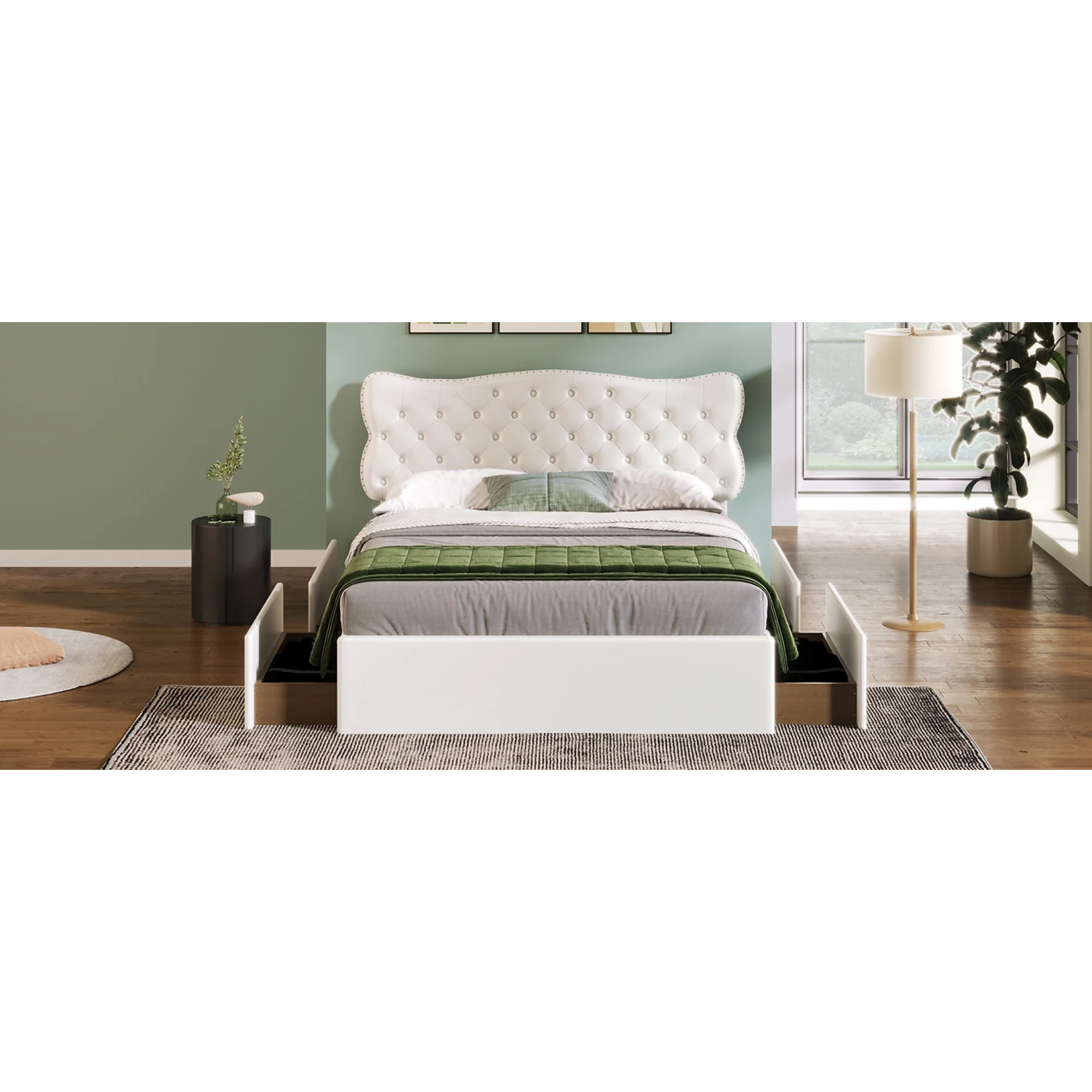 King Size Wooden Platform Bed with Four Storage Drawers and Support Legs