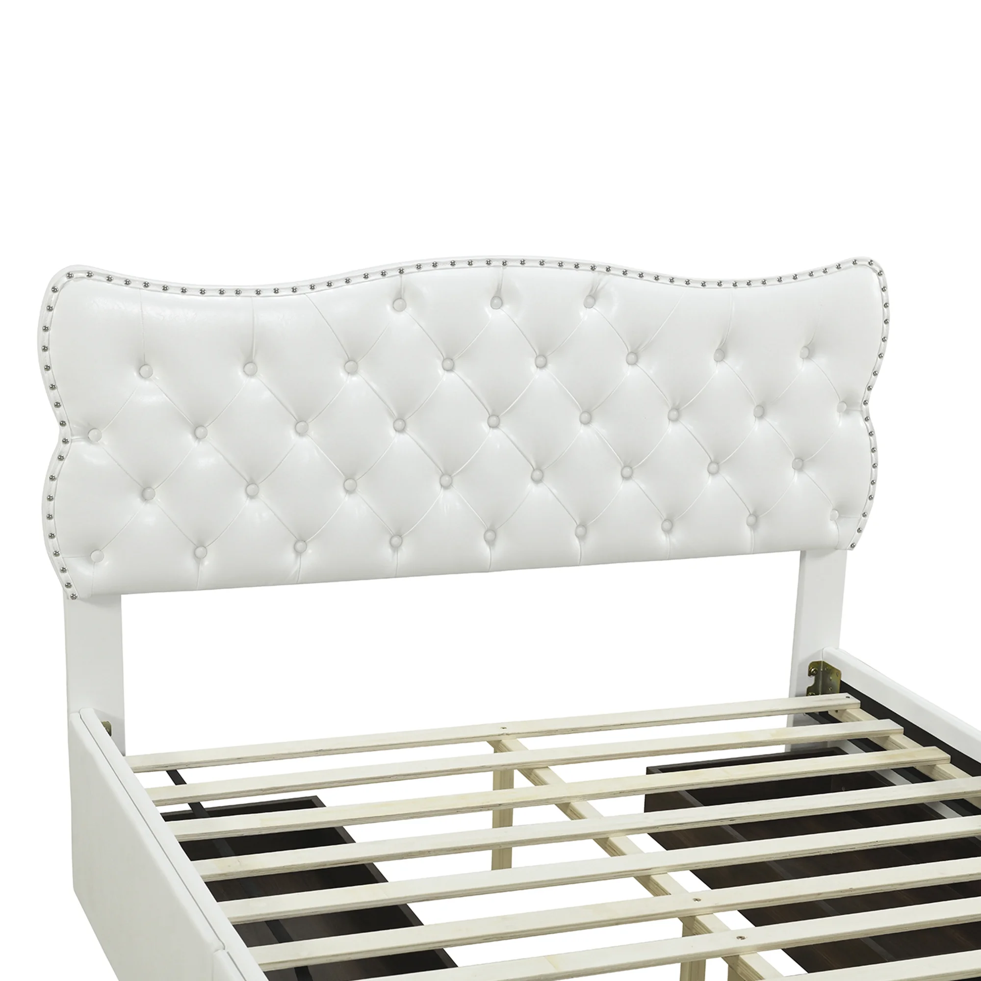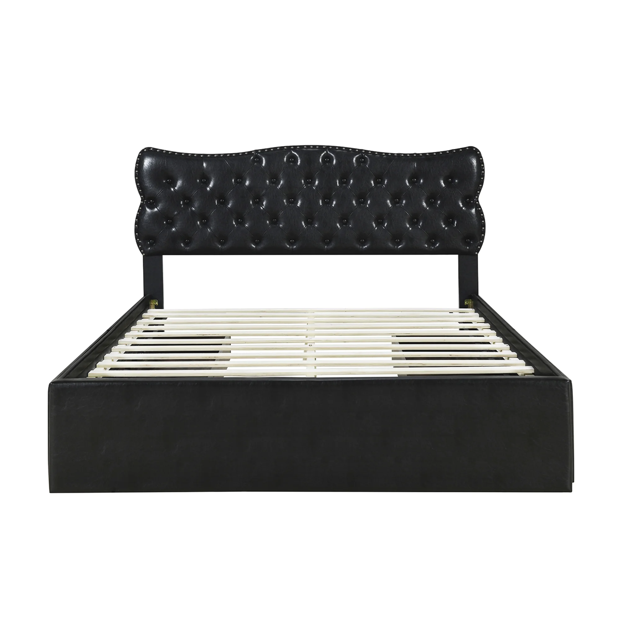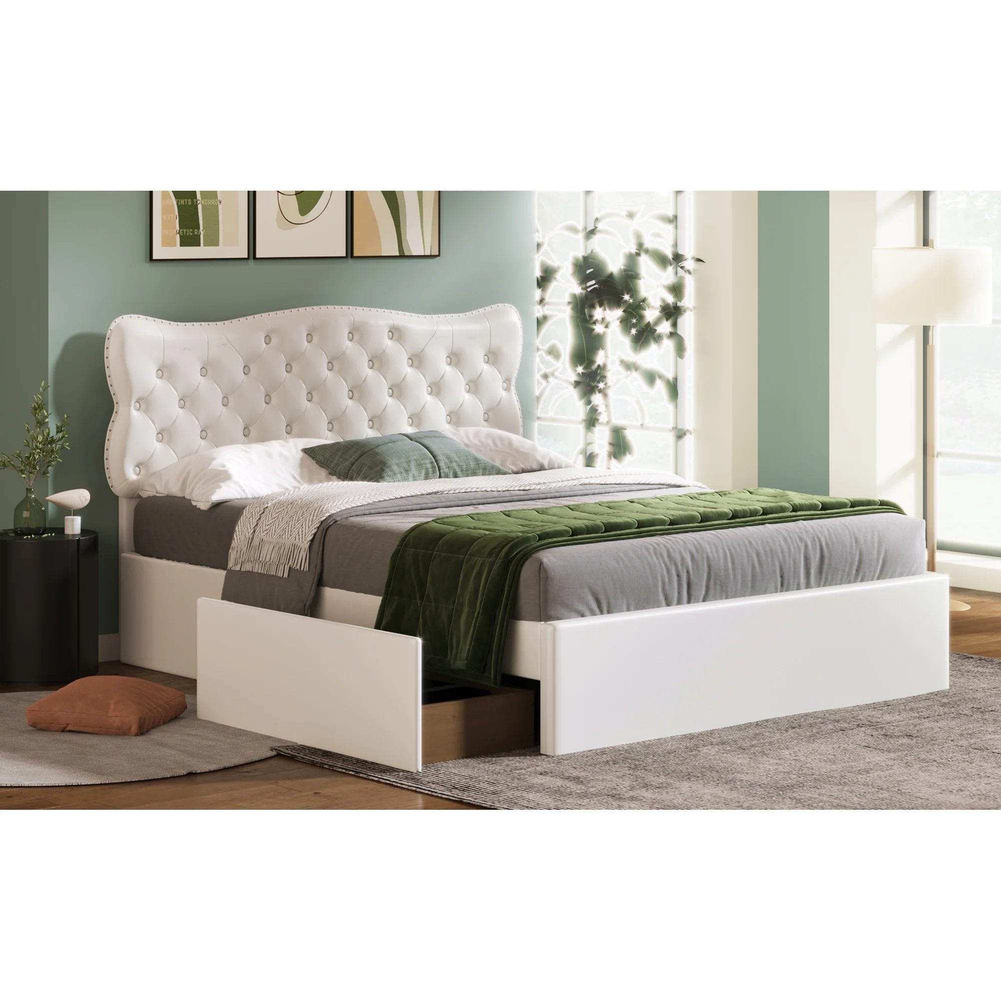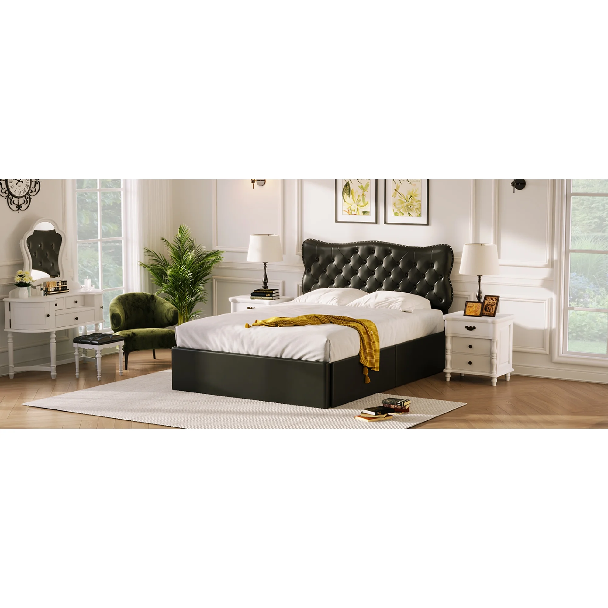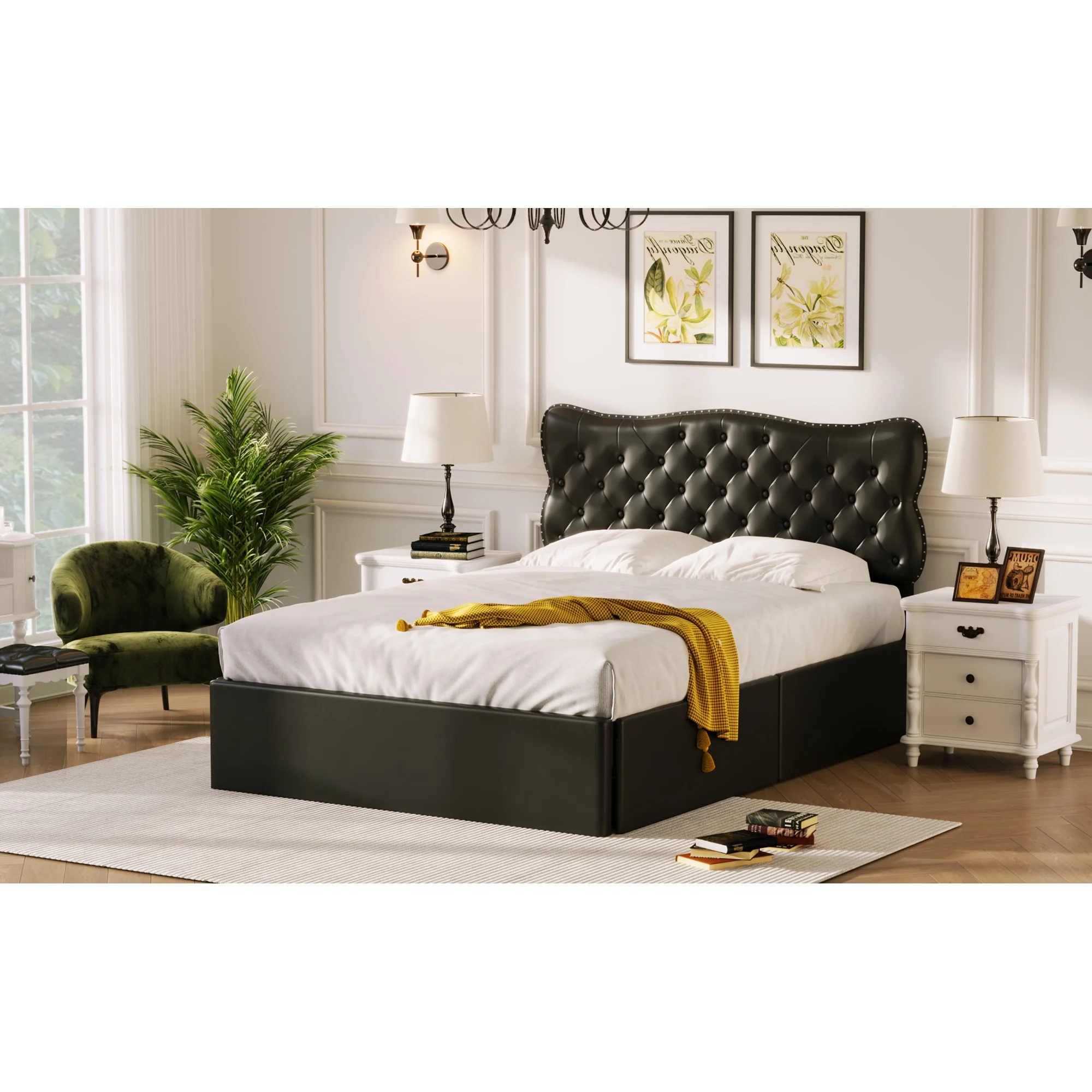 King Size Wooden Platform Bed with Four Storage Drawers and Support Legs