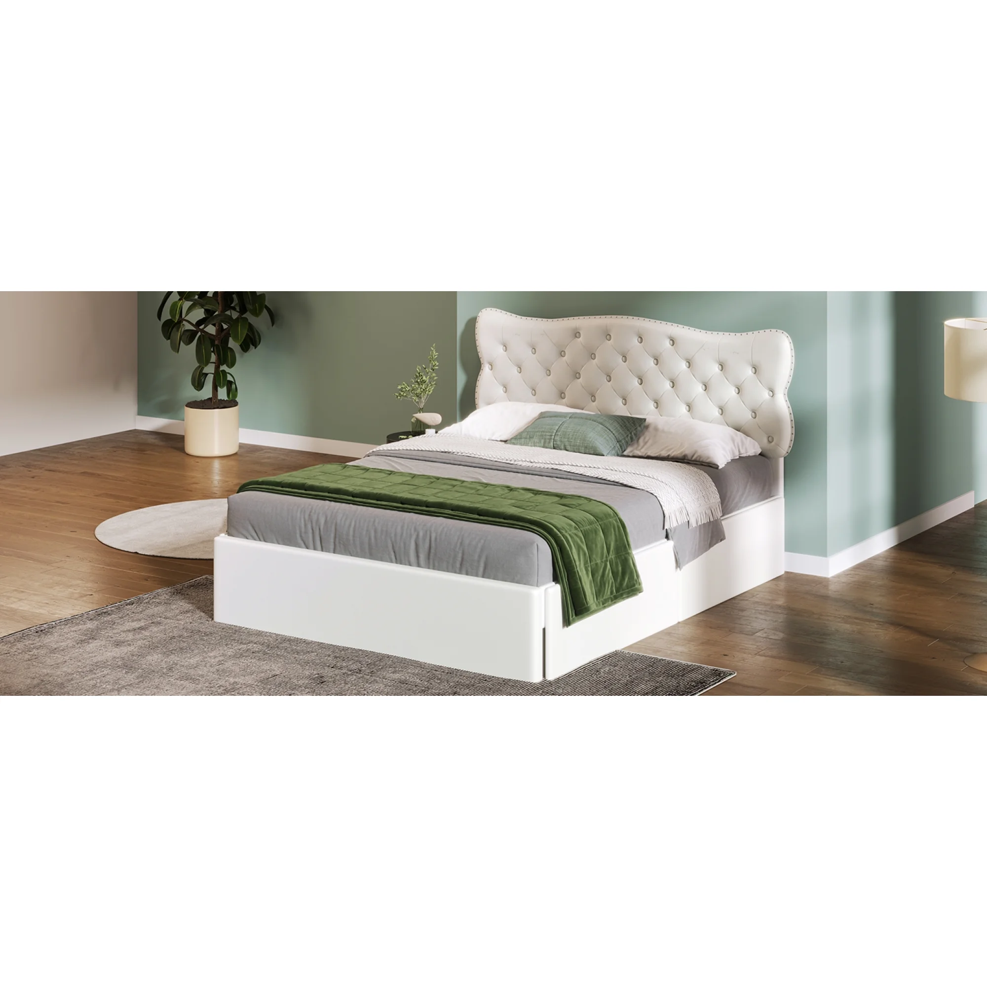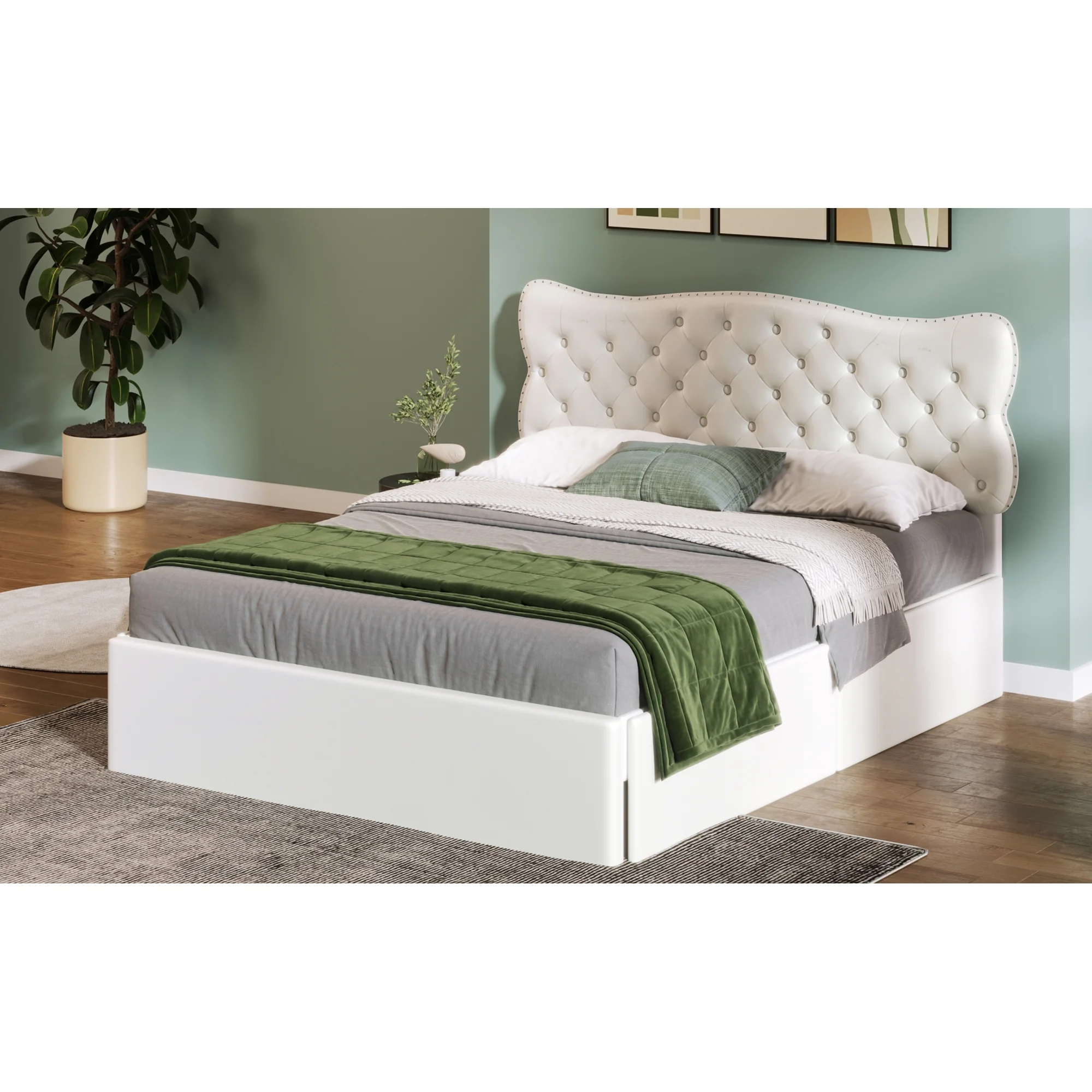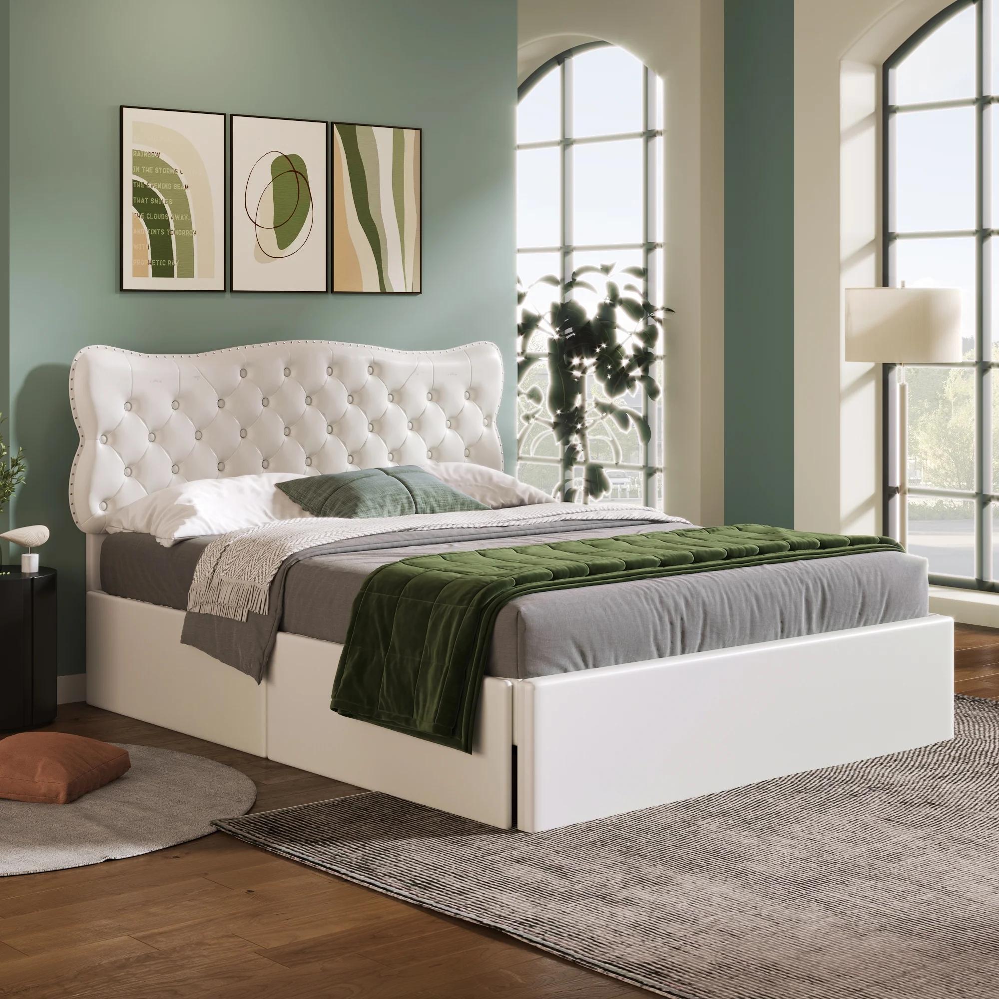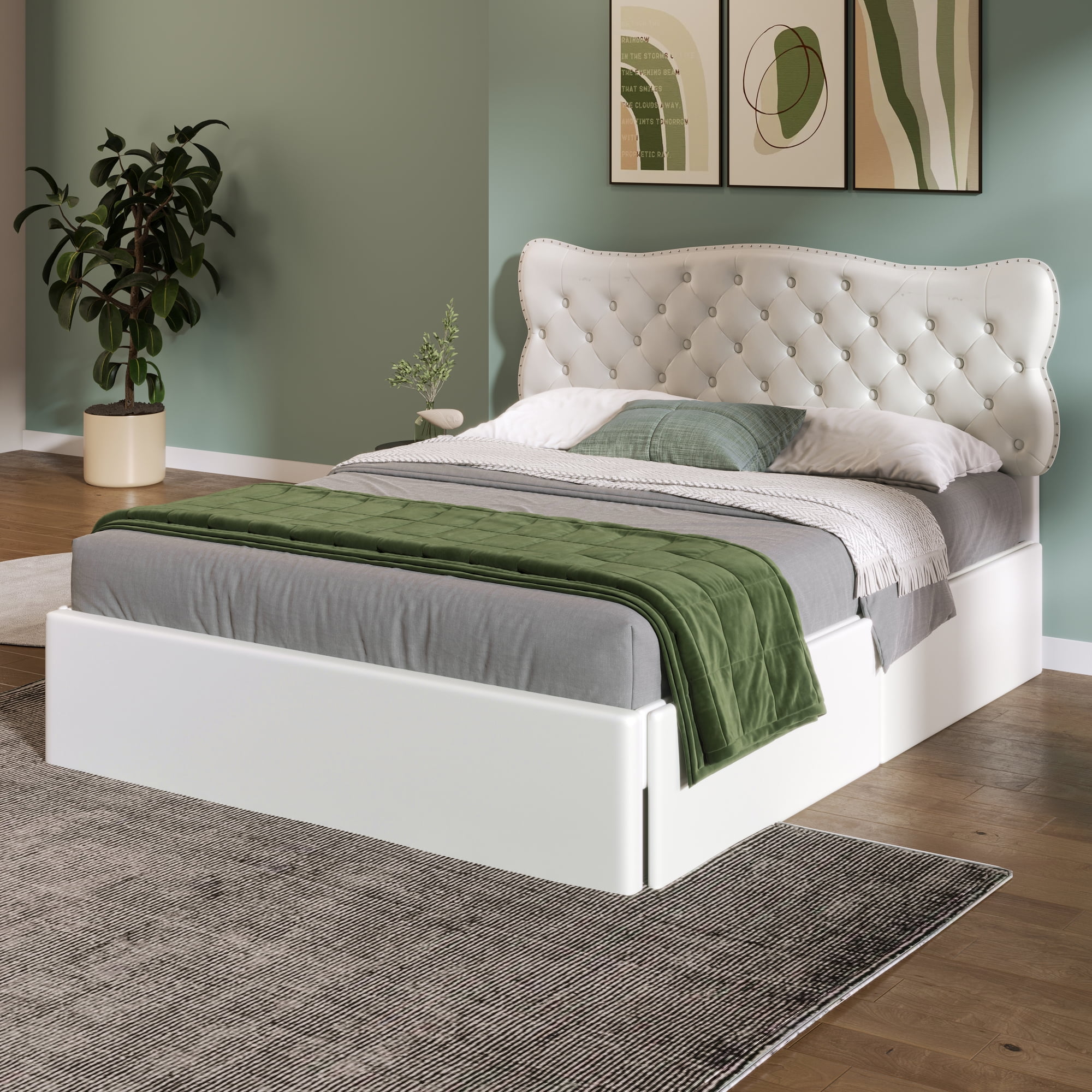 King Size Upholstery Platform Bed with Four Storage Drawers, Cosymart Support Legs, Grey