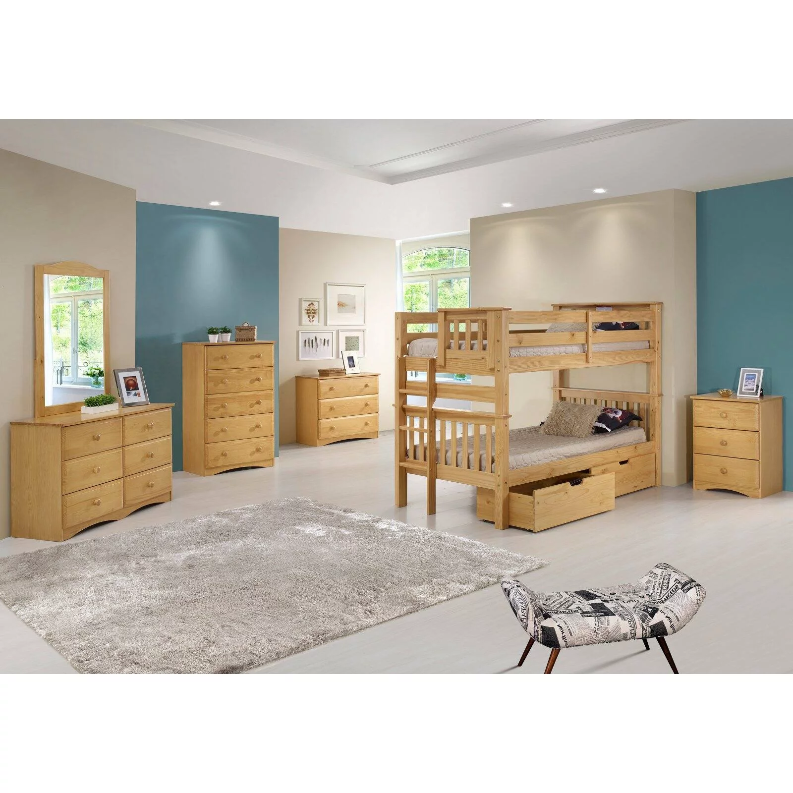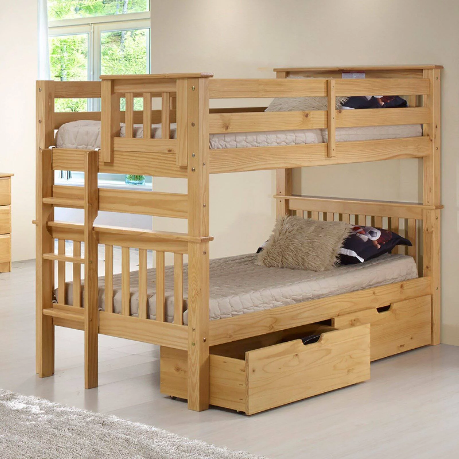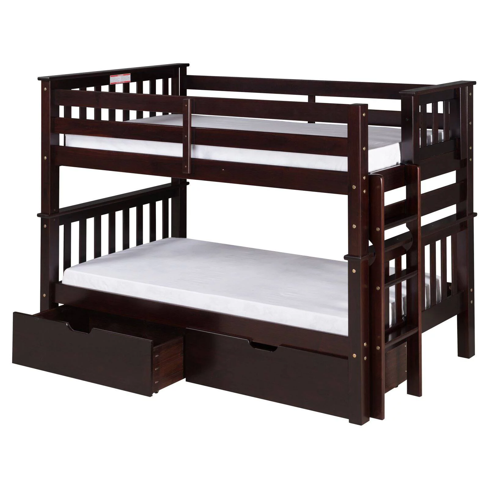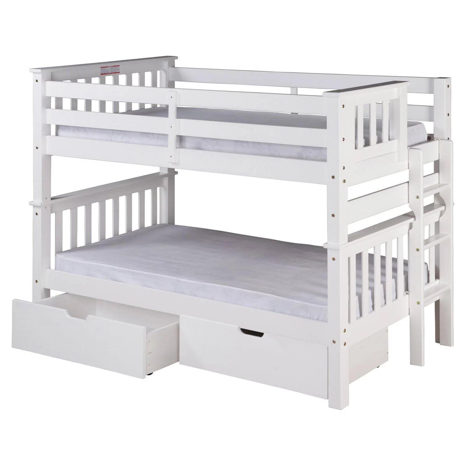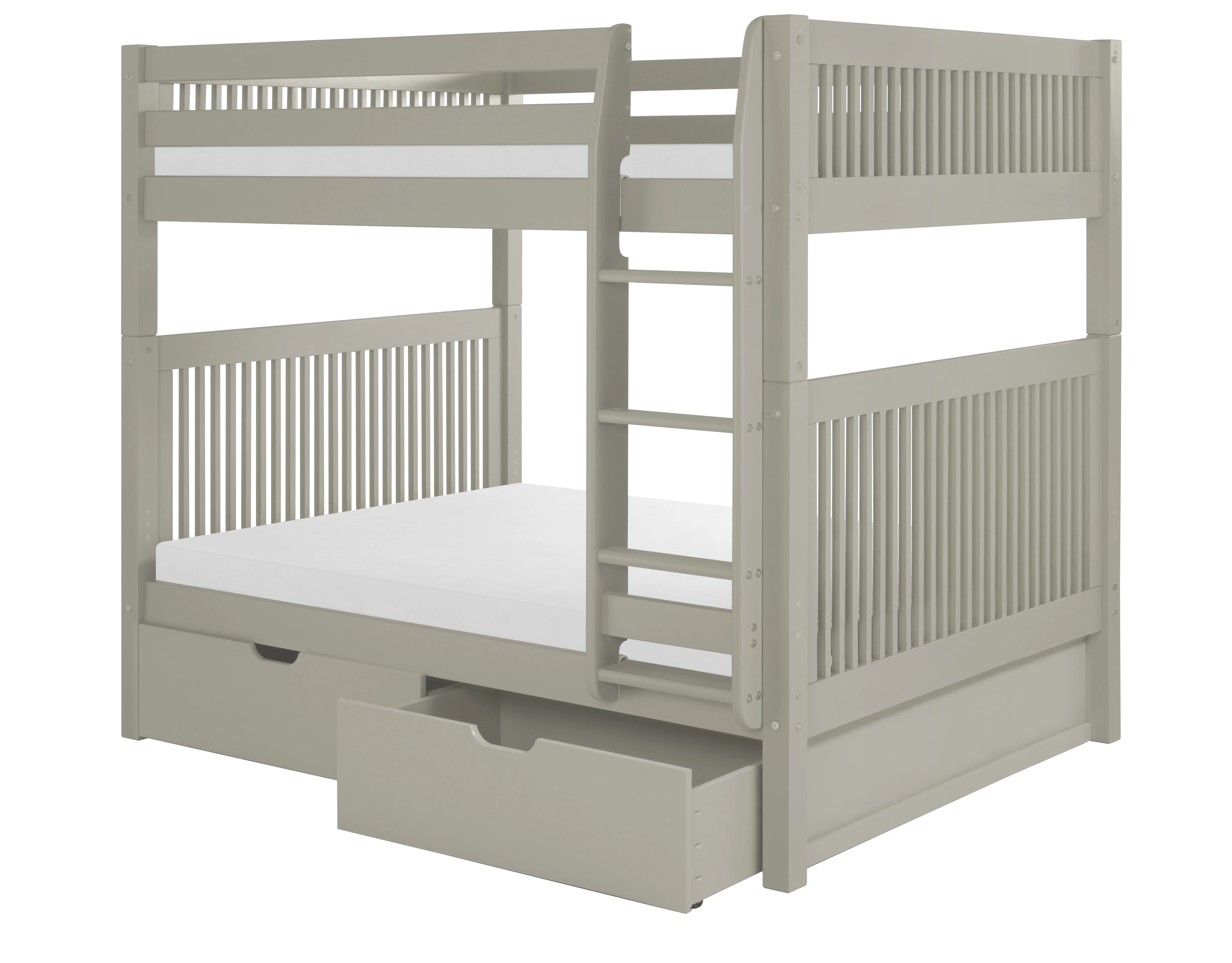 Santa Fe Mission Low Bunk Bed Twin over Twin - Bed End Ladder - Multiple Finishes - with Under Bed Drawers
