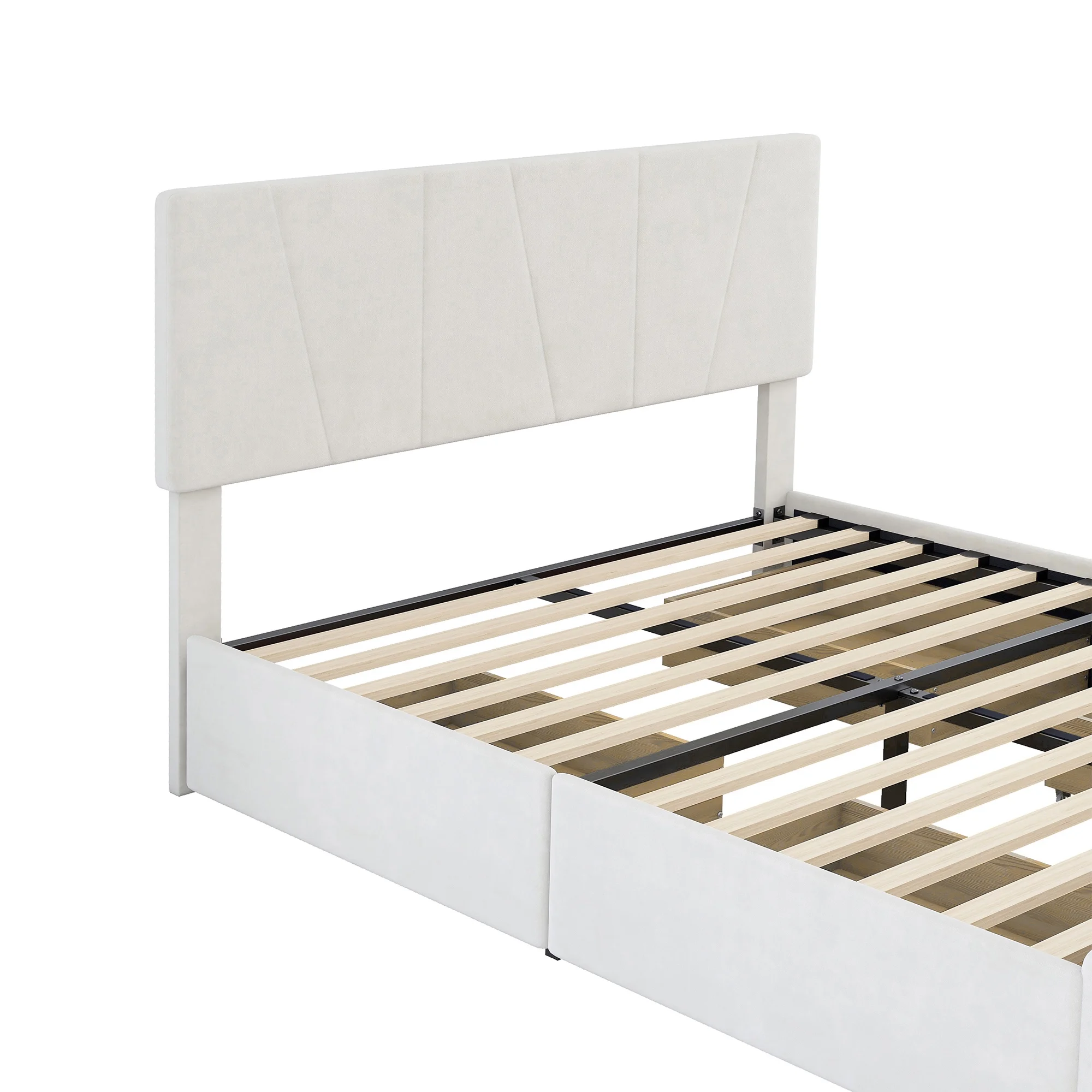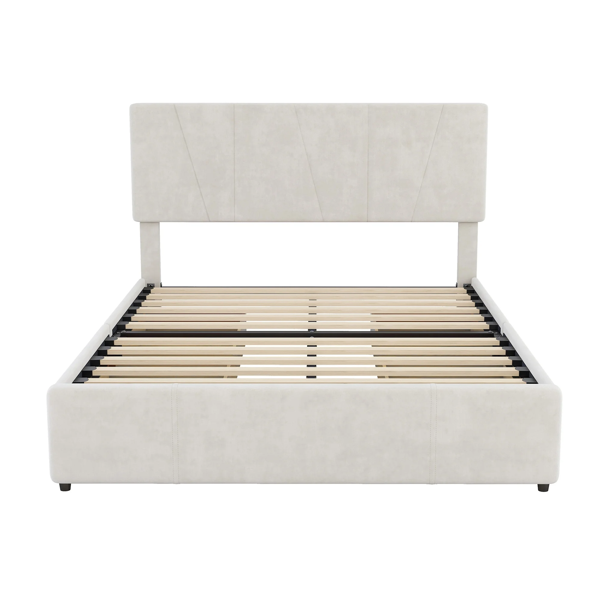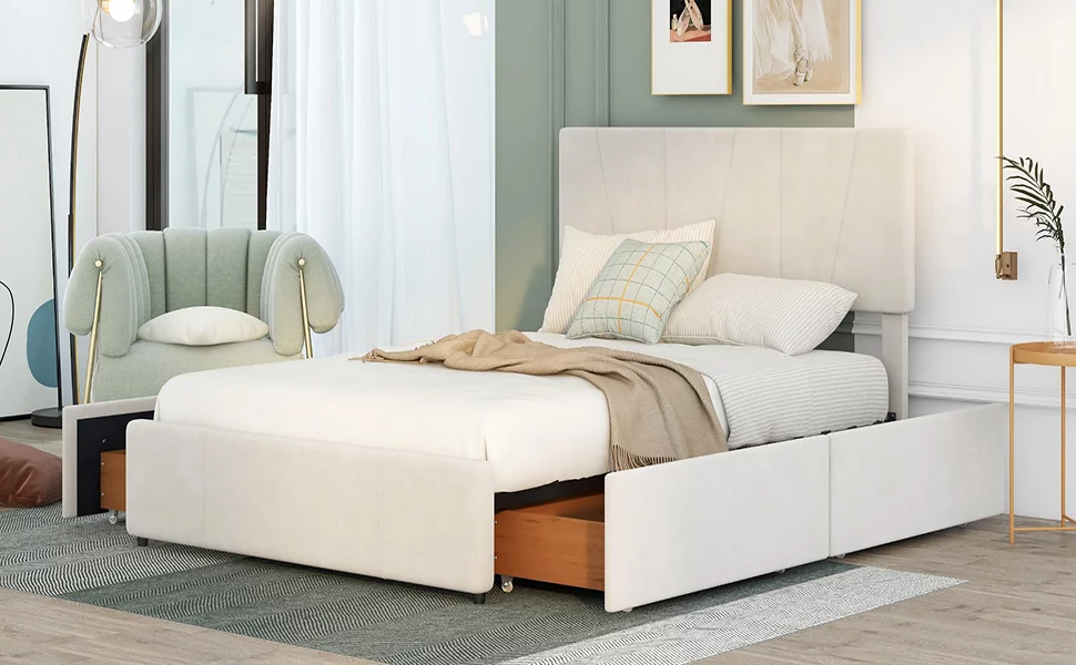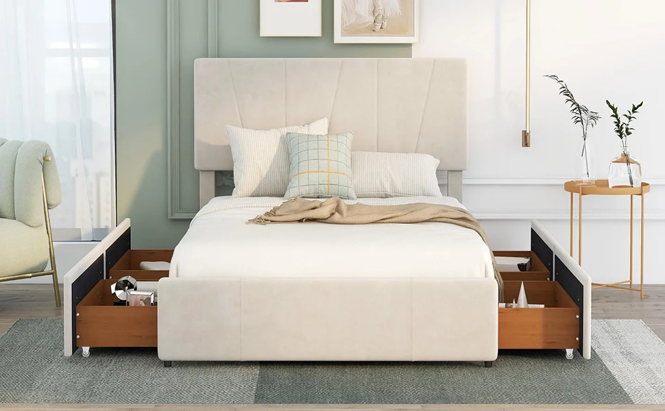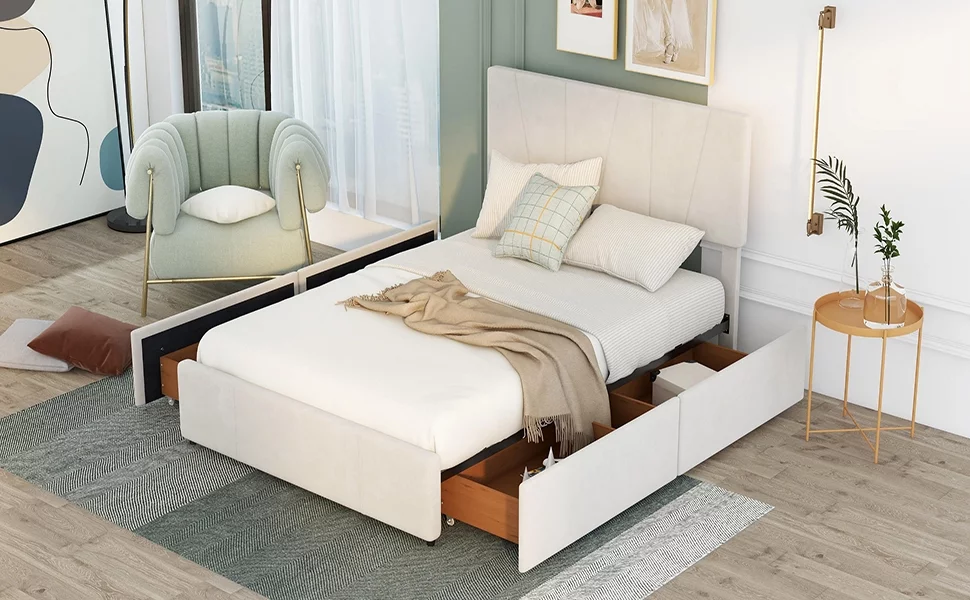 CoSoTower Queen Size Upholstery Platform Bed with Four Drawers On Two Sides, Adjustable Headboard, Beige