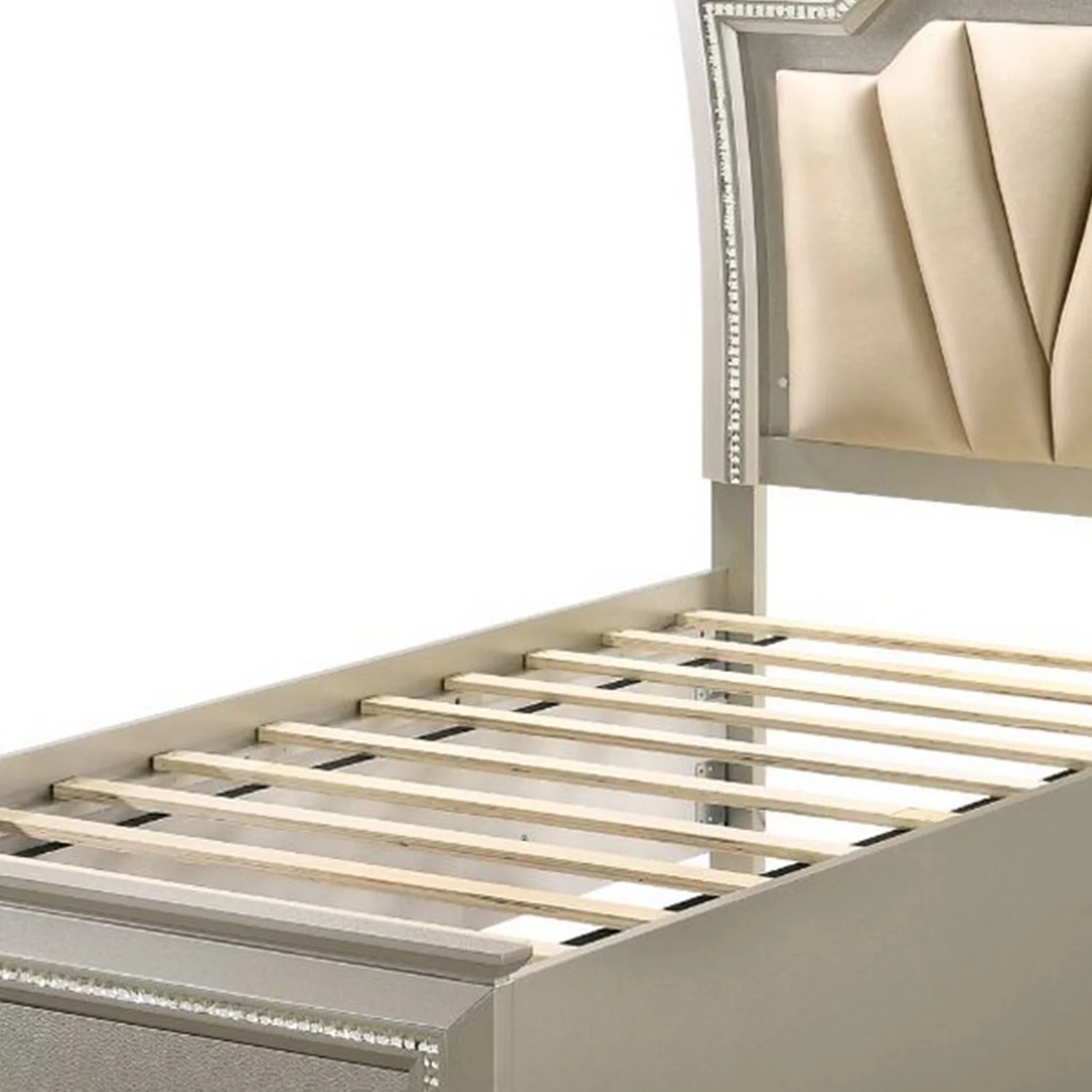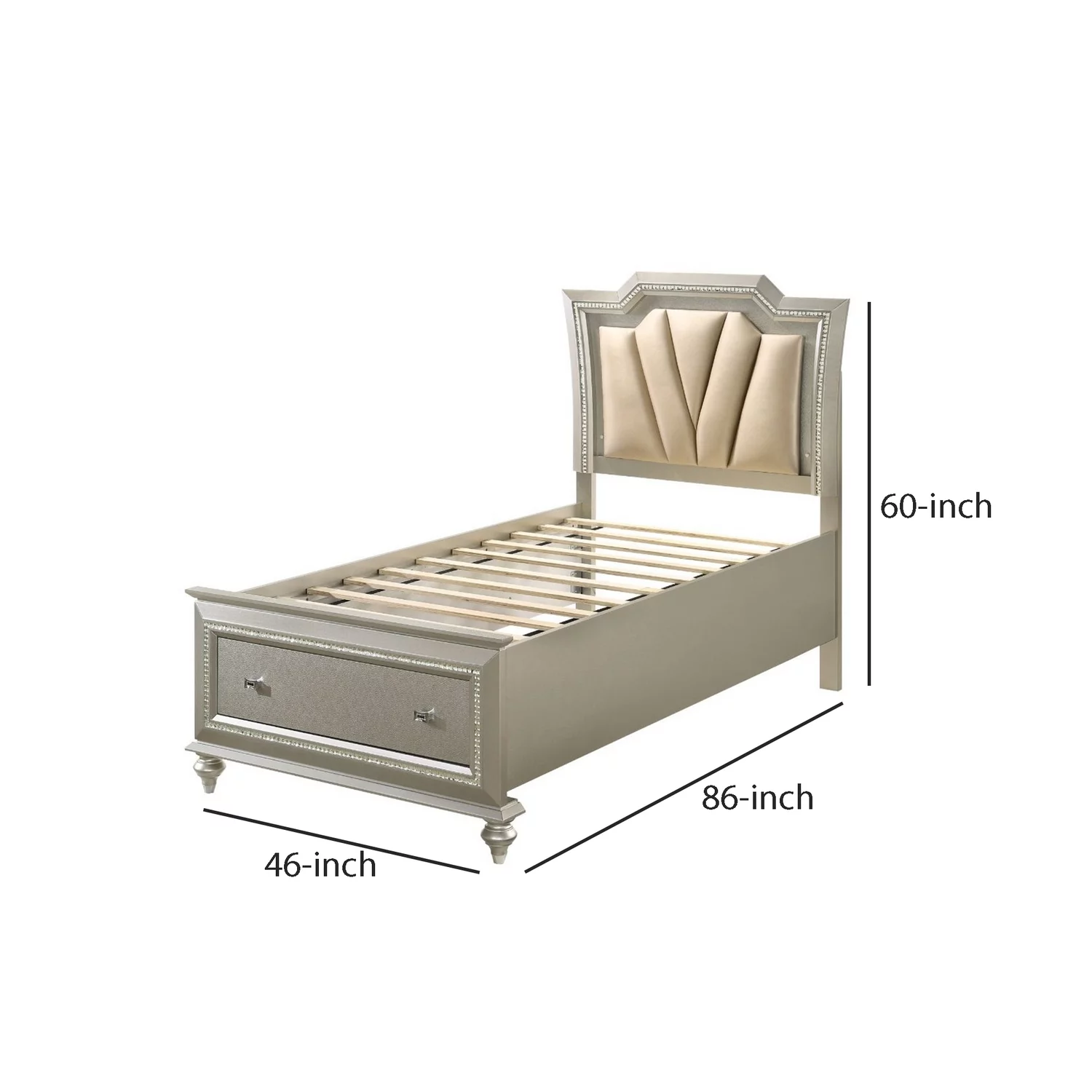 Benjara Twin Bed with 1 Drawer and Padded Headboard, Champagne Gold