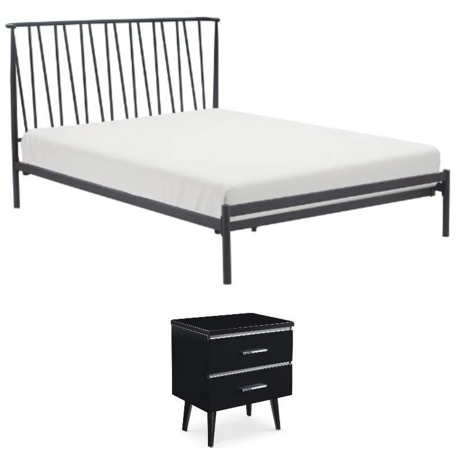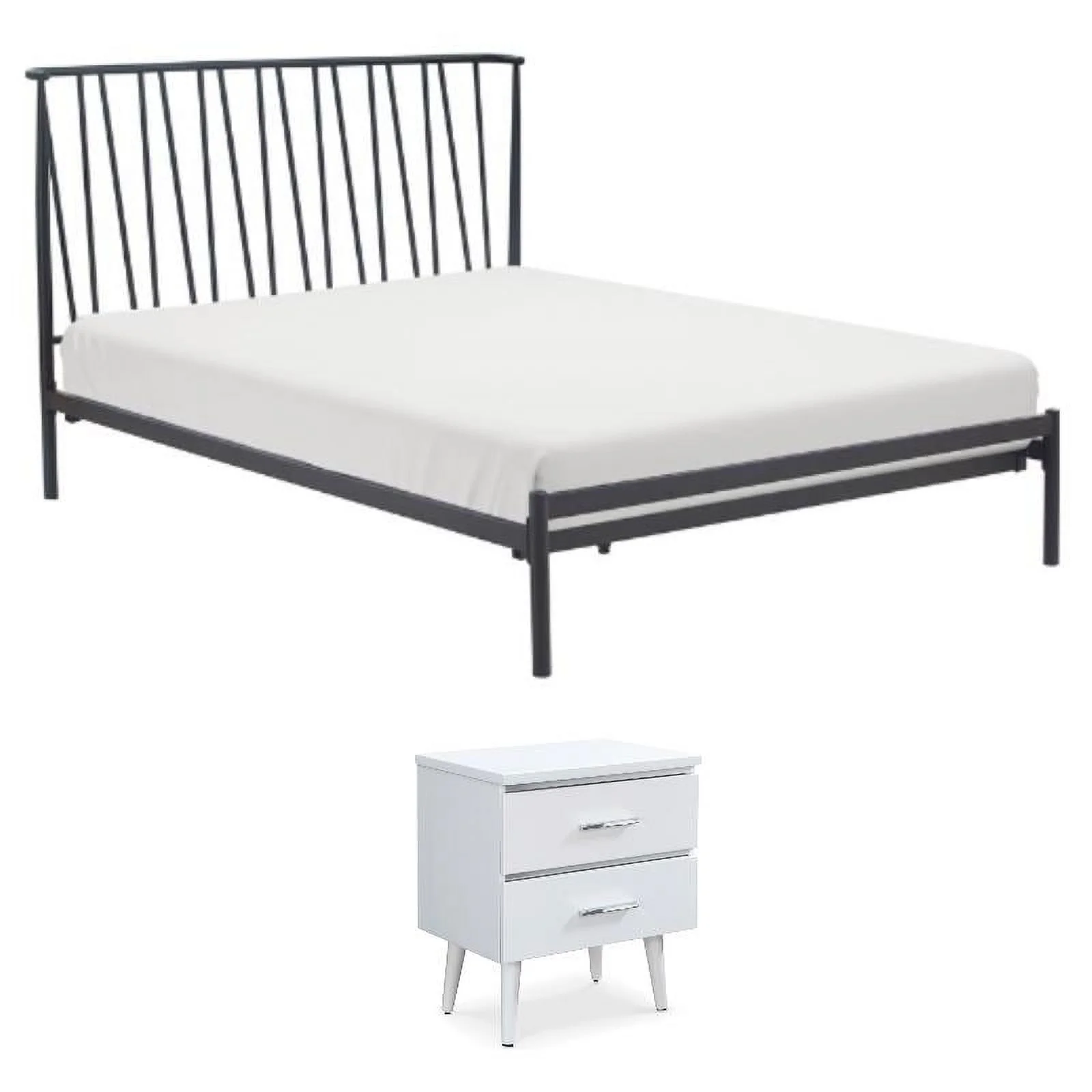 Home Square 2-Piece Set with Side Table and Metal King Bed in White & Black