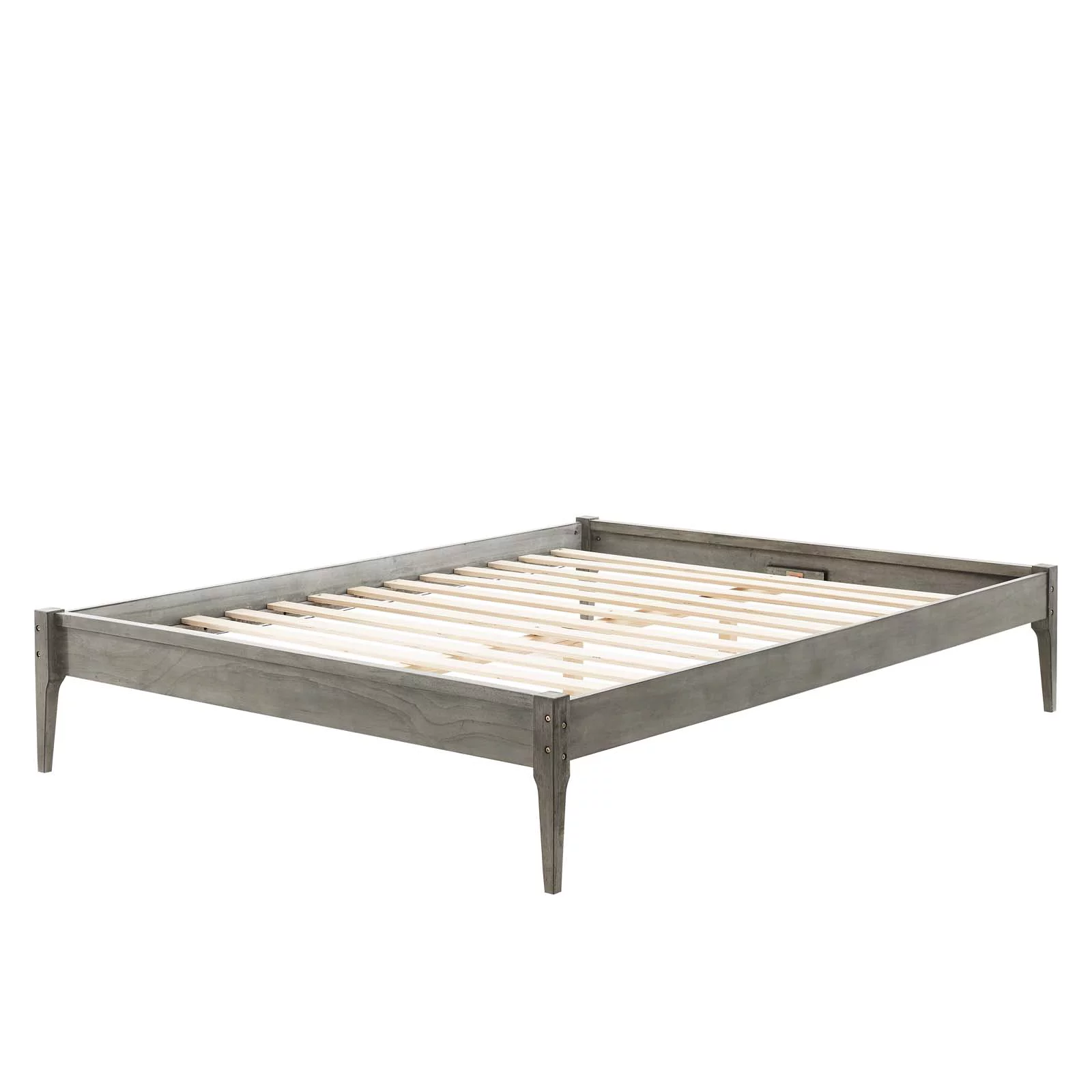 Platform Bed Frame, Queen Size, Wood, Grey Gray, Modern Contemporary Urban Design, Bedroom Master Guest Suite