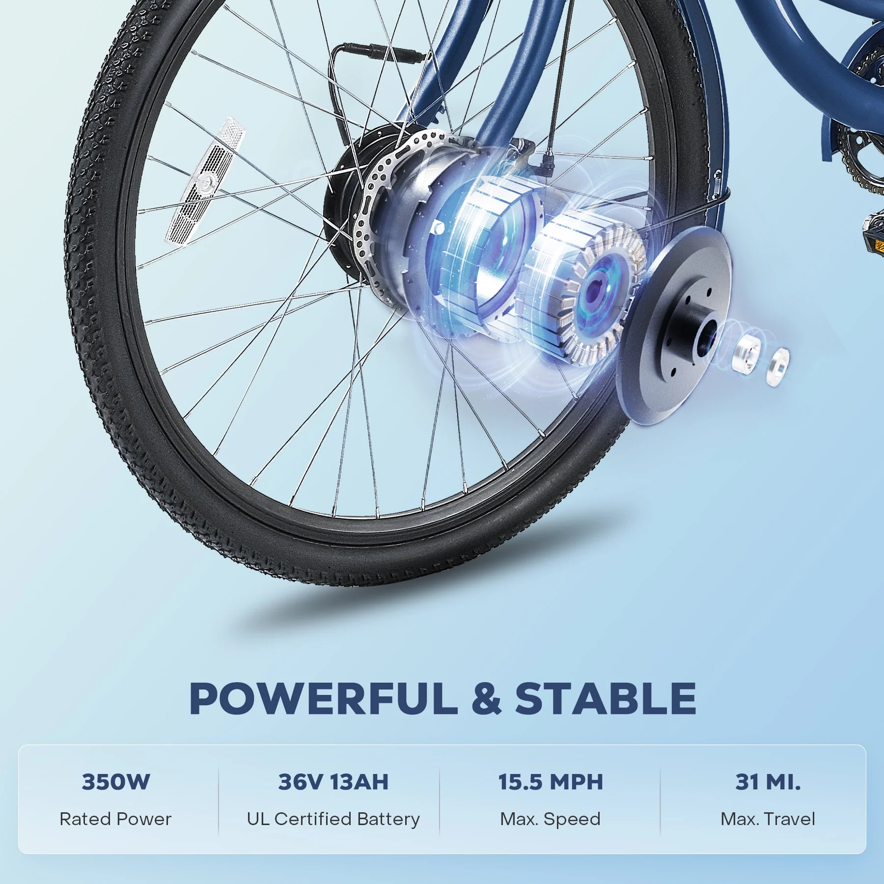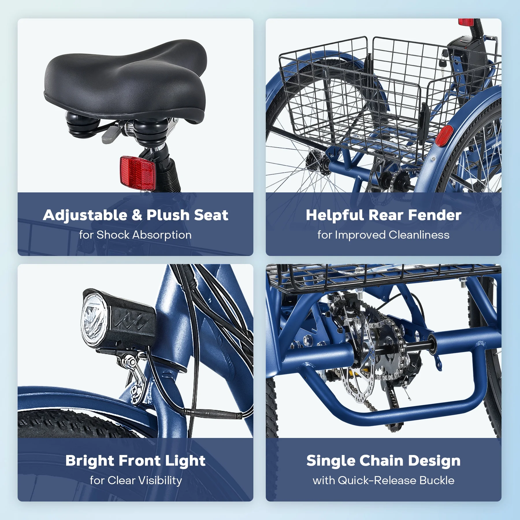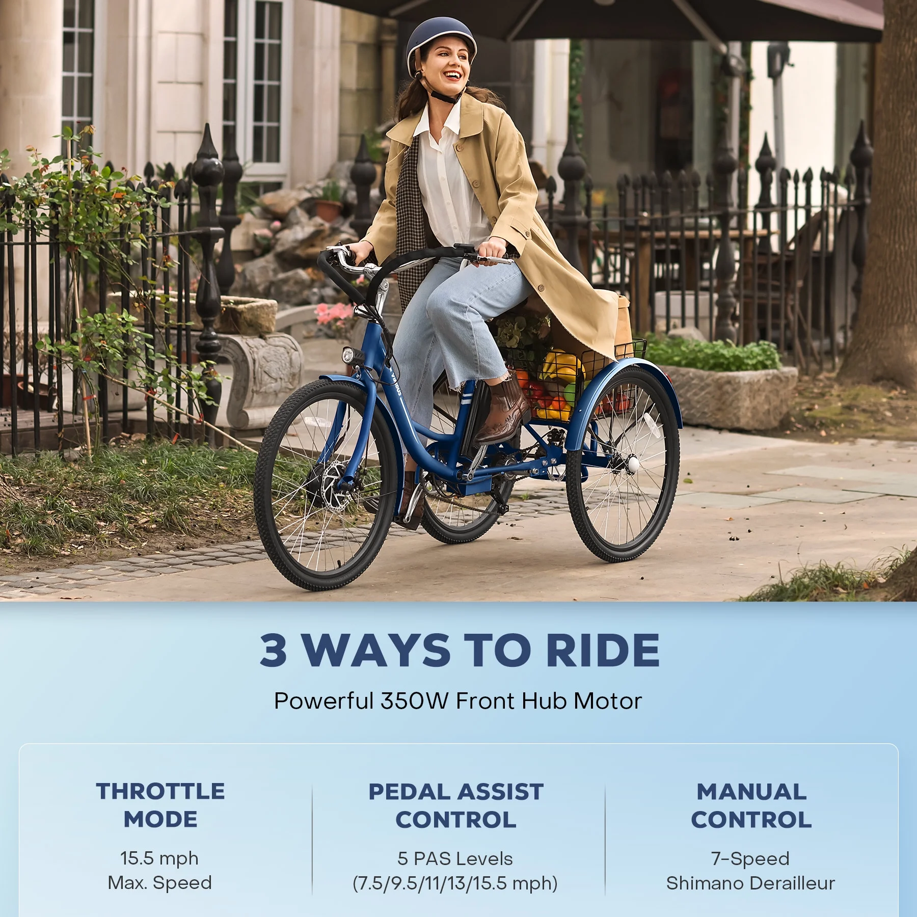 Viribus 26" Electric Tricycle for Adults with 7 Speeds 36V 13Ah Battery 350W Motor UL 2271 Blue