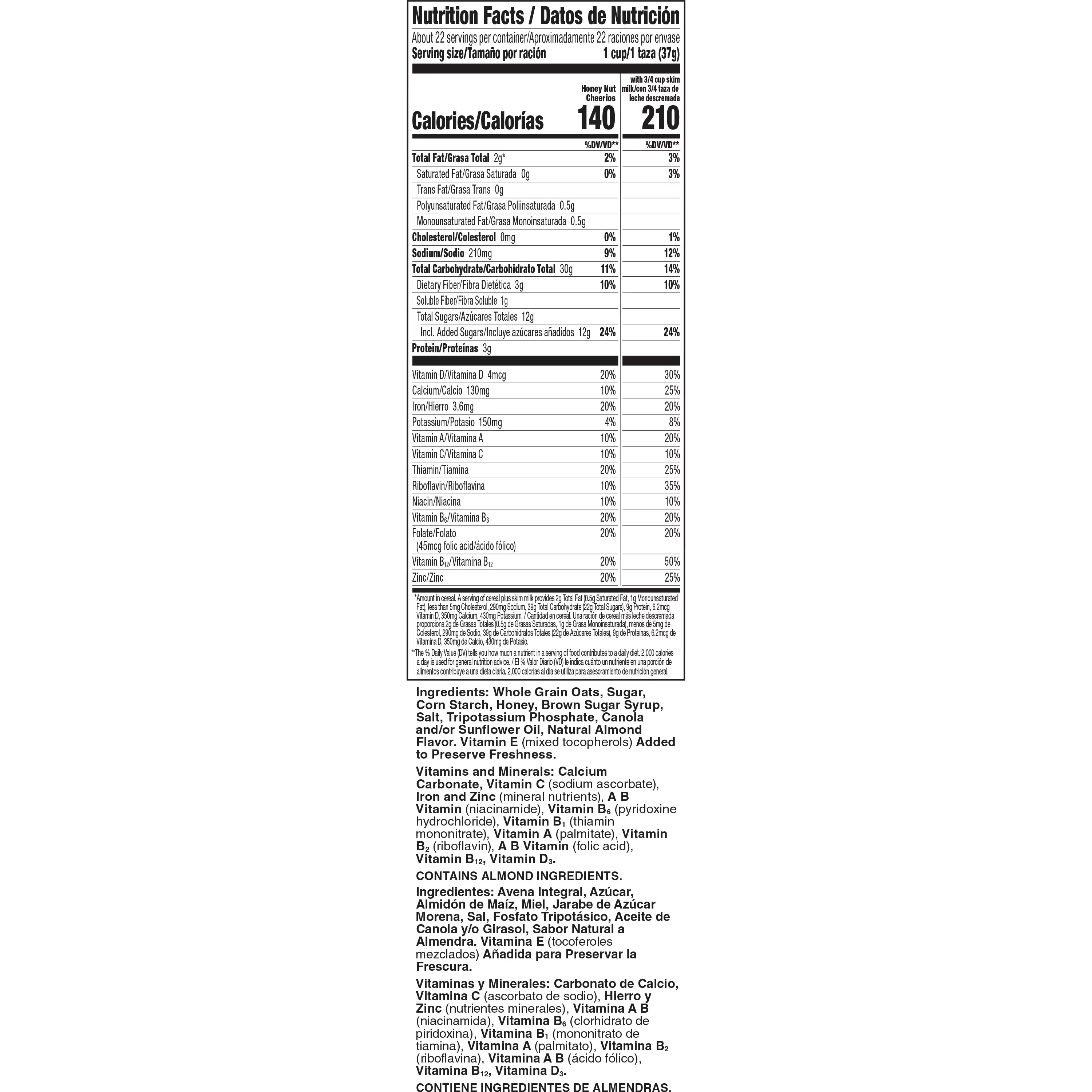 (2 pack) Cheerios Oat Crunch Almond Oat Breakfast Cereal, Family Size, 24 oz