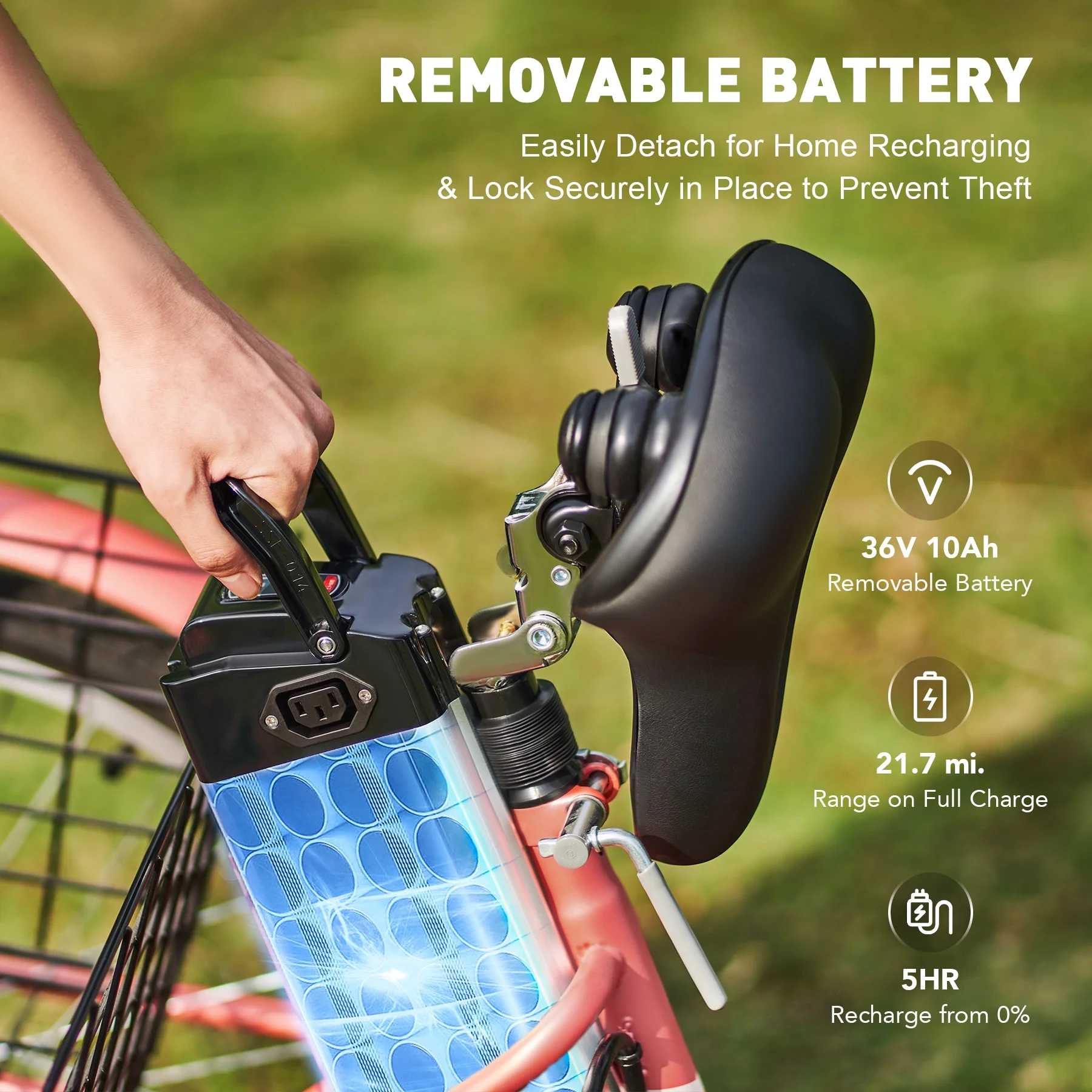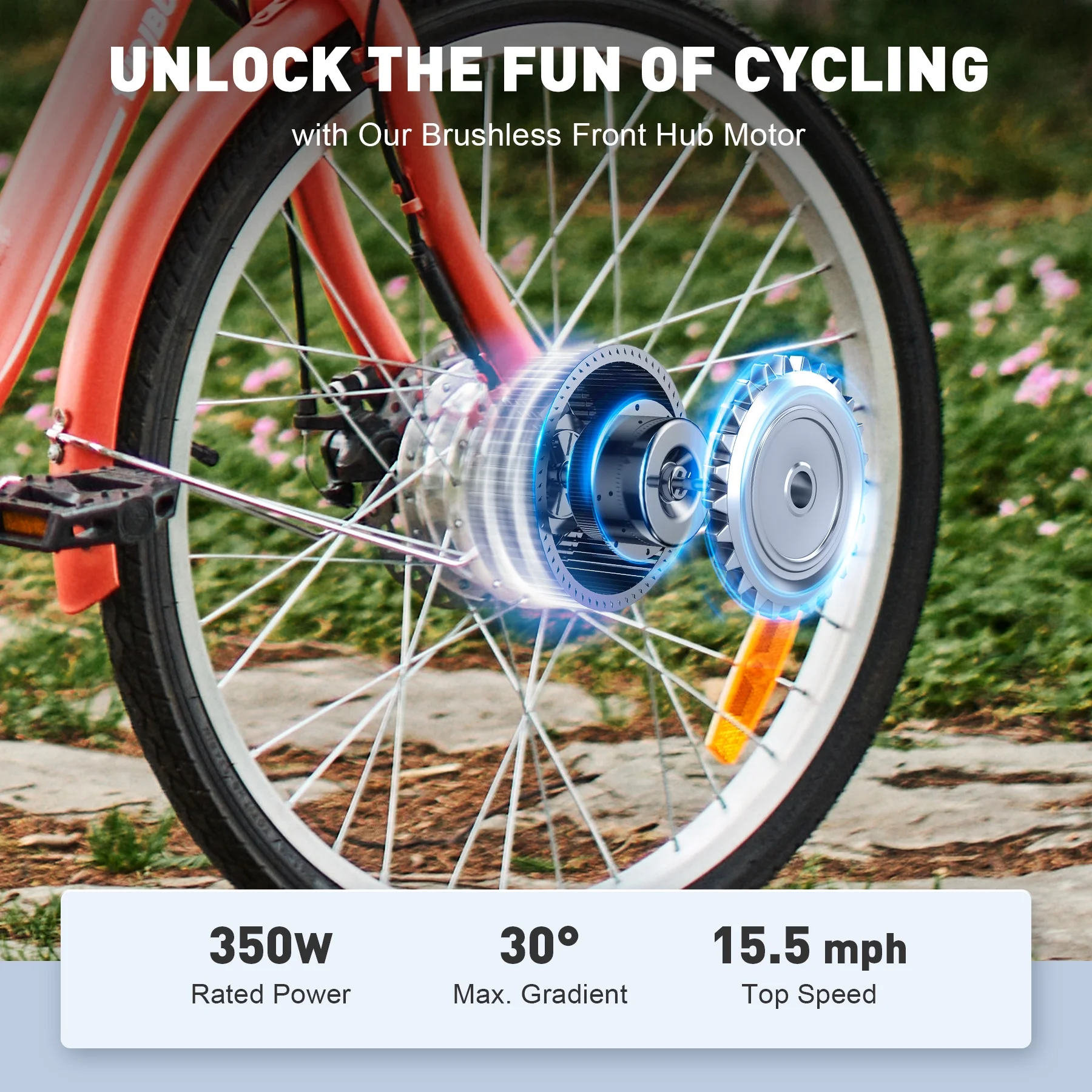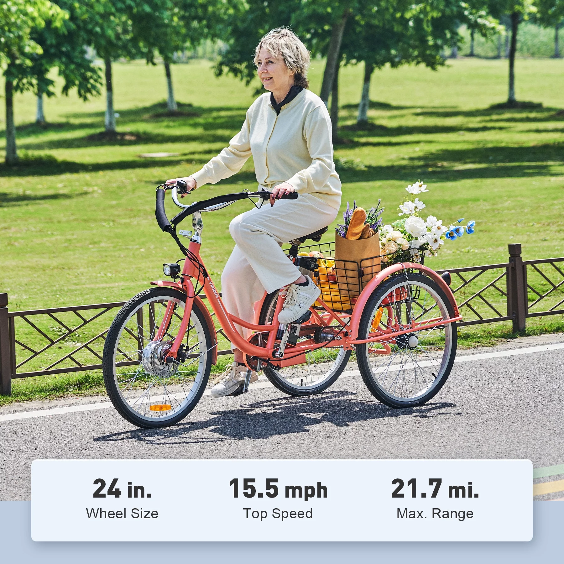 Viribus 26" Electric Tricycle 350W Cruiser Tricycle w Basket 36V 10Ah Coral for Adult Unisex