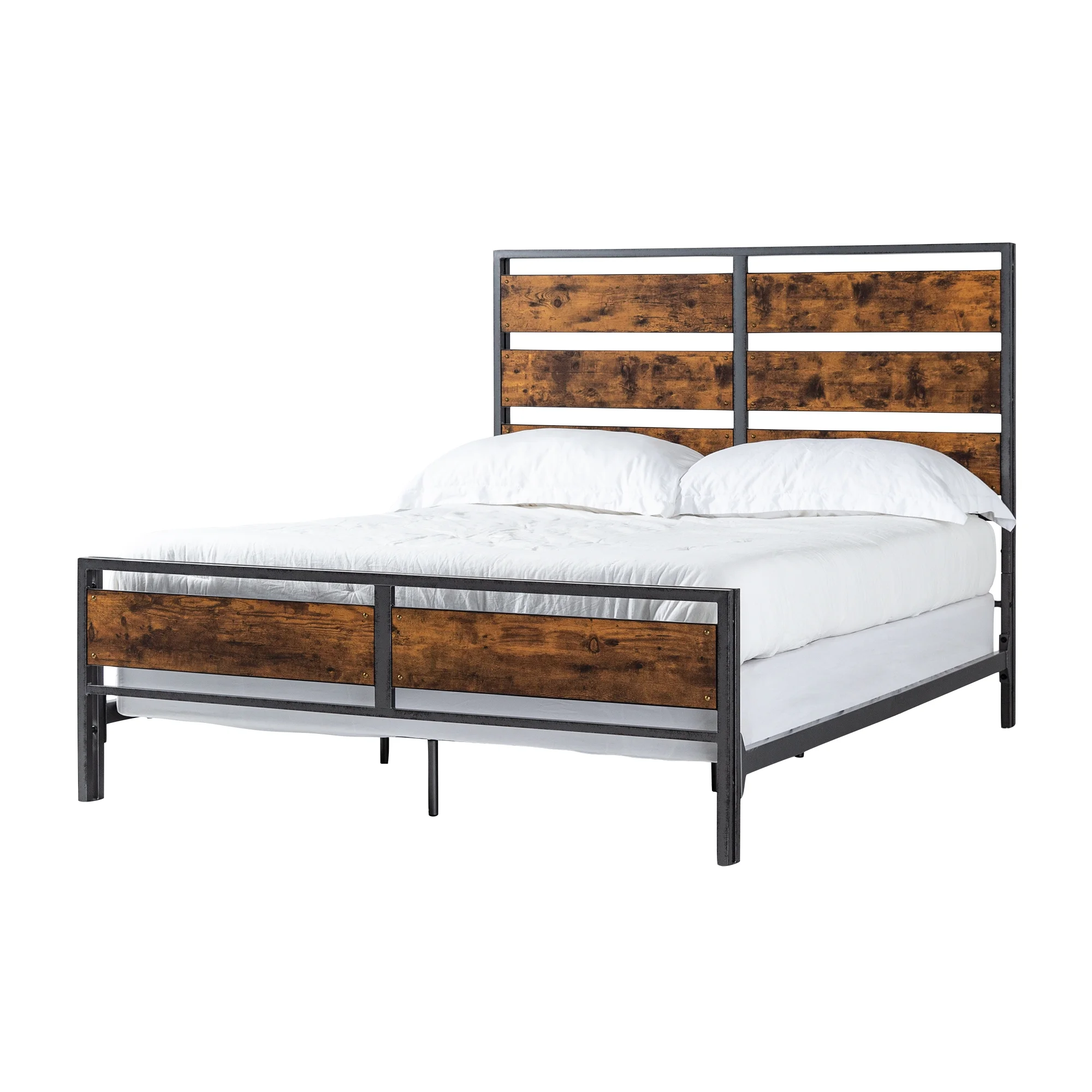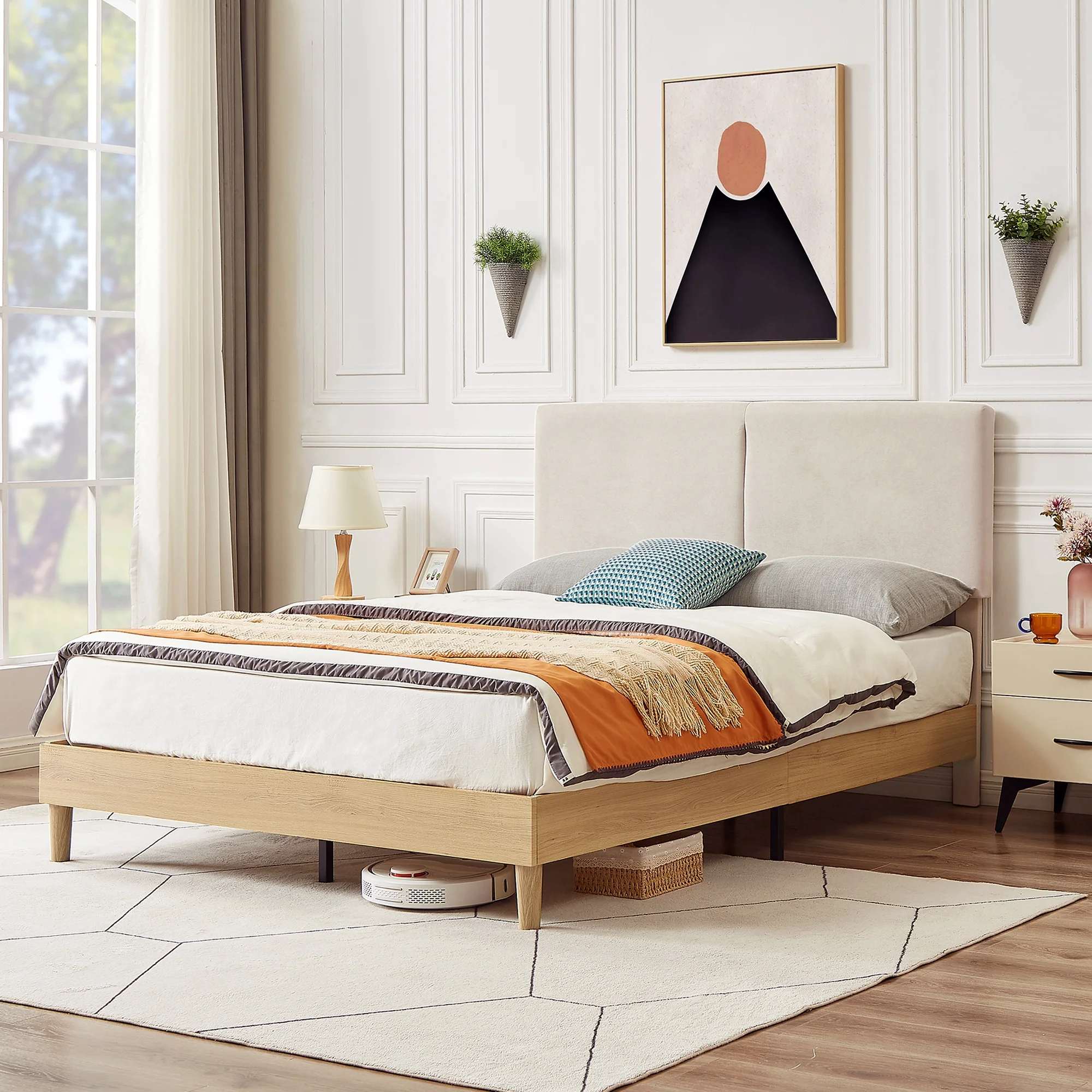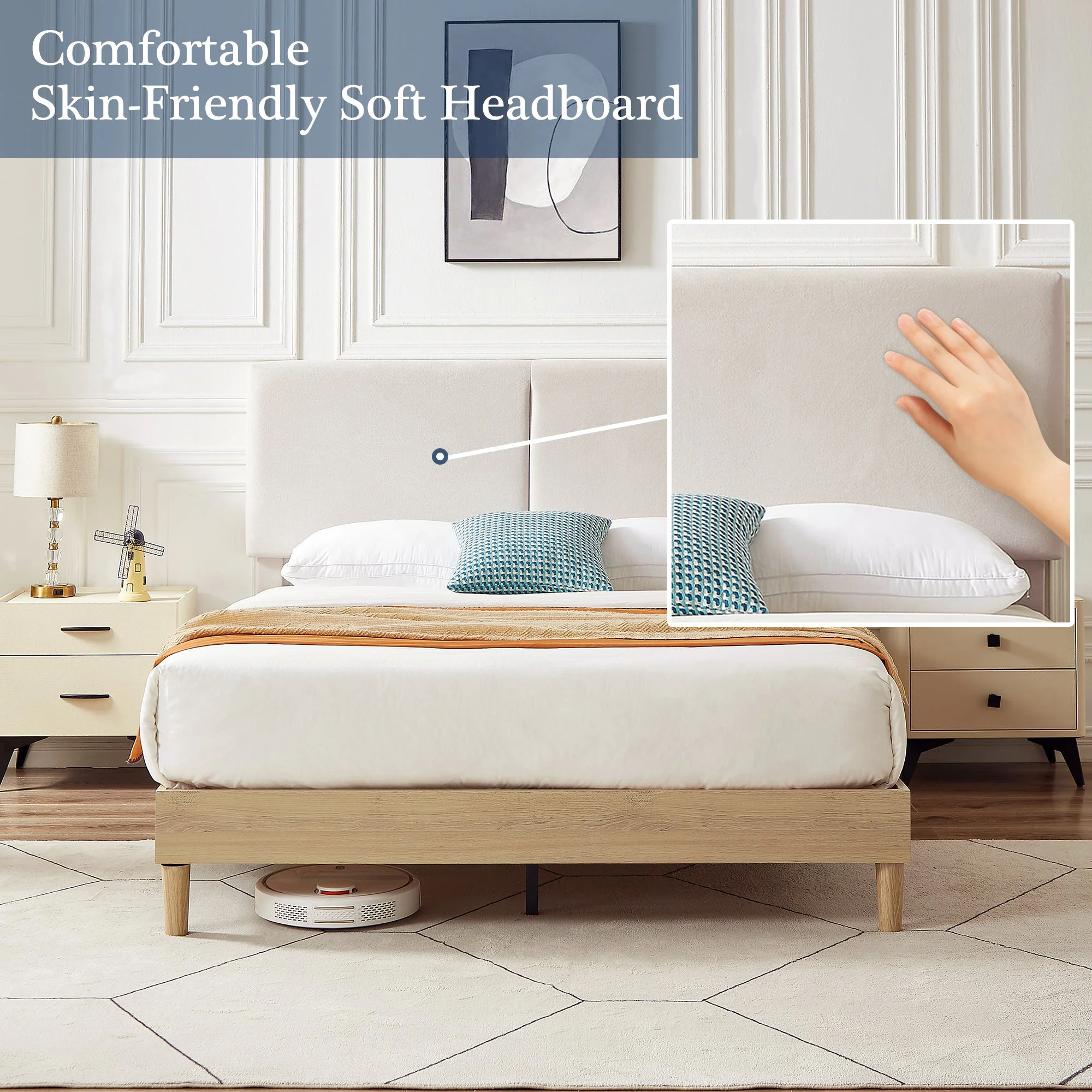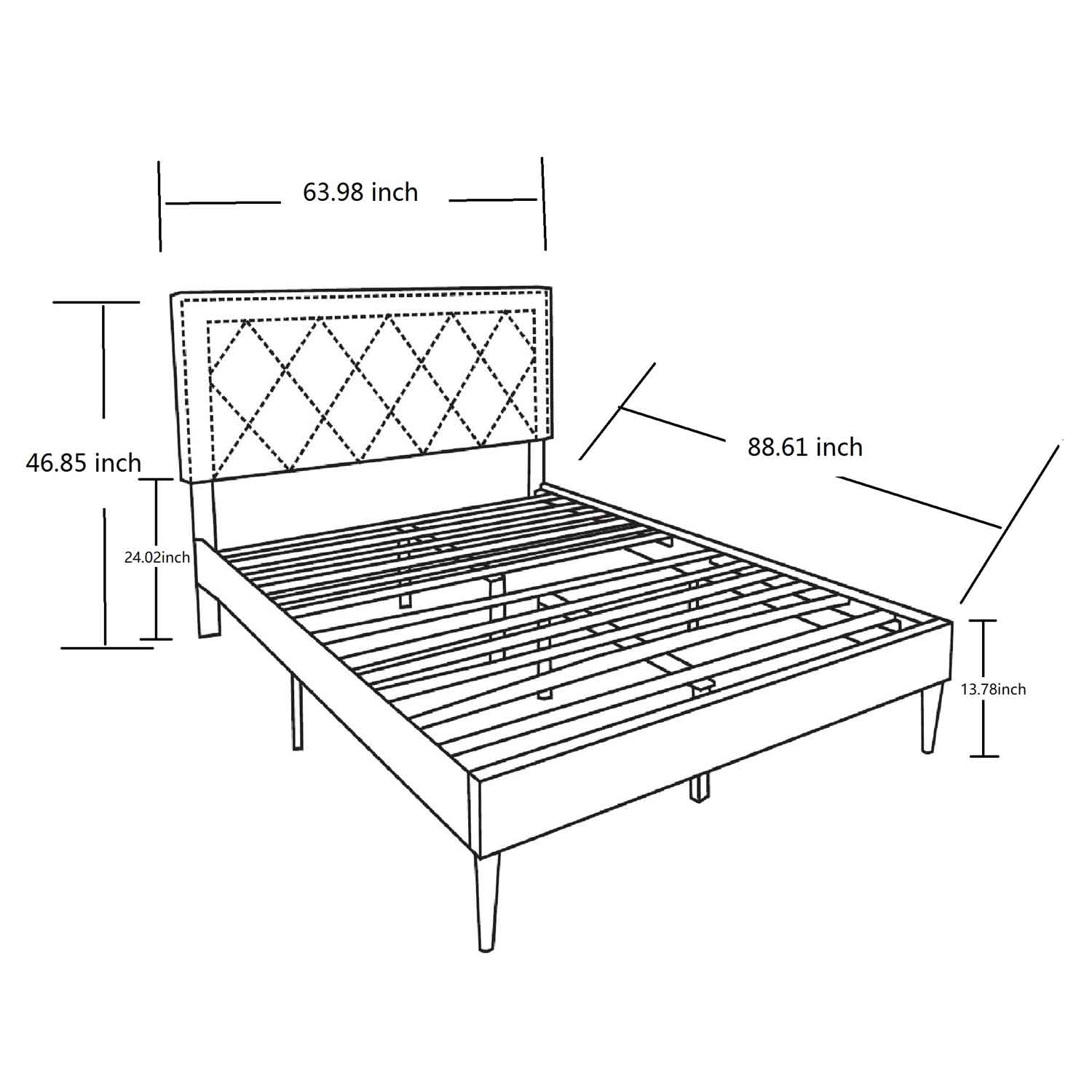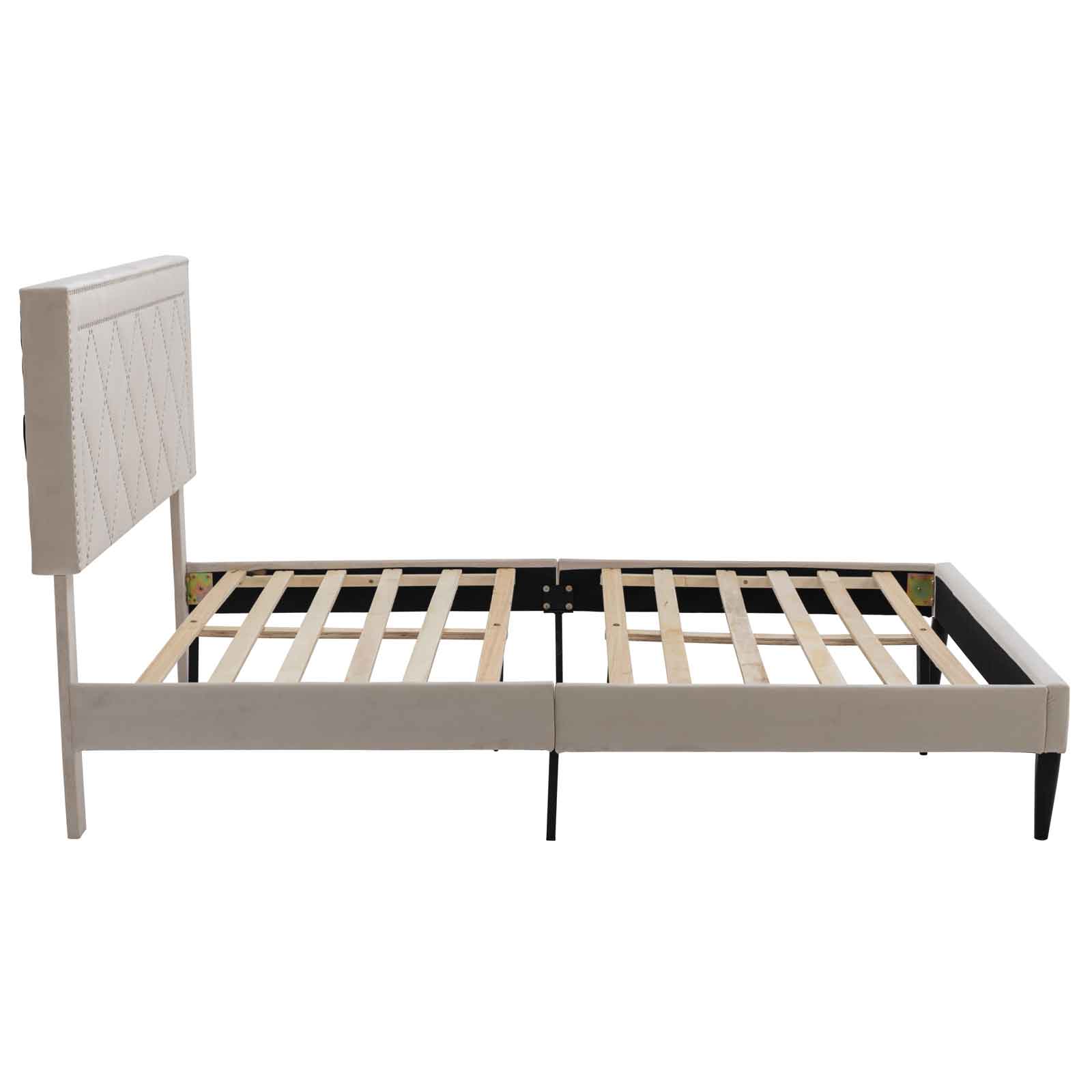 Fashion Style Queen Size Bed Platform Bed with Wooden Frame and Nailhead Trim