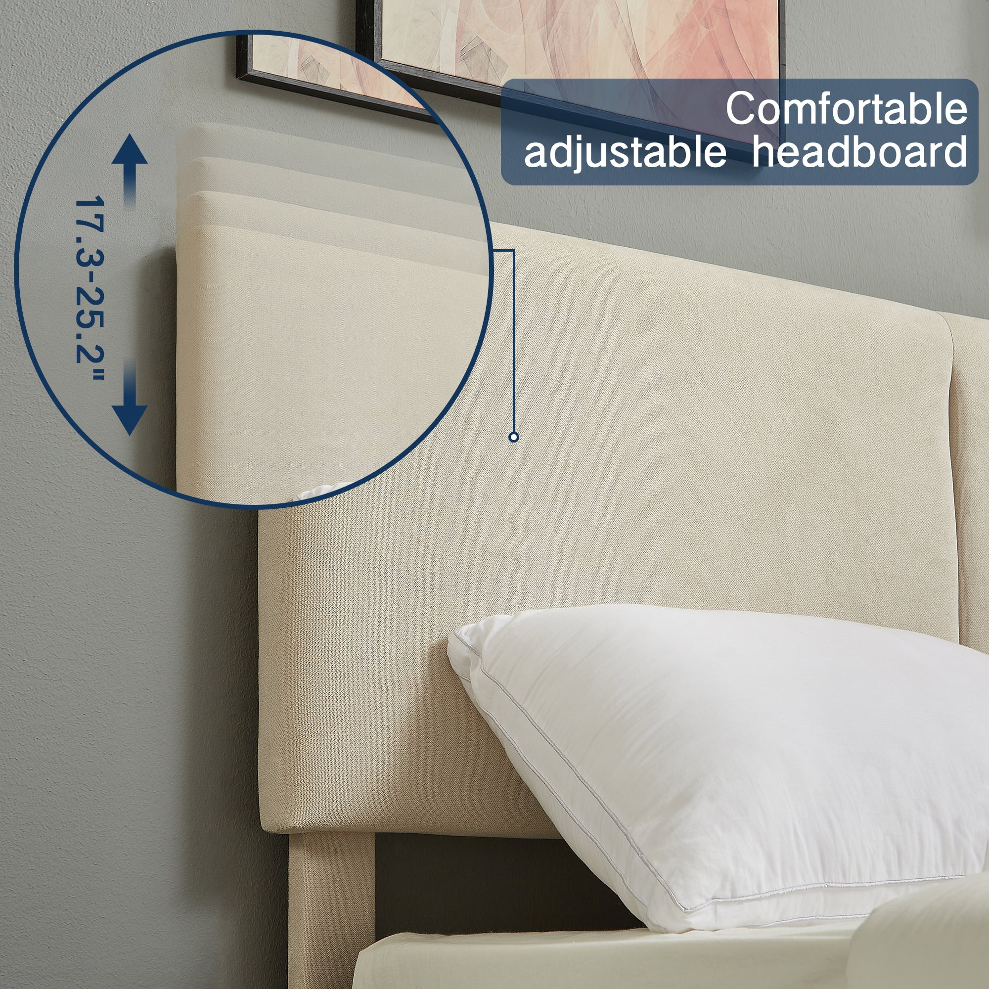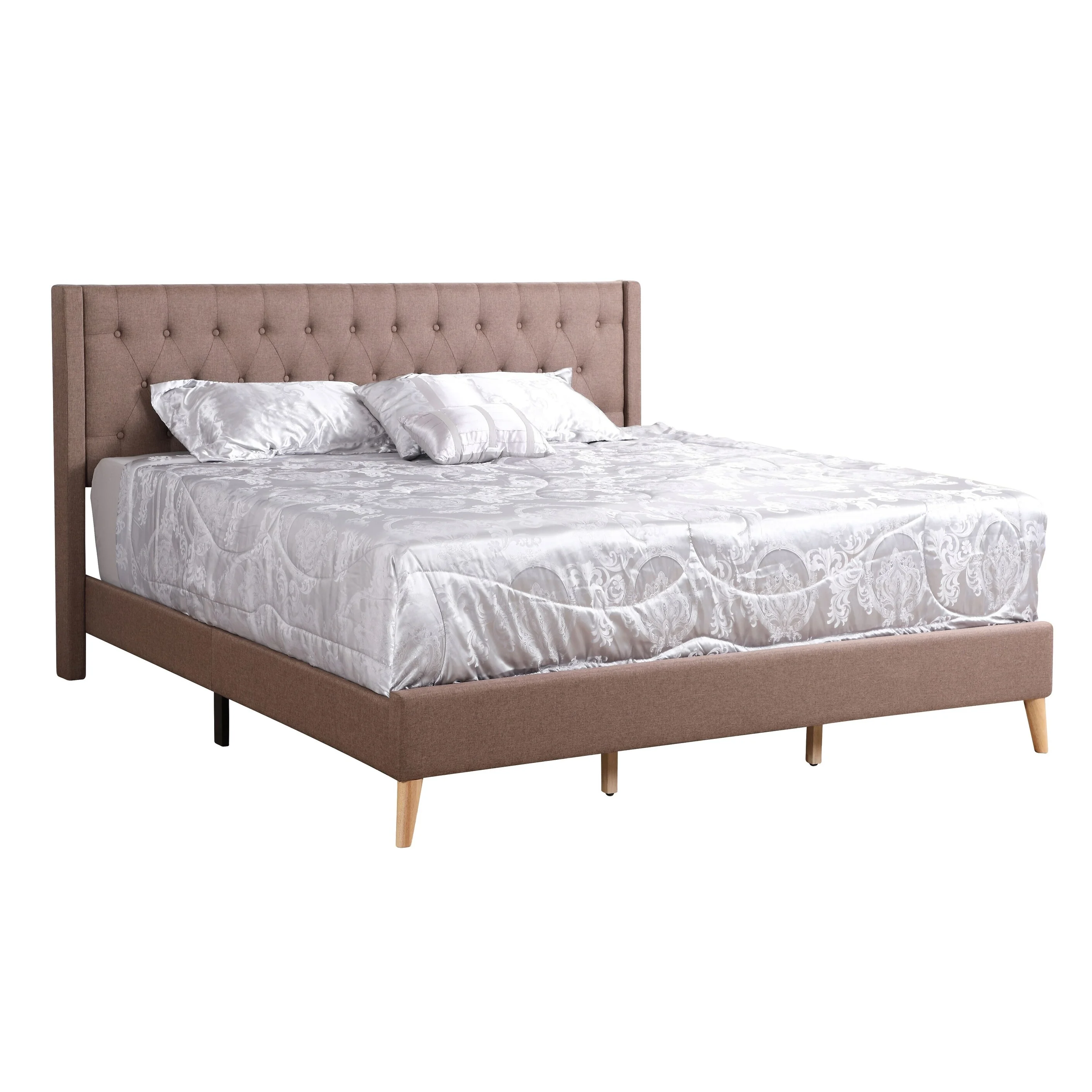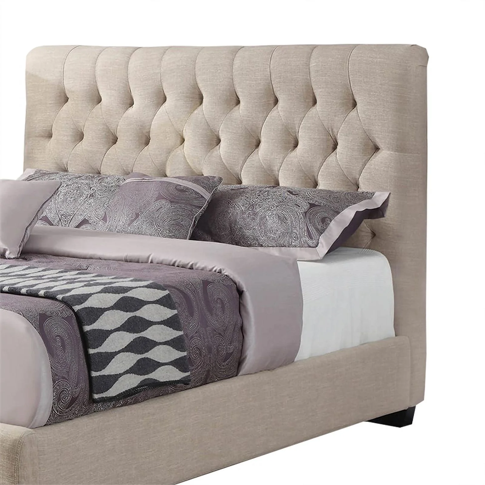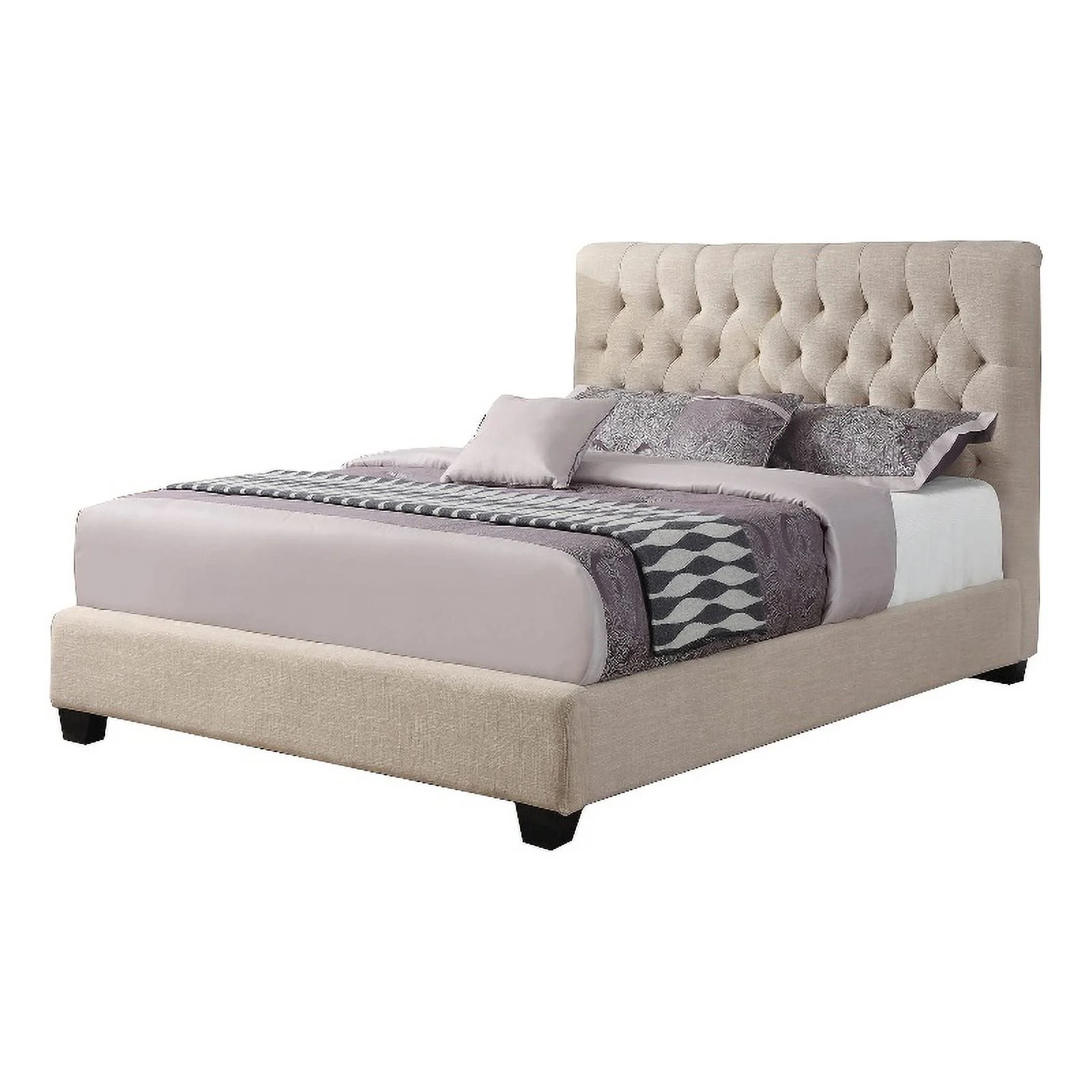 Wooden Queen Size Platform Bed with Deep Button Tufted Headboard Beige