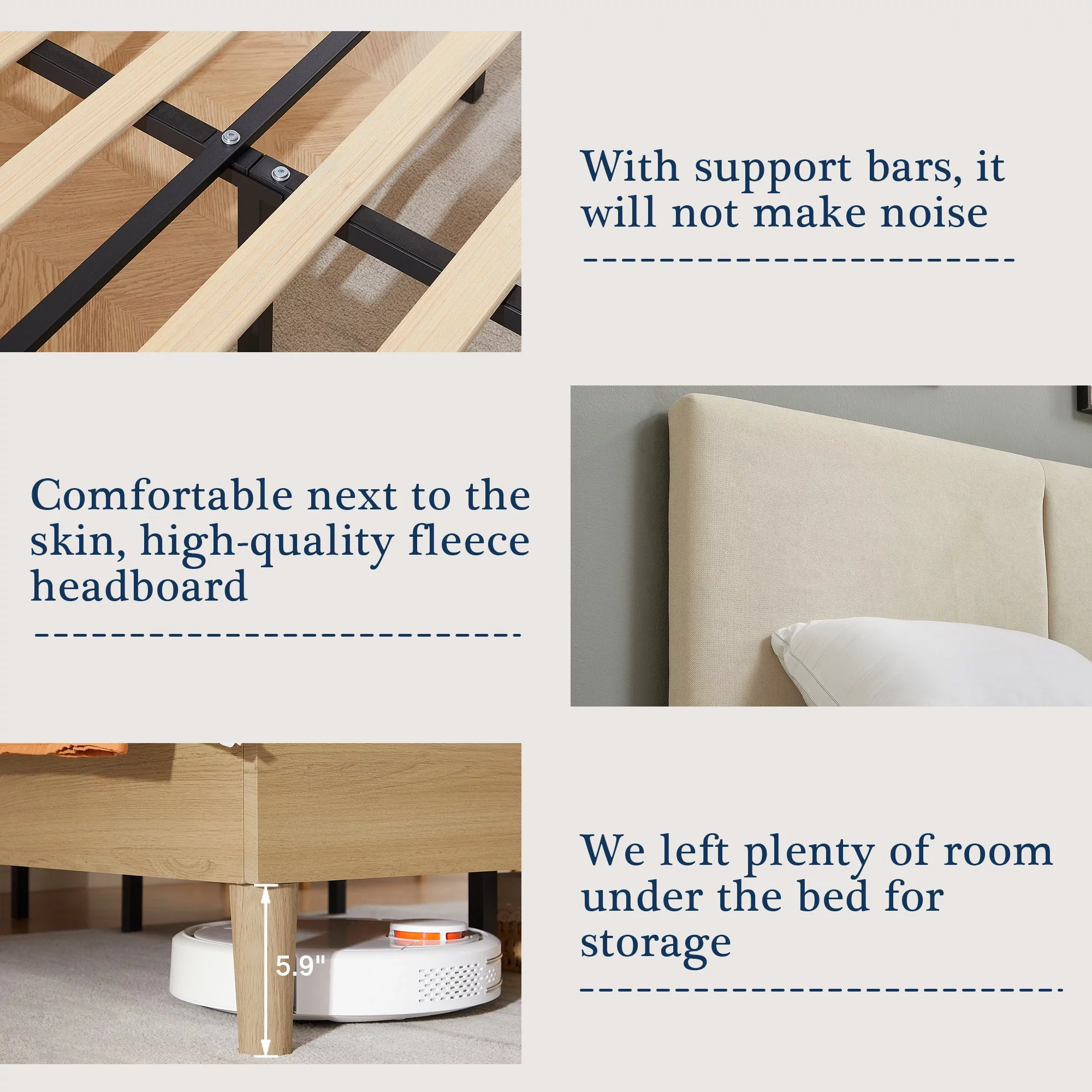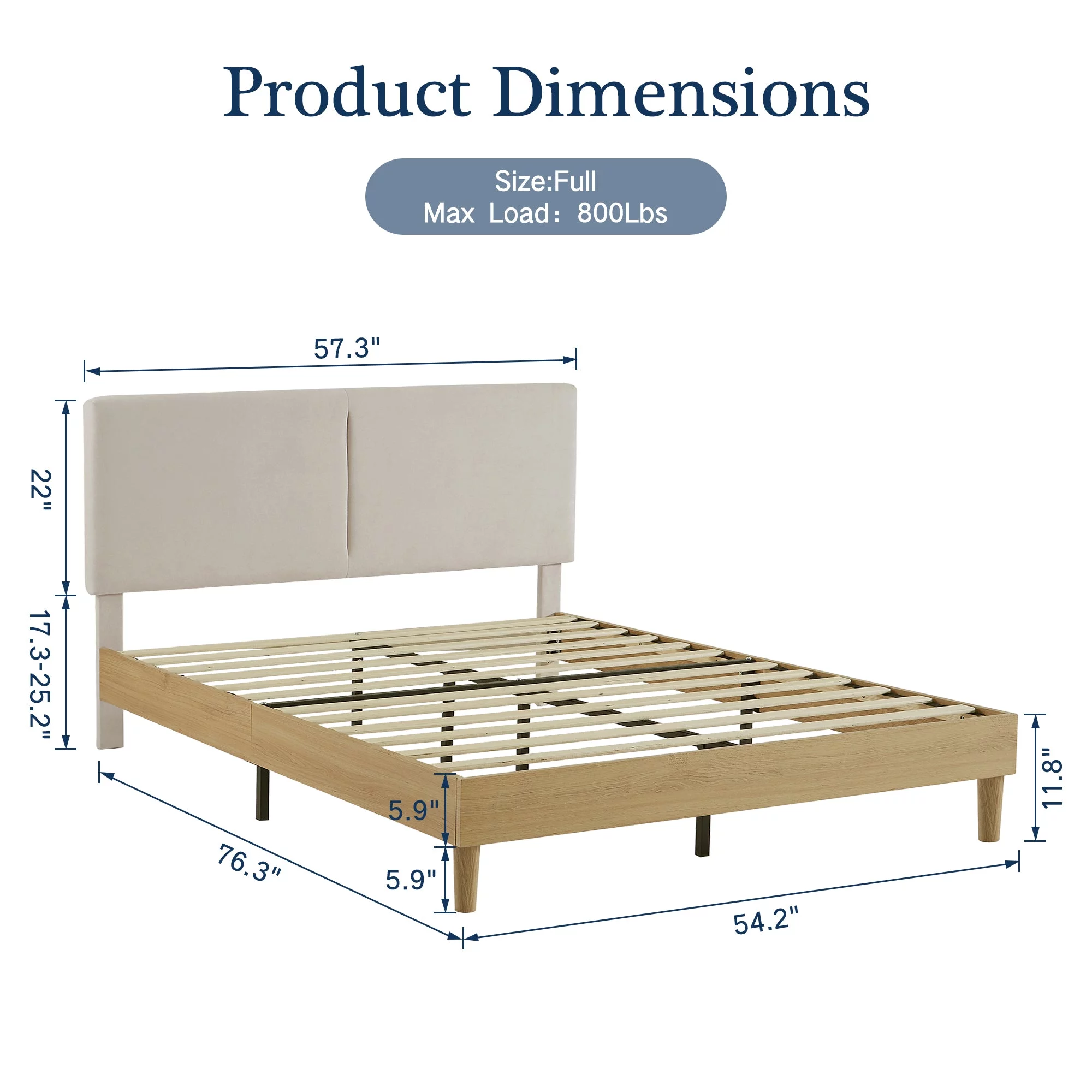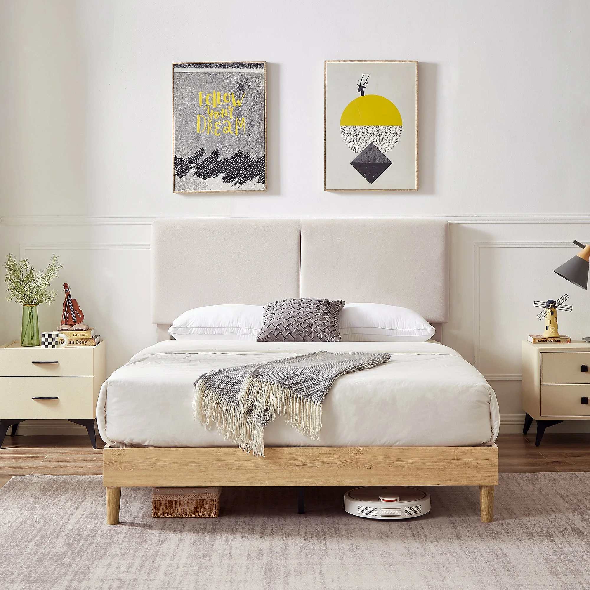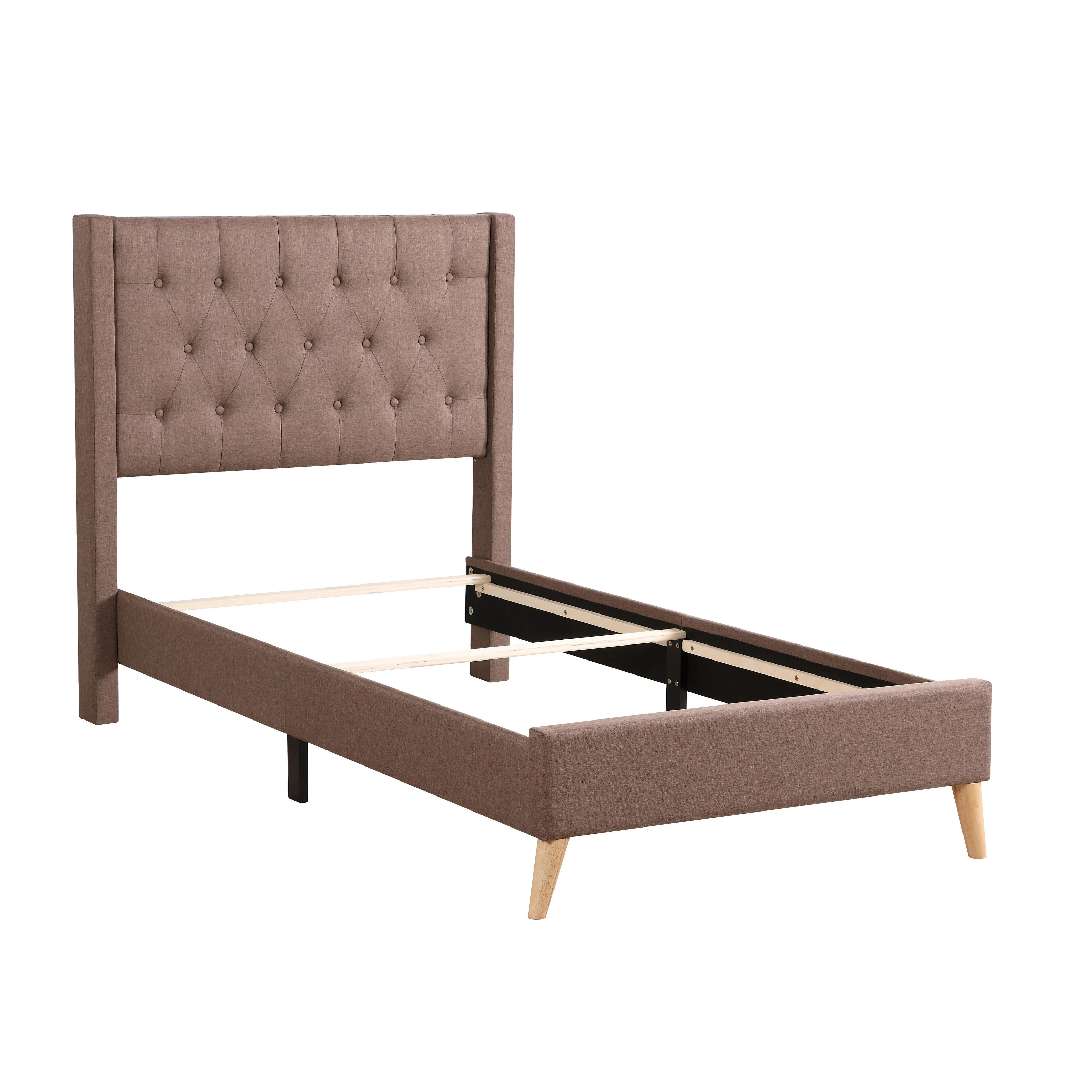 Wooden Queen Size Platform Bed with Deep Button Tufted Headboard Beige