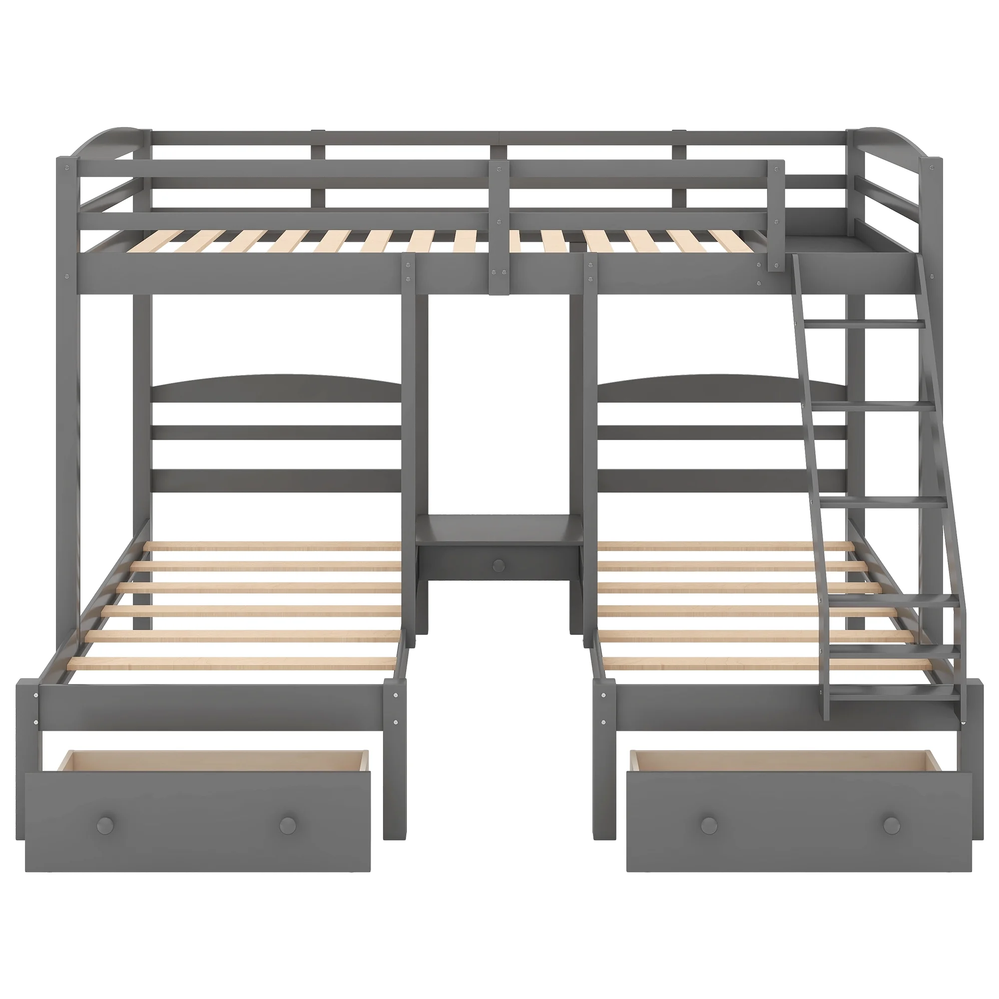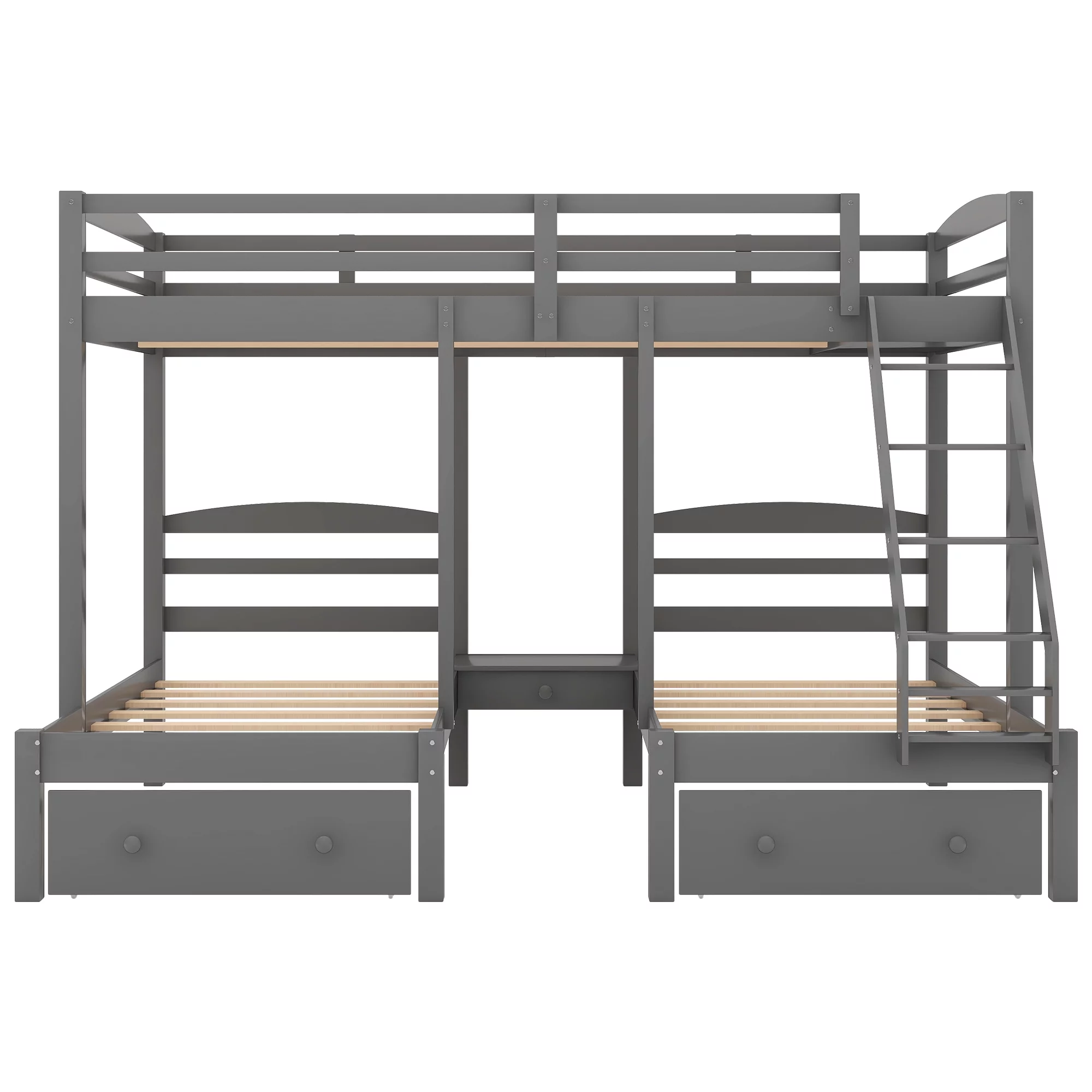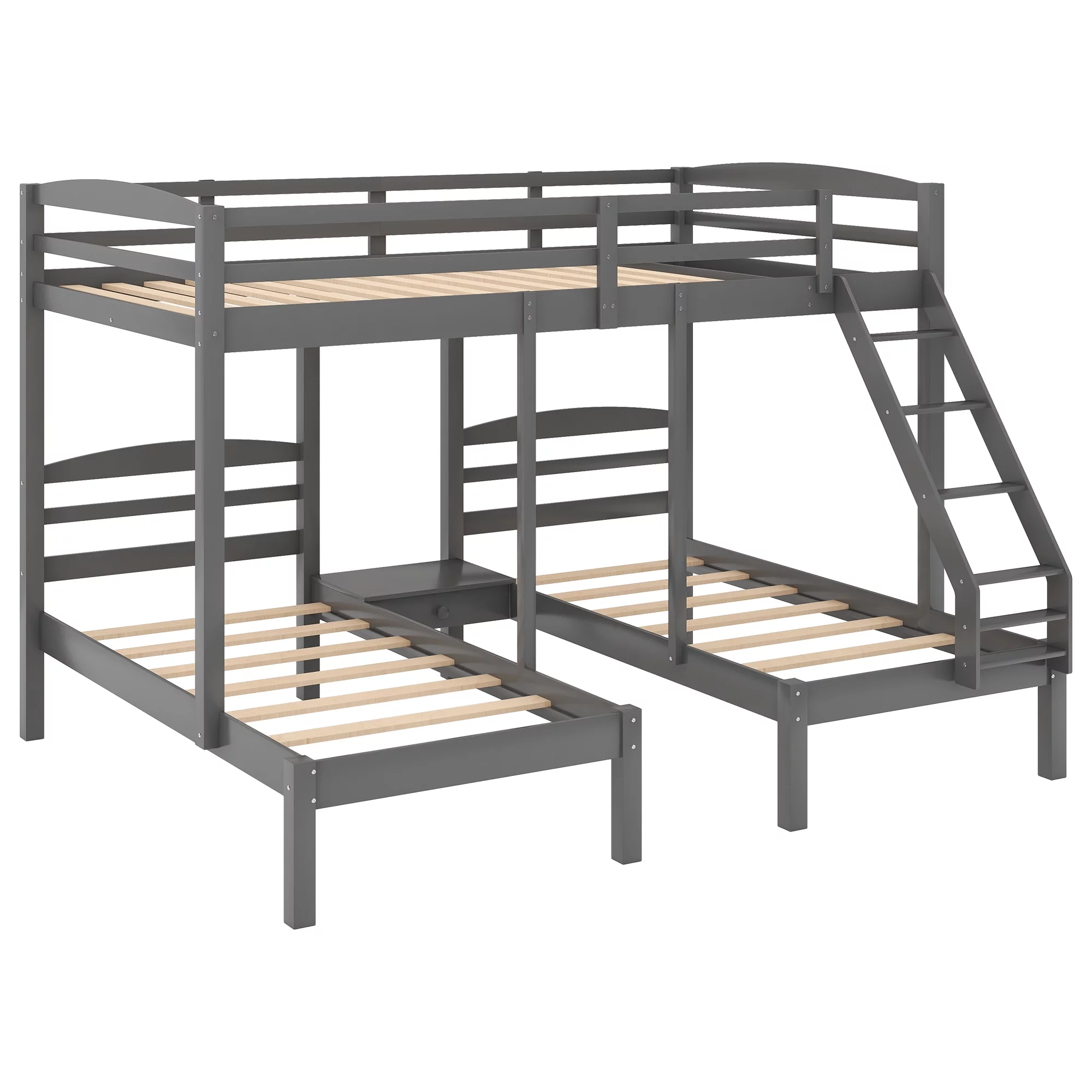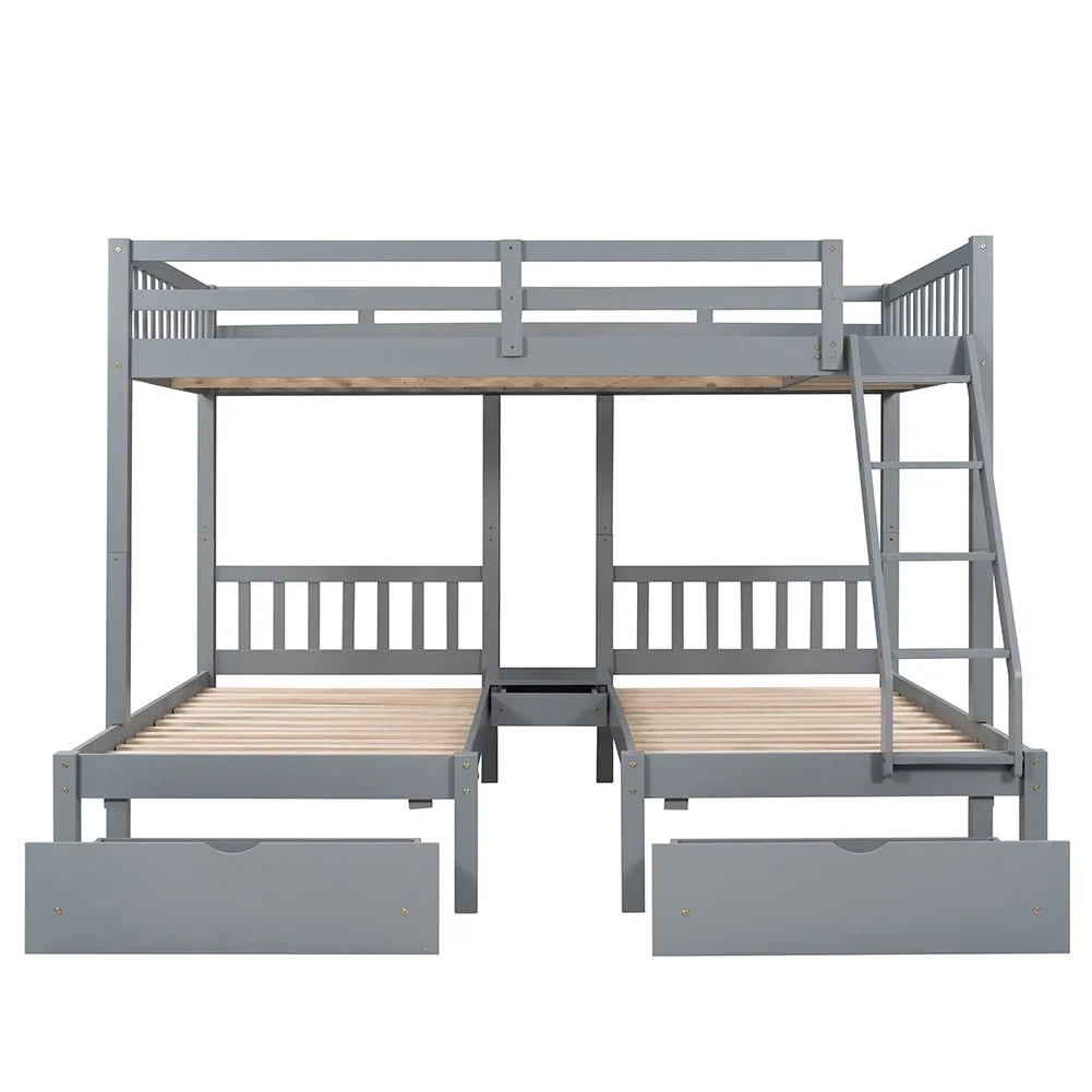 Full Over Twin & Twin Triple Bunk Bed with Drawers and Ladder Grey