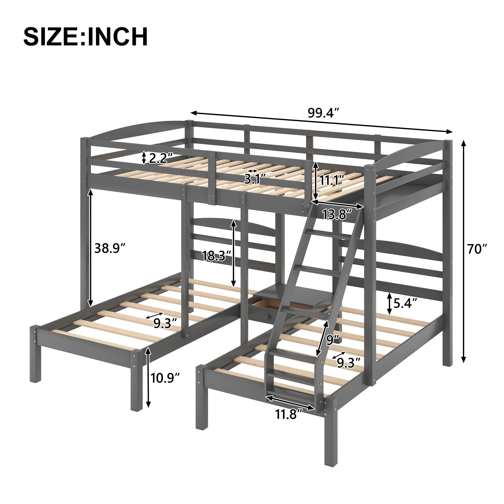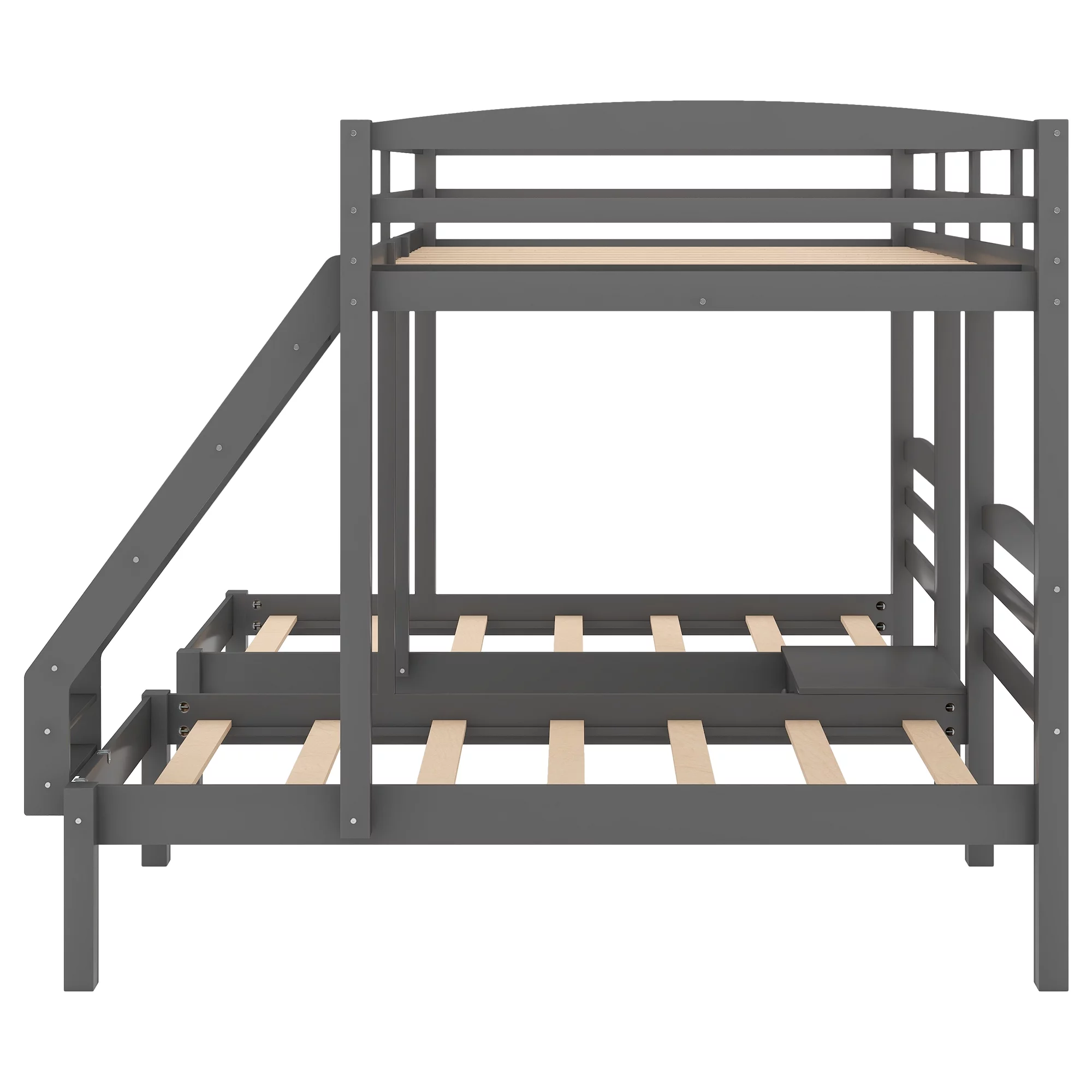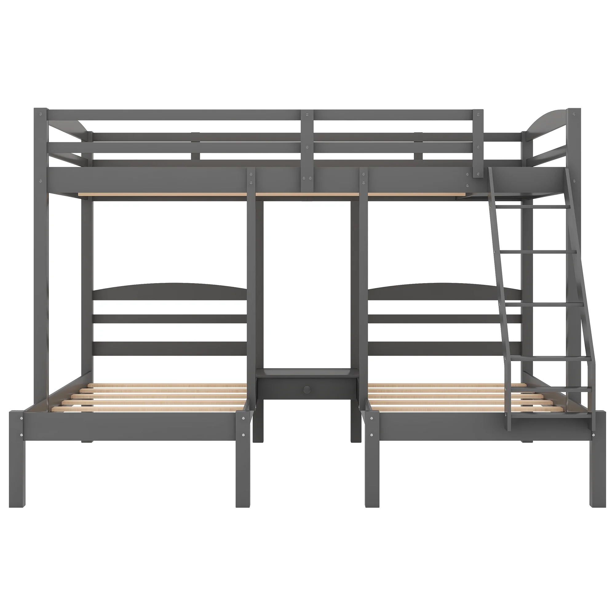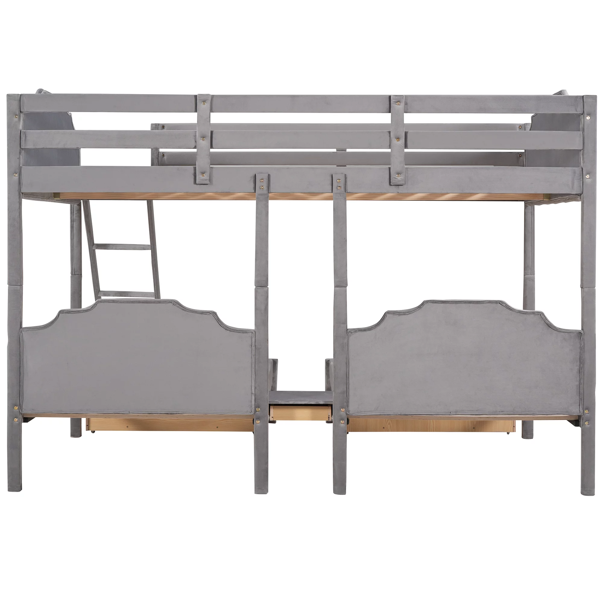 Full Over Twin & Twin Triple Bunk Bed with Drawers and Ladder Grey