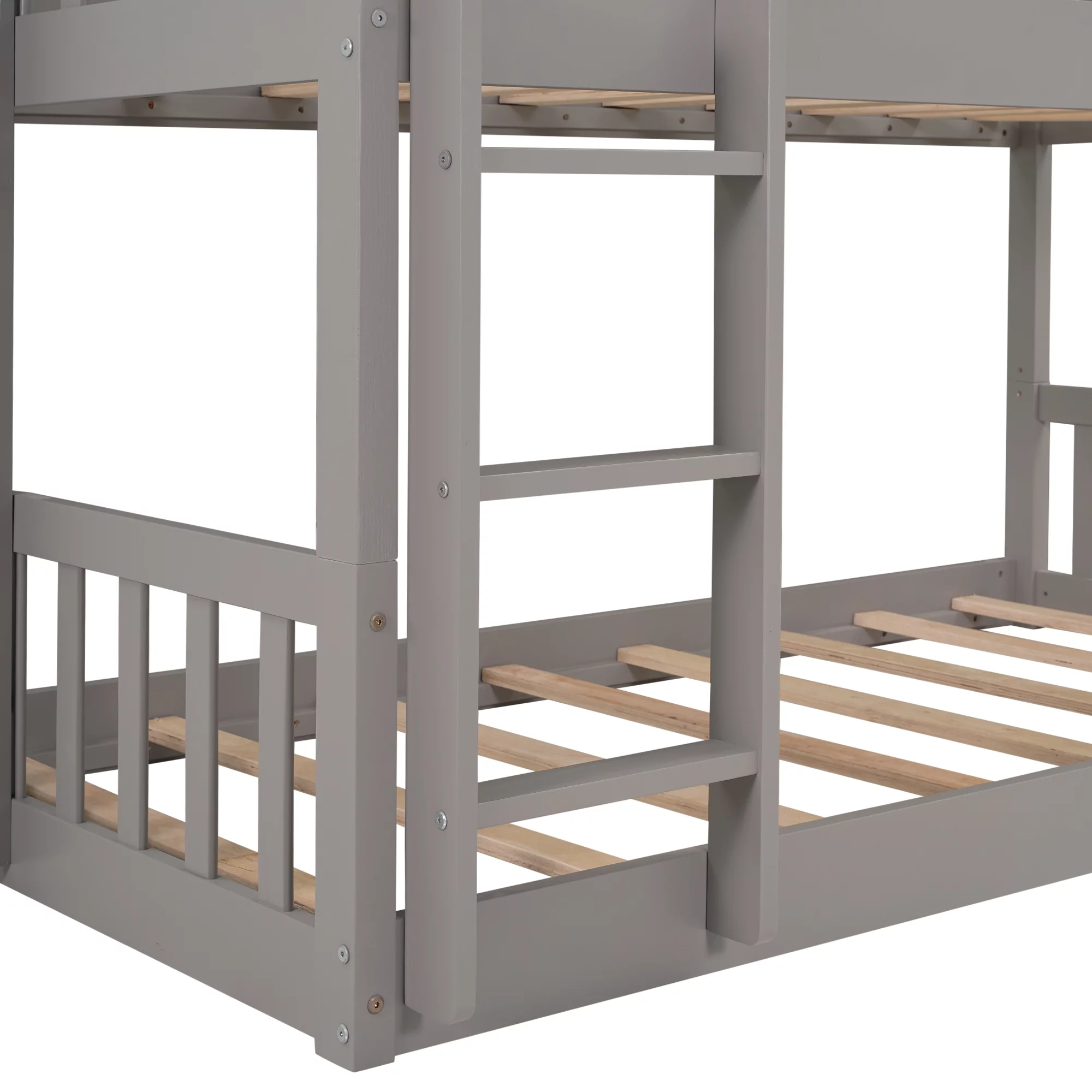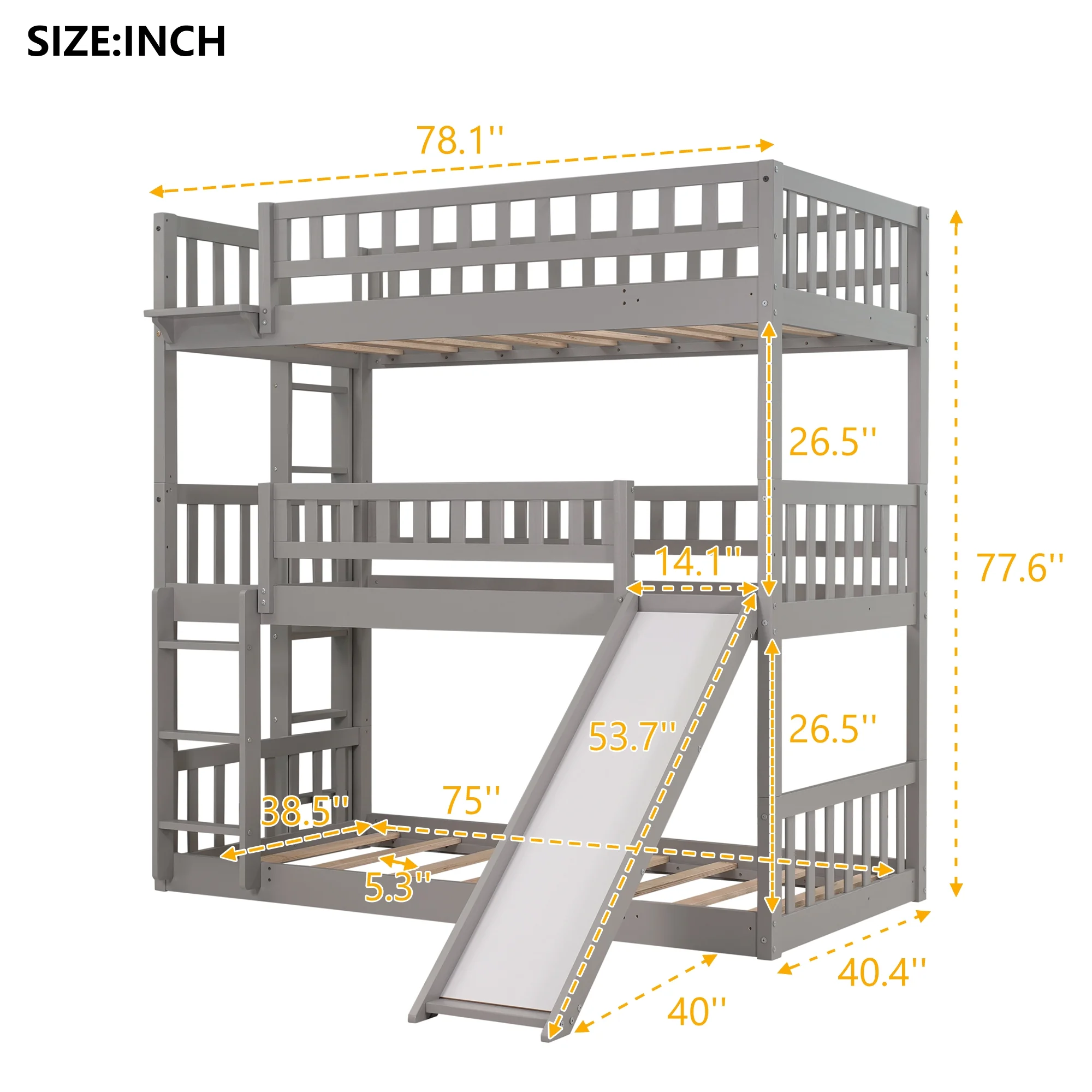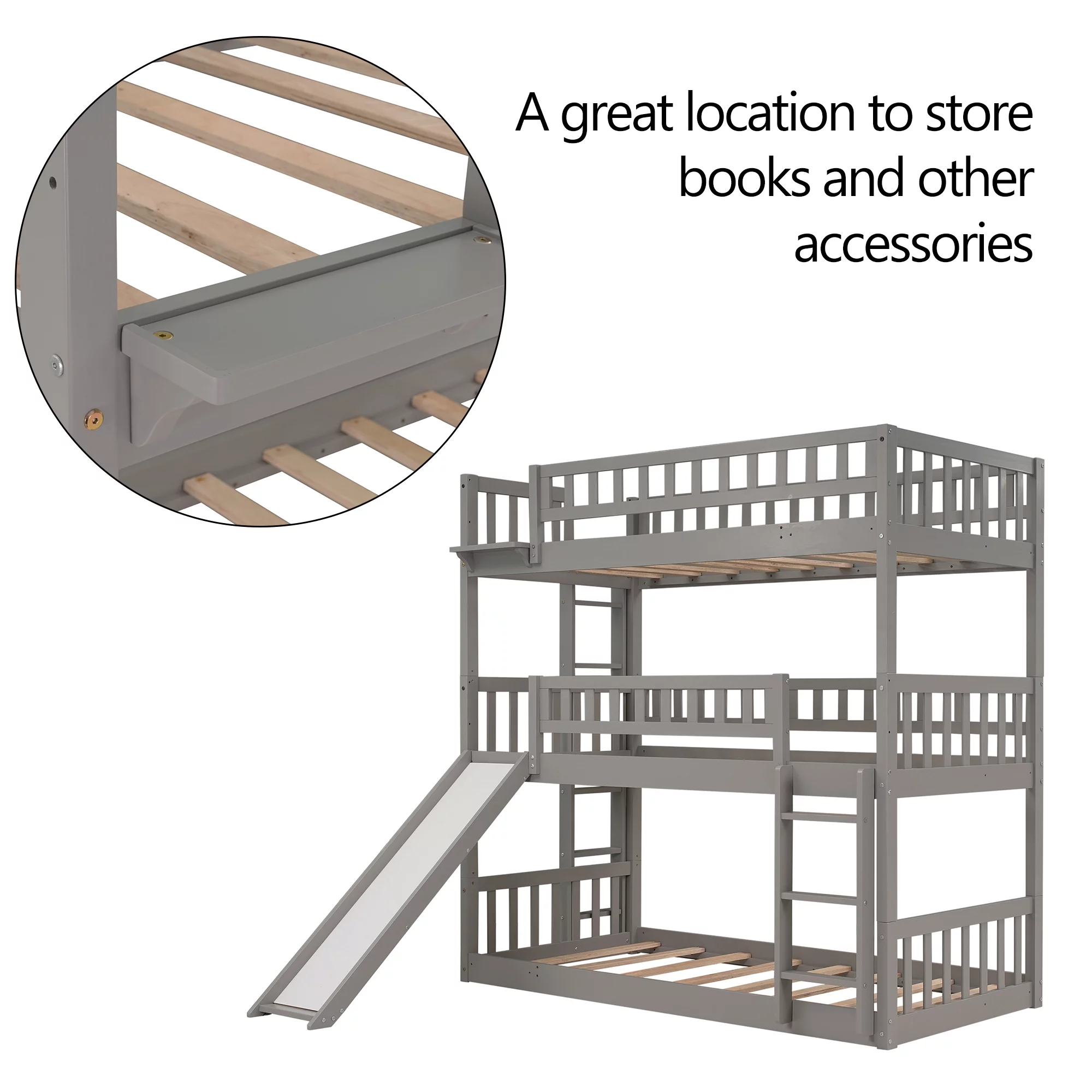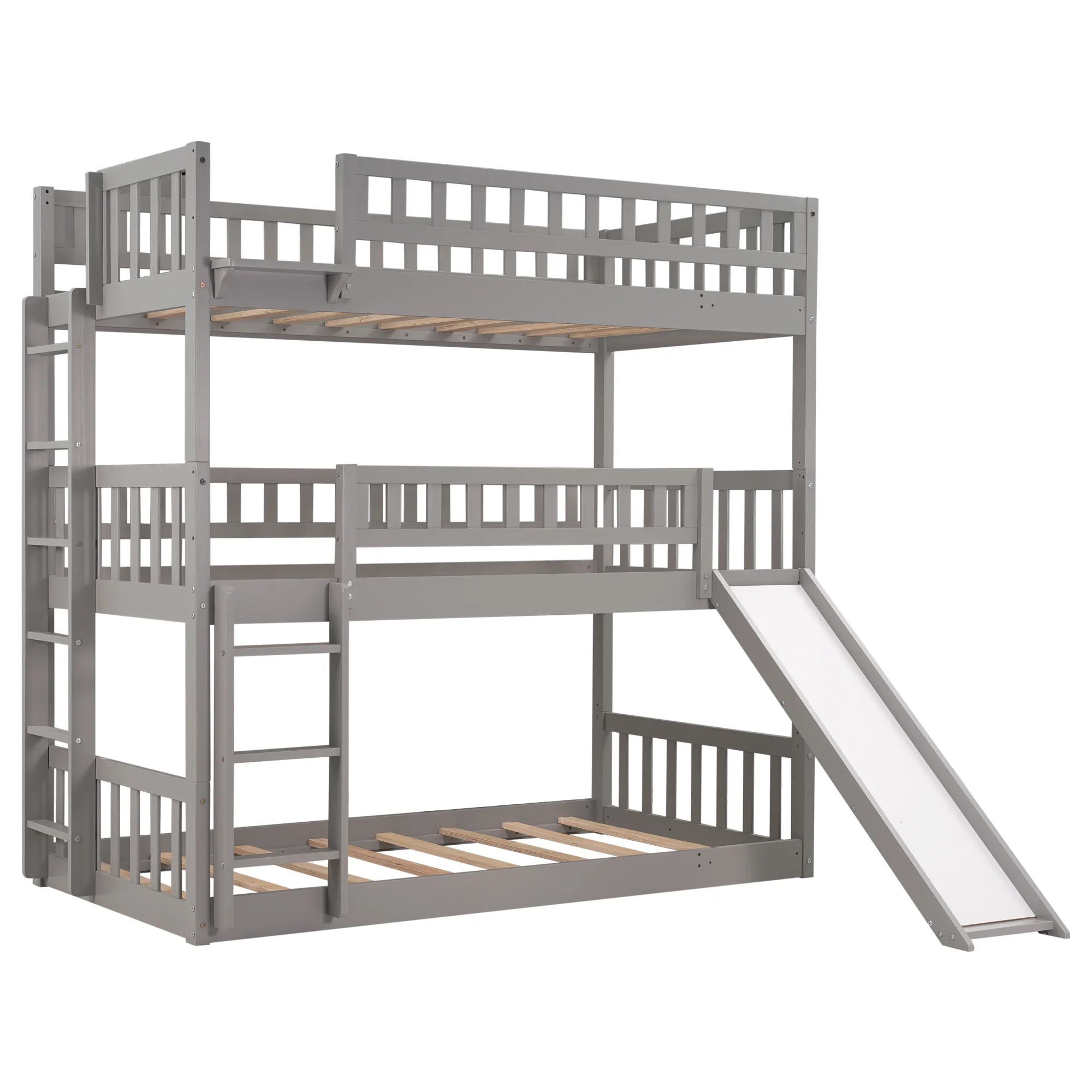 Full Over Twin & Twin Triple Bunk Bed with Drawers and Ladder Grey