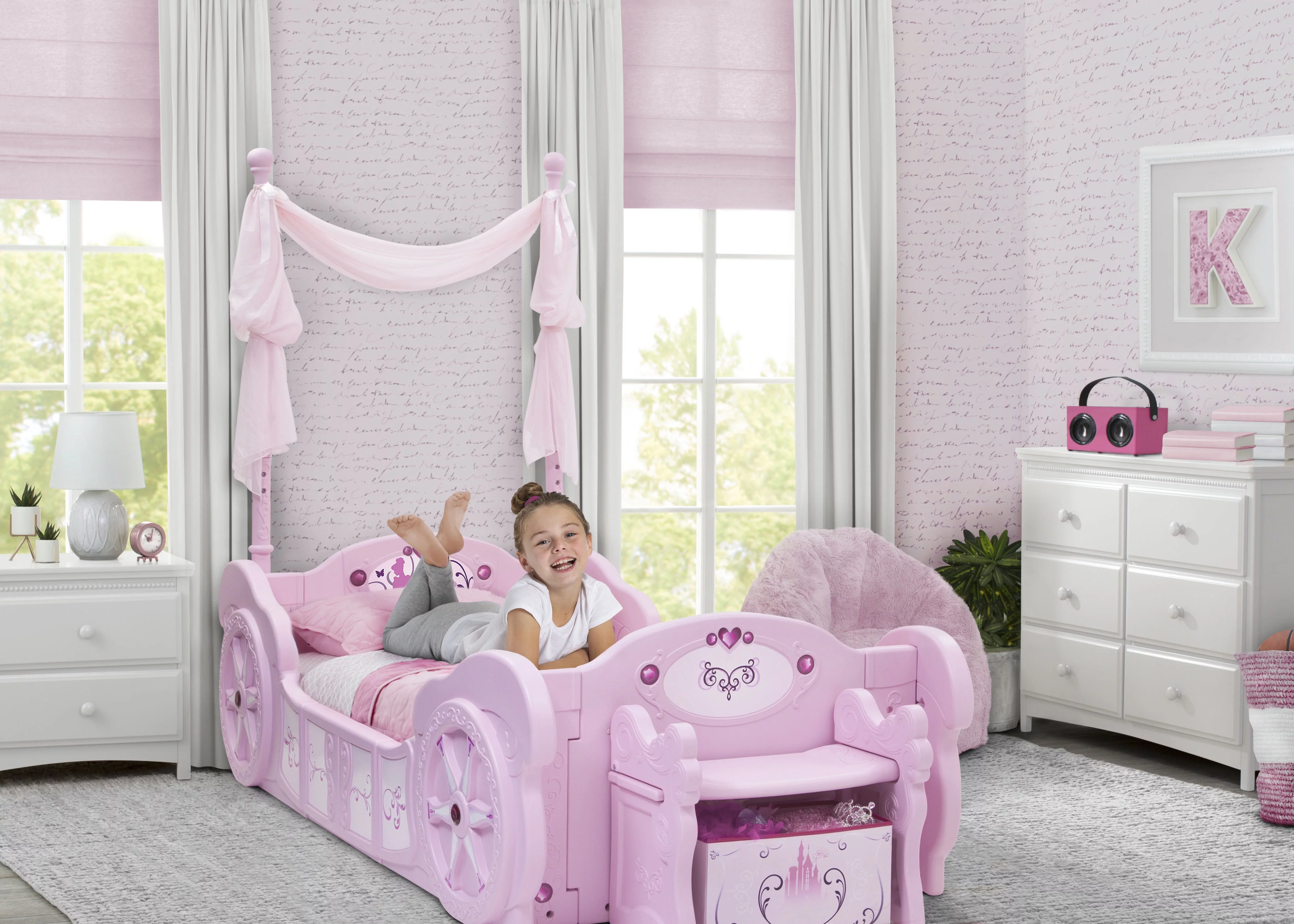 3-Pieces Bedroom Sets Full Size Platform Bed with Nightstand and Storage dresser,White+Pink